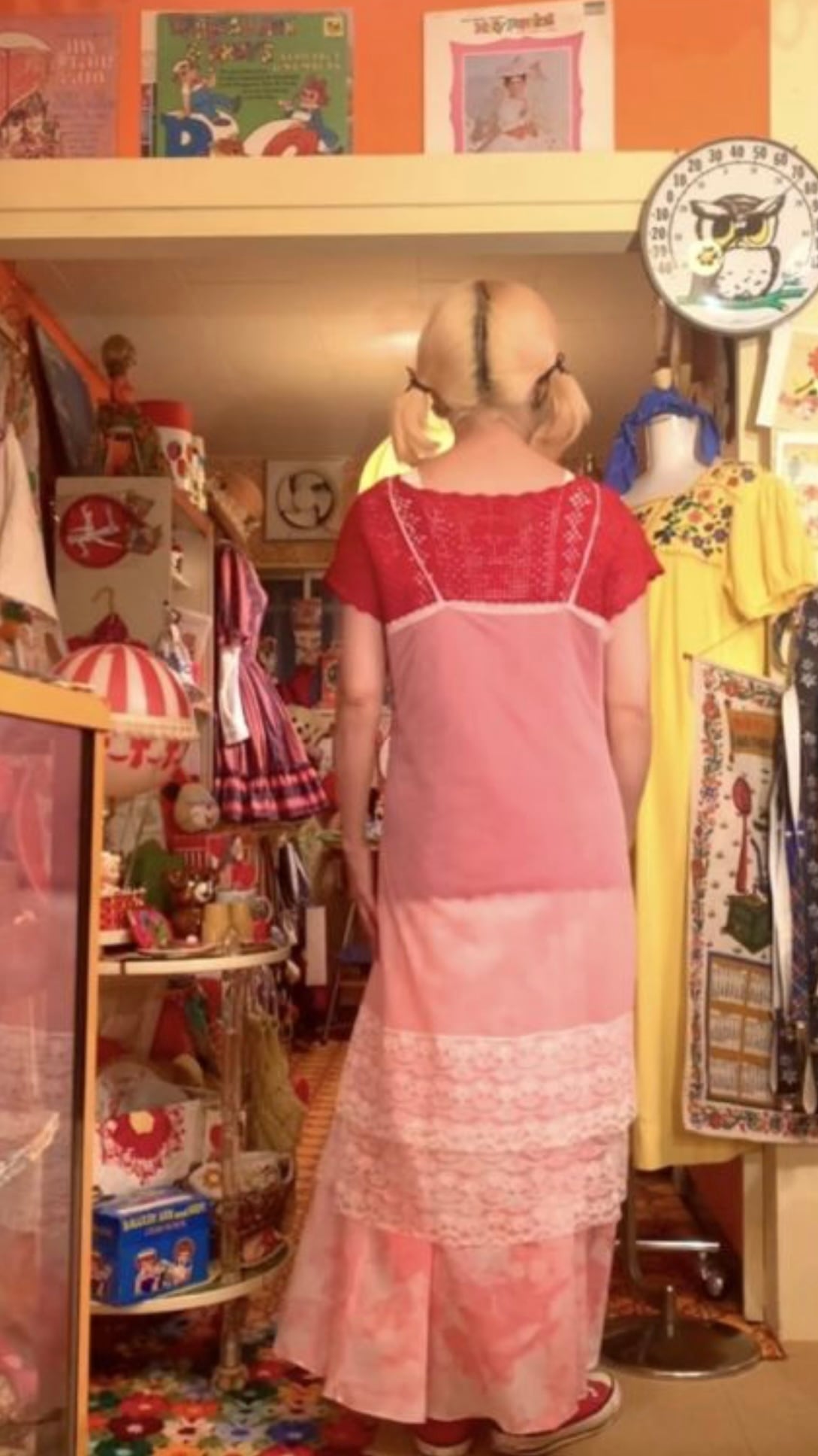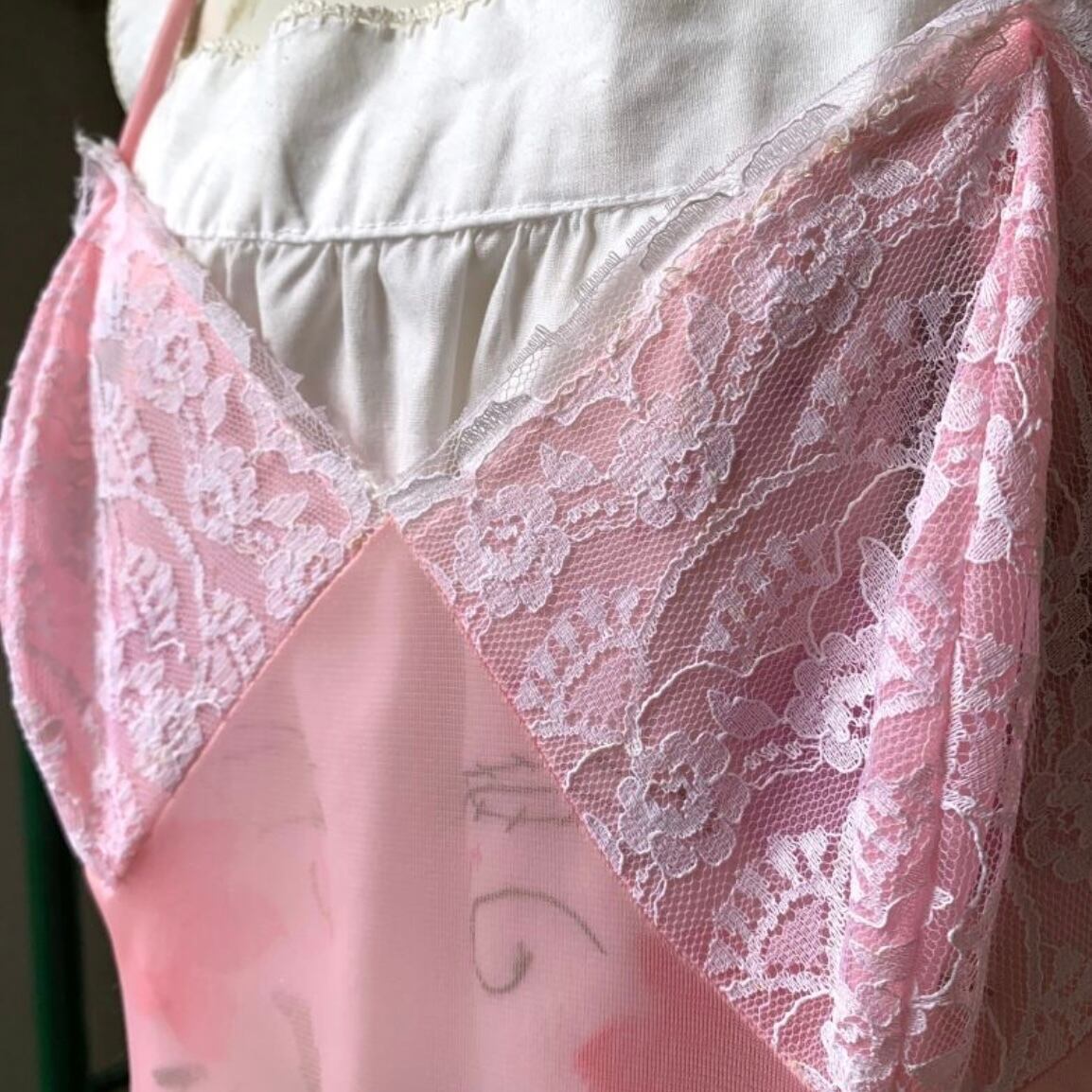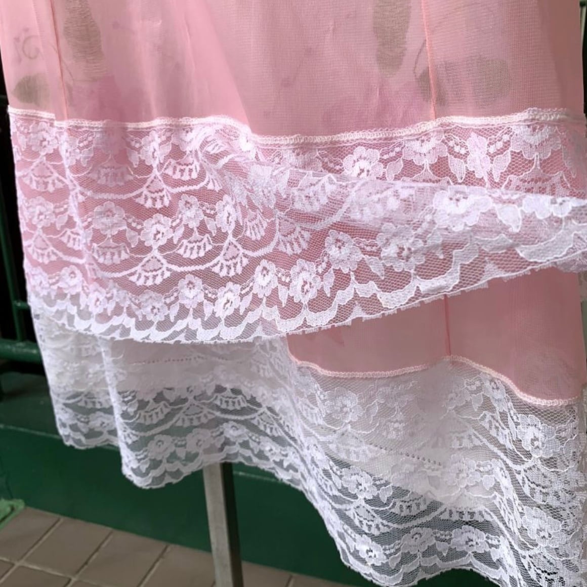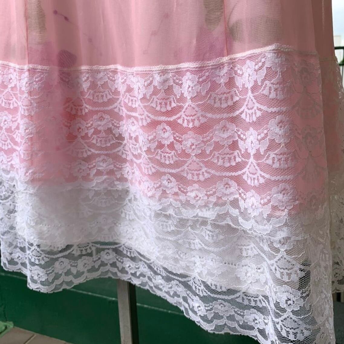 ヴィンテージならではなキュートなピンクカラーにホワイトのフラワーレースがとっても可愛い1着です。