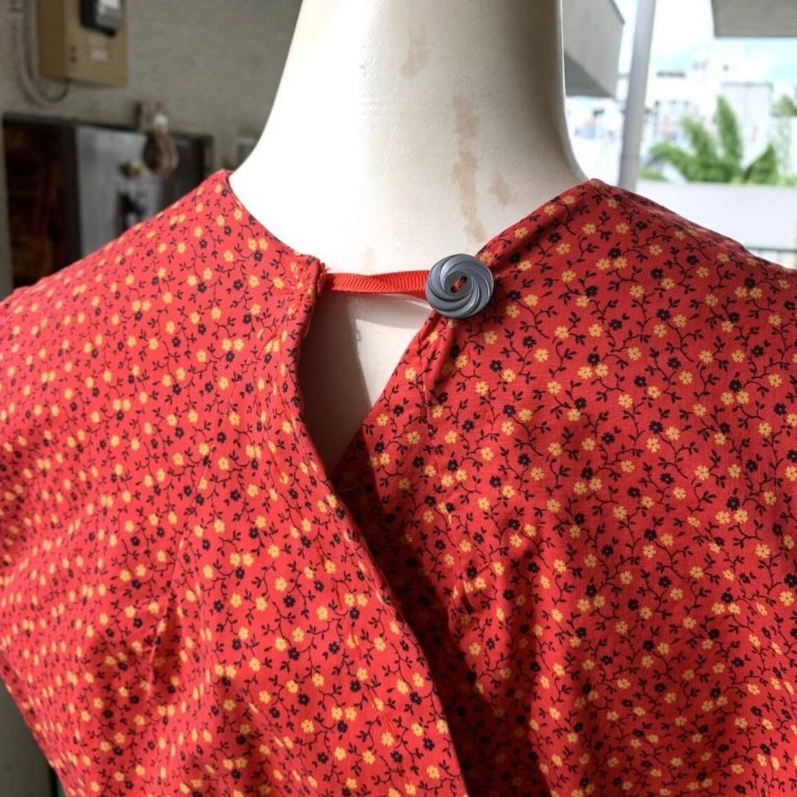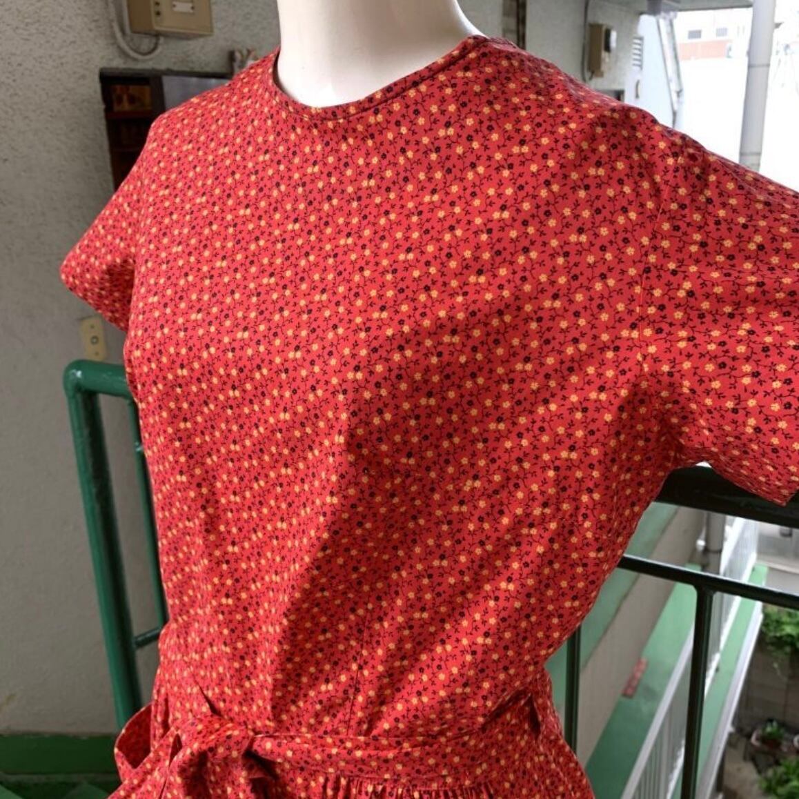70年代 当時のハンドメイド1点もの ヴィンテージ フラワー柄ラップドレスです。