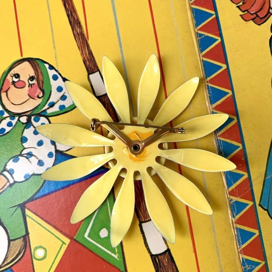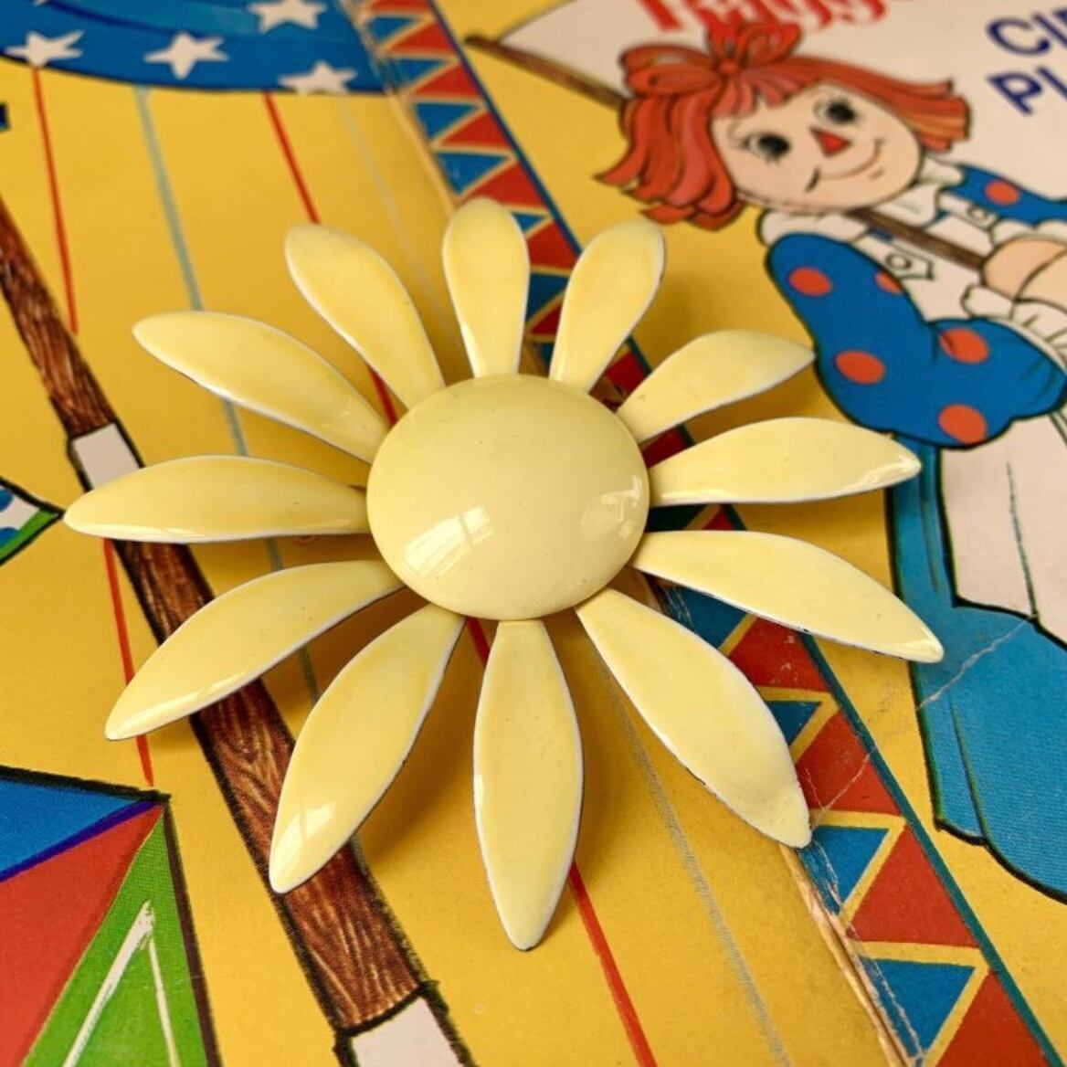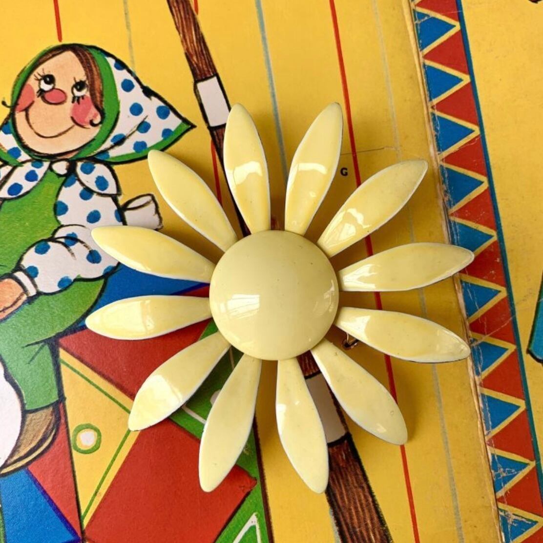 70年代 ヴィンテージ ライトイエロー フラワーブローチです。