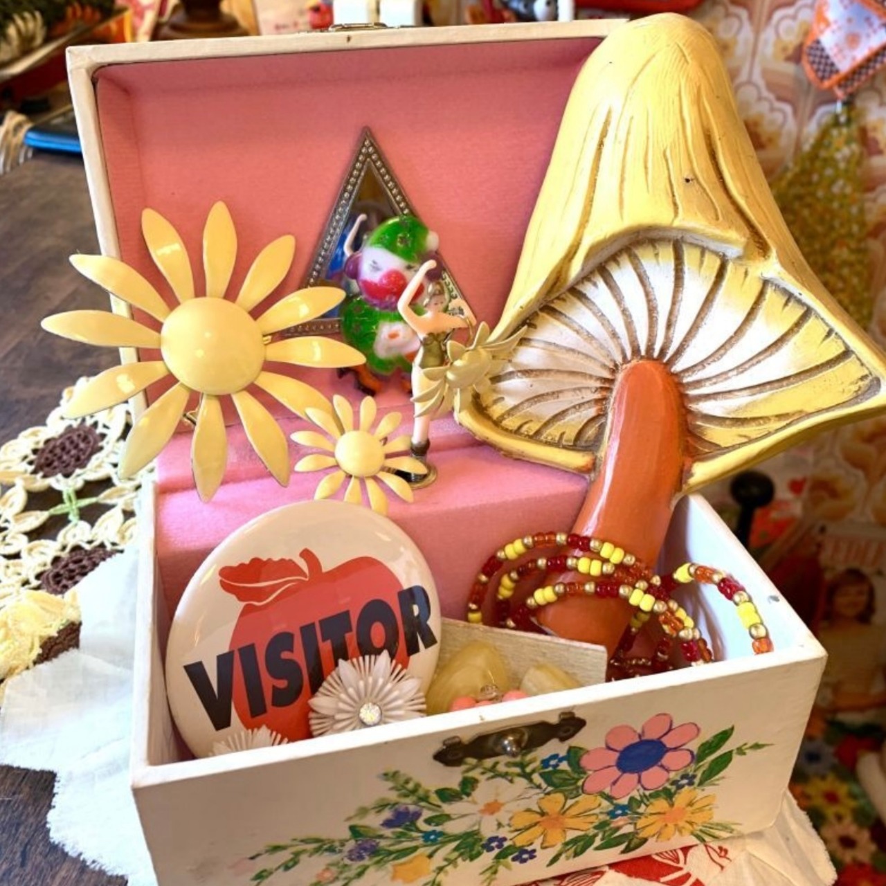 古着コーデのアクセントに缶バッチなどと一緒に付けて頂いたり、バッグやハット、スカーフや帯を留める際のアクセサリーとしてご使用頂いても可愛いかと思います。