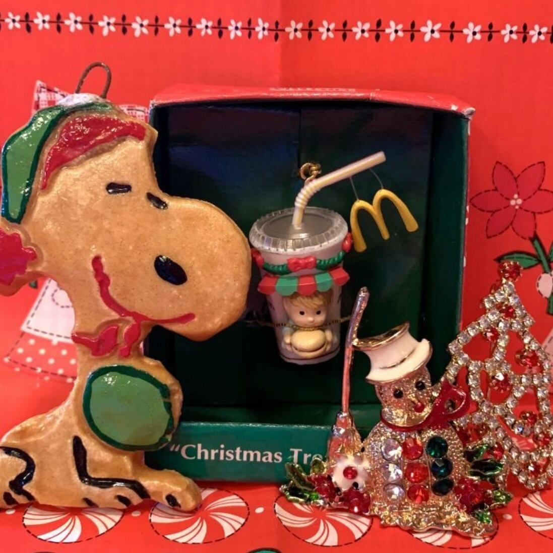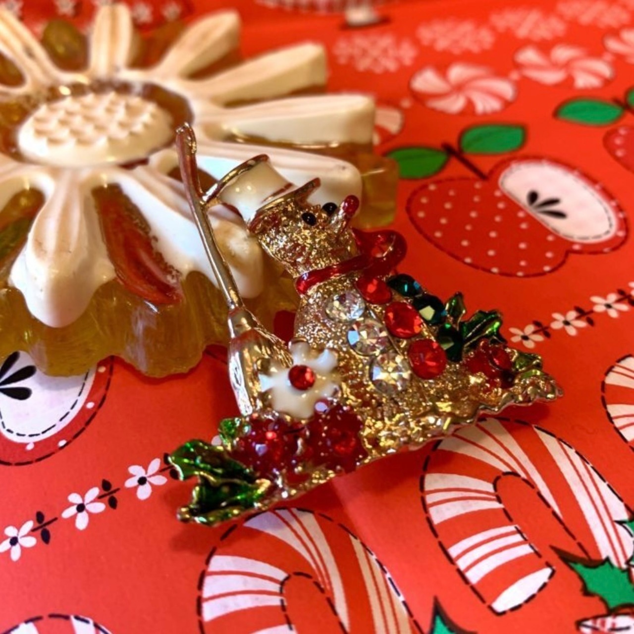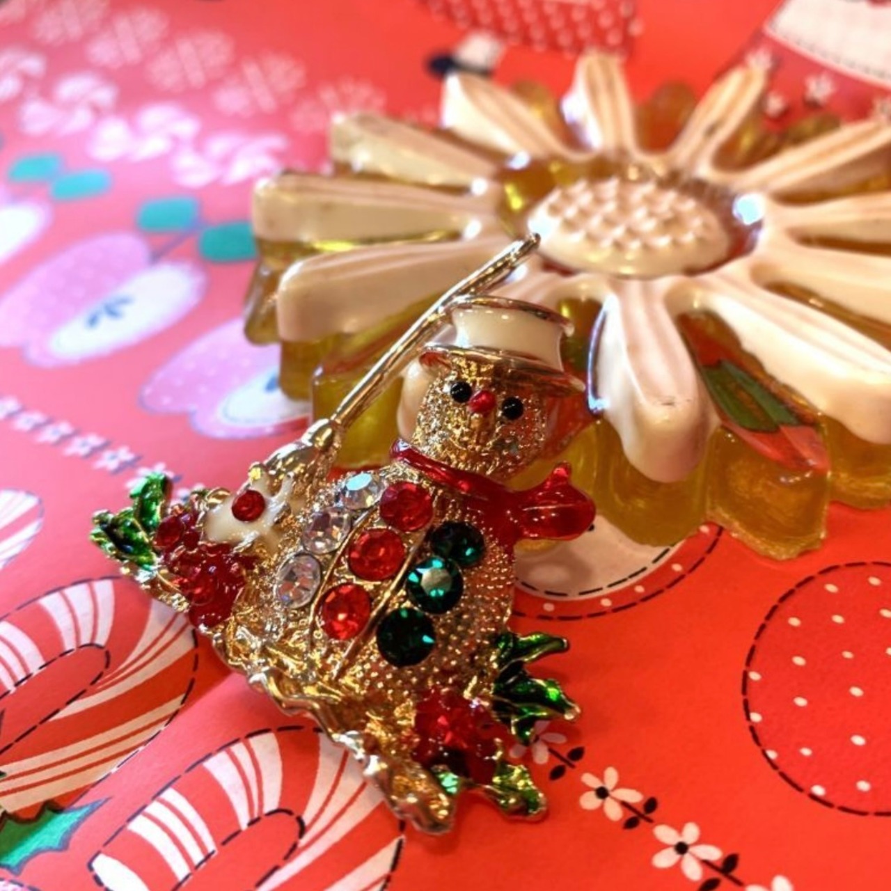 60'S USA Christmas motif rhinestone brooch。