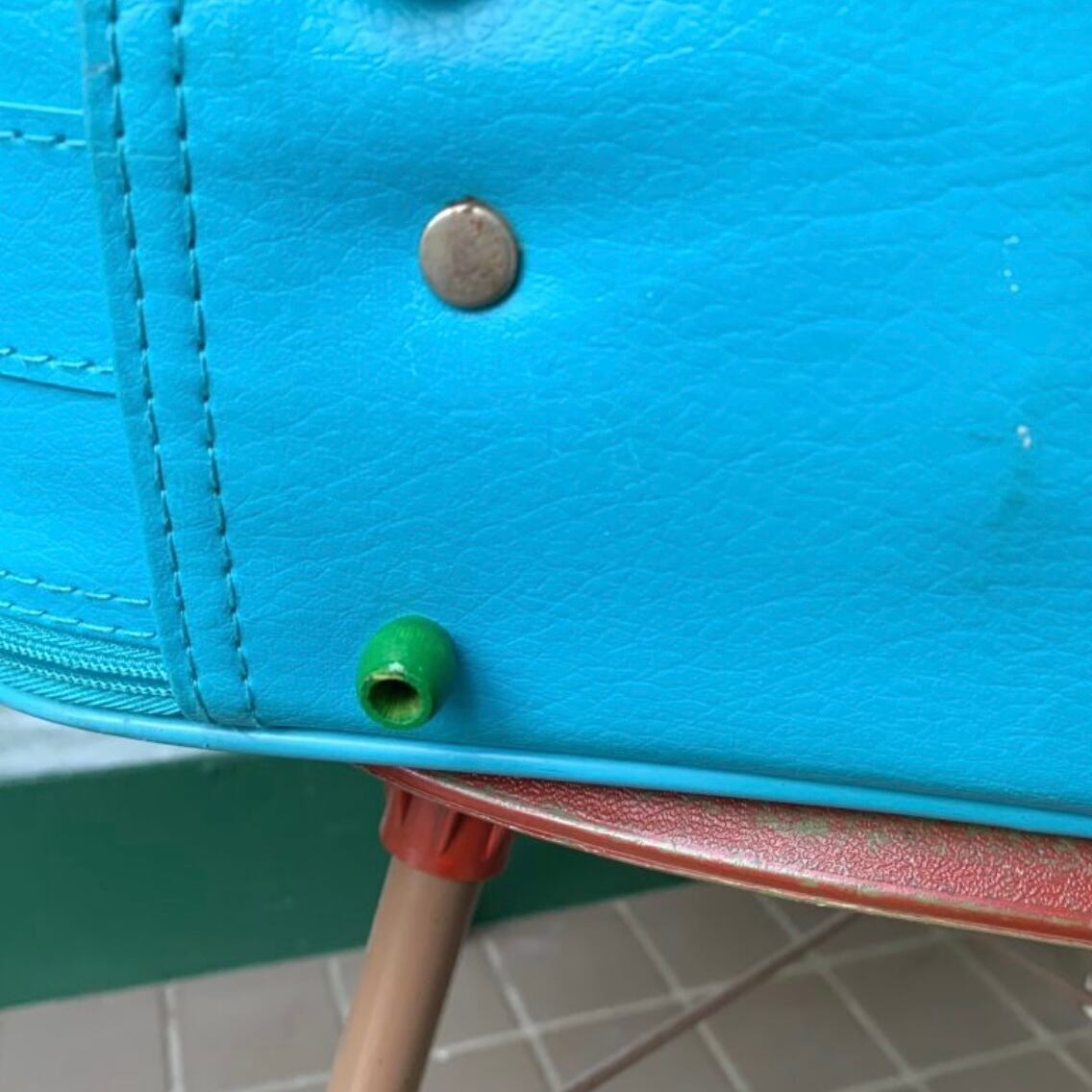 底面に4つの脚が付いているのですが1つ欠損した箇所にウッドビーズがリペアされております。