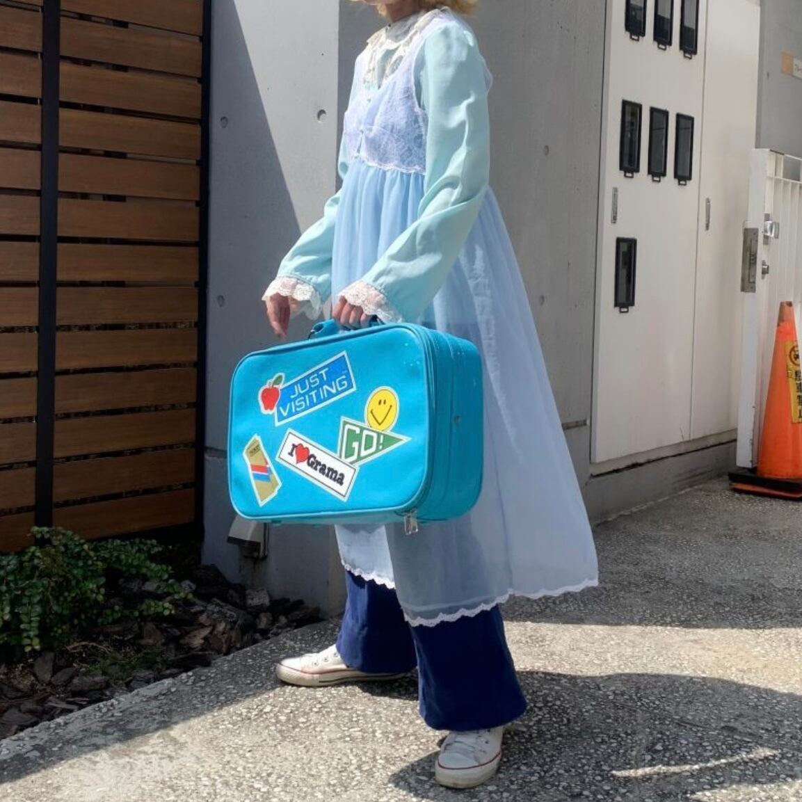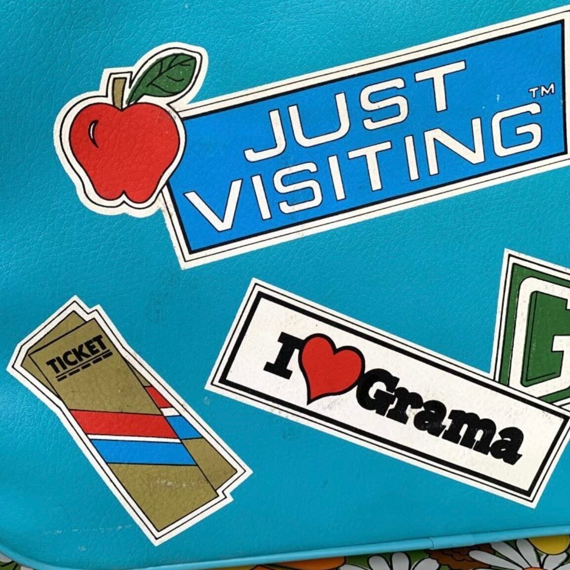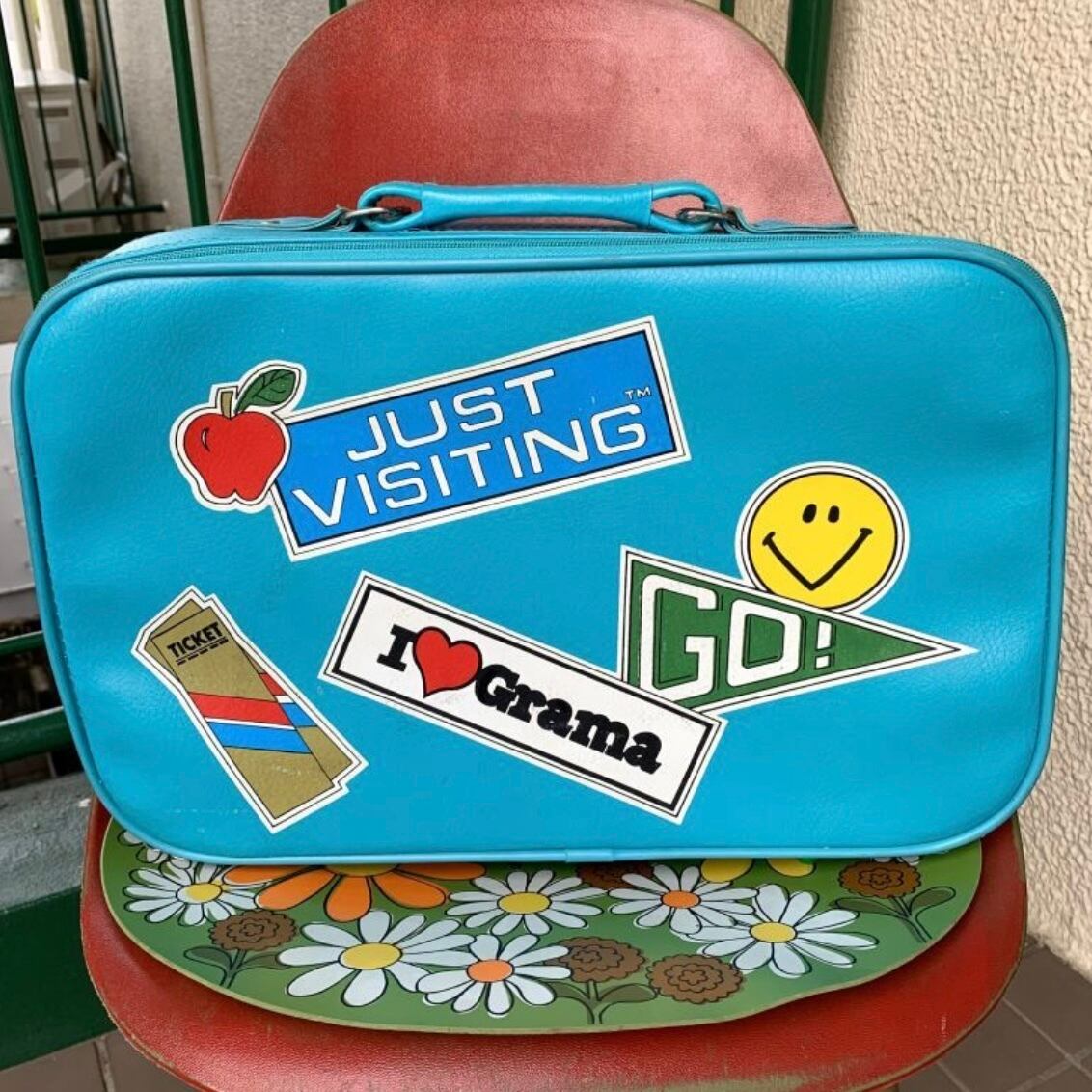 当時、スーツケースを持っておばあちゃんのお家へ行く習慣からI❣️Gramaのステッカーがプリントされているのも温かみがあって素敵なポイントです。