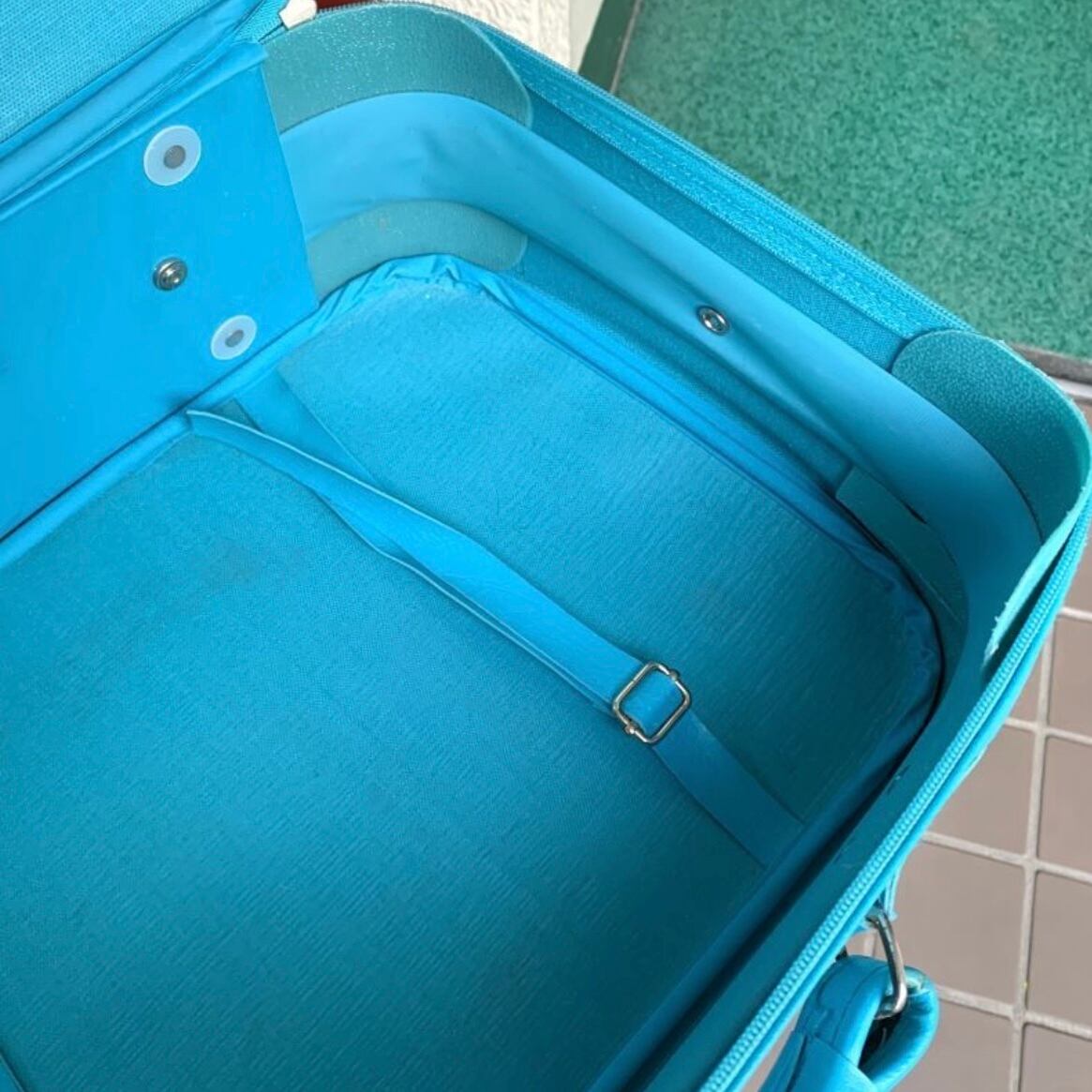 2泊3日くらいの小旅行にぴったりなサイズ感で内側に固定ベルトも付いていて、収納力もあり、バッグ自体の重さは軽めなので扱いやすいかと思います。