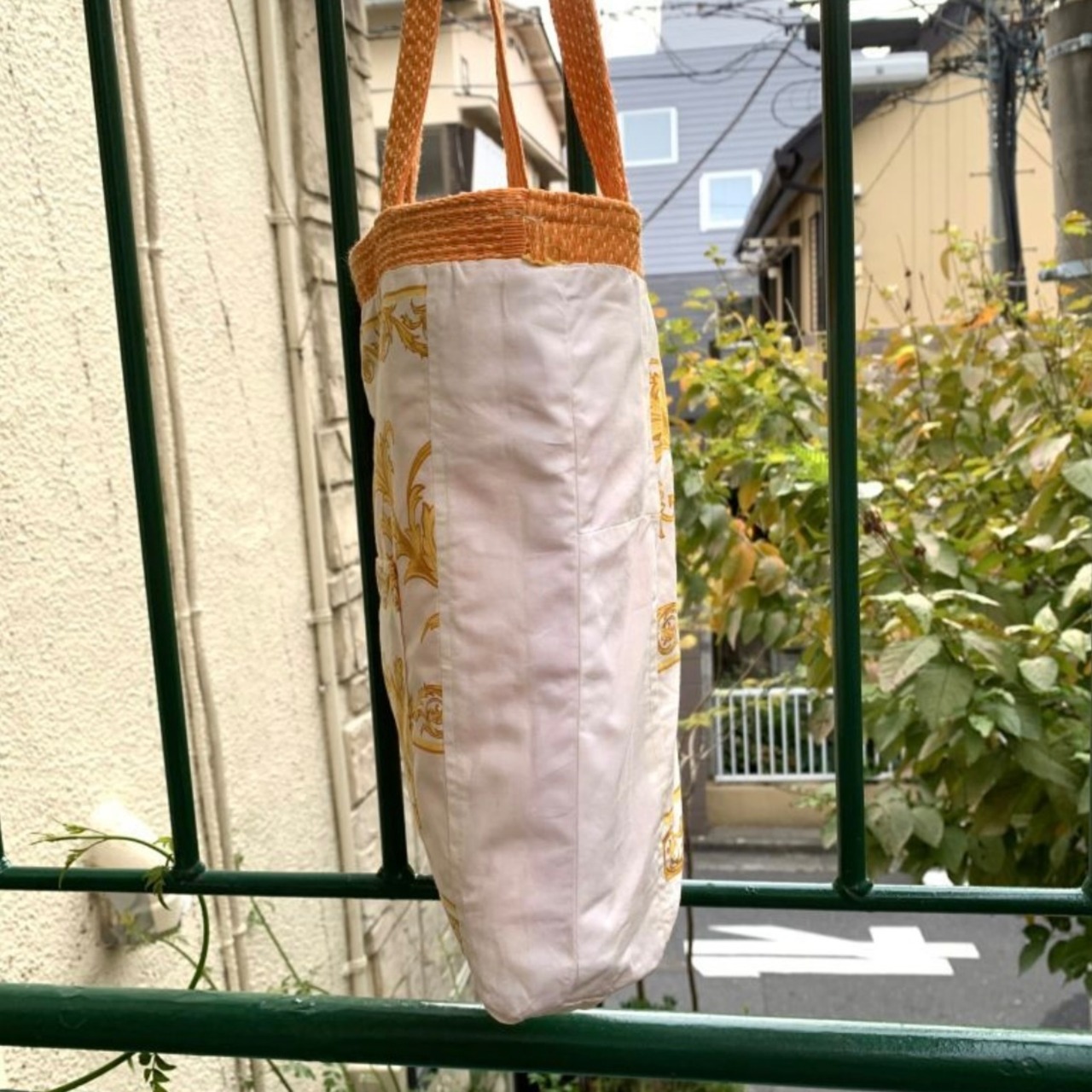 生地が足りなかったのか、内側の片側のみ白い生地が使われているところもハンドメイドならではな温みのある作りです。