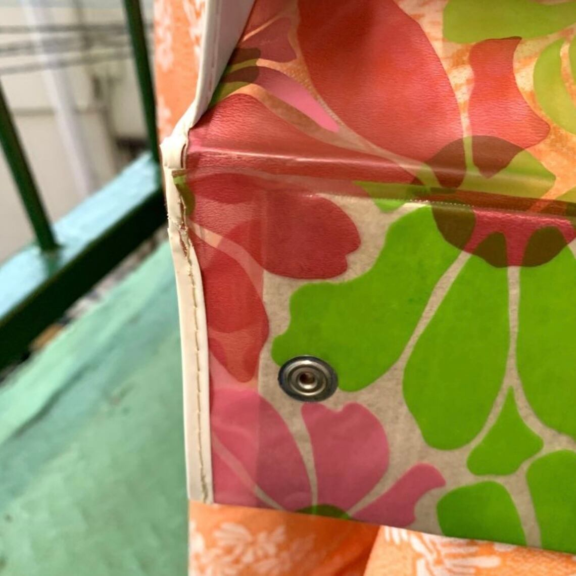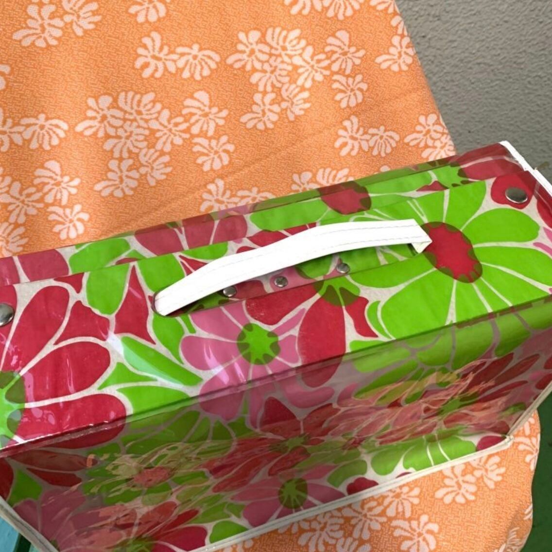 70年代 ヴィンテージ フラワー柄のビニール製バッグです。