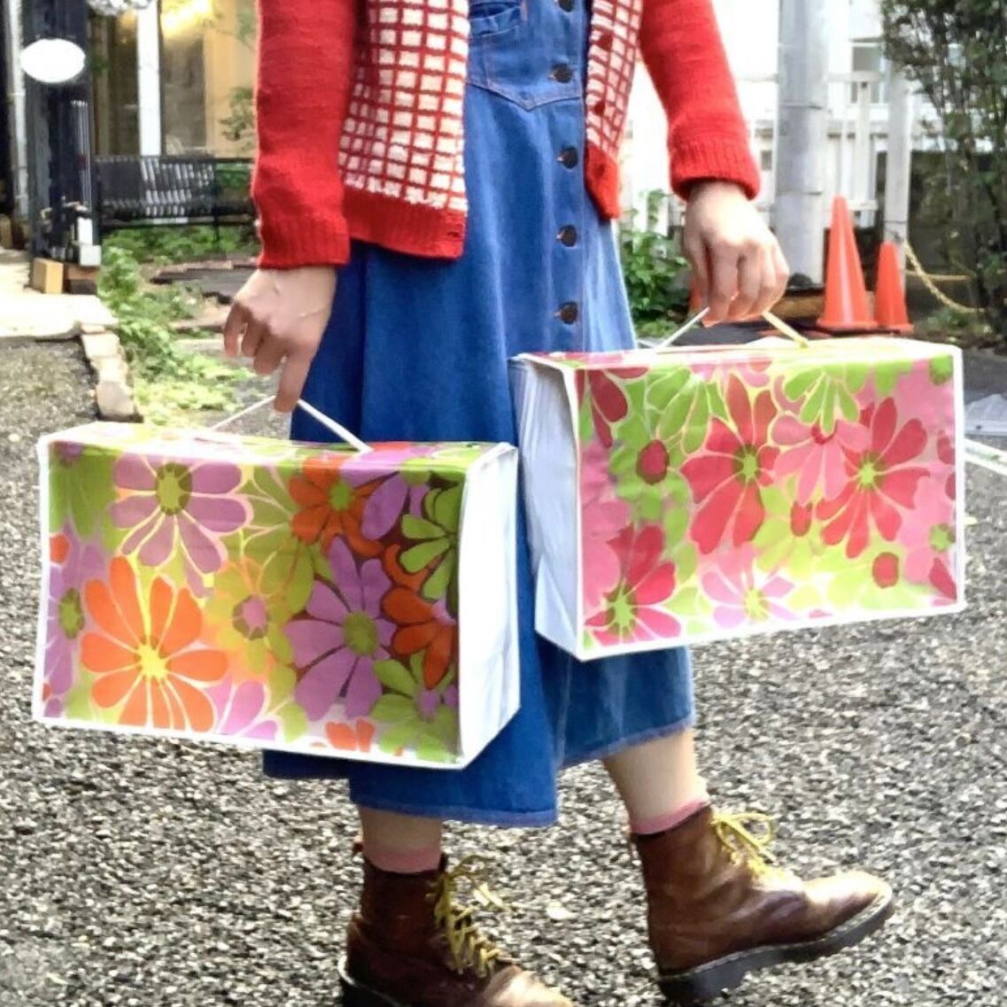 70'S Vintage flower pattern vinyl bag。