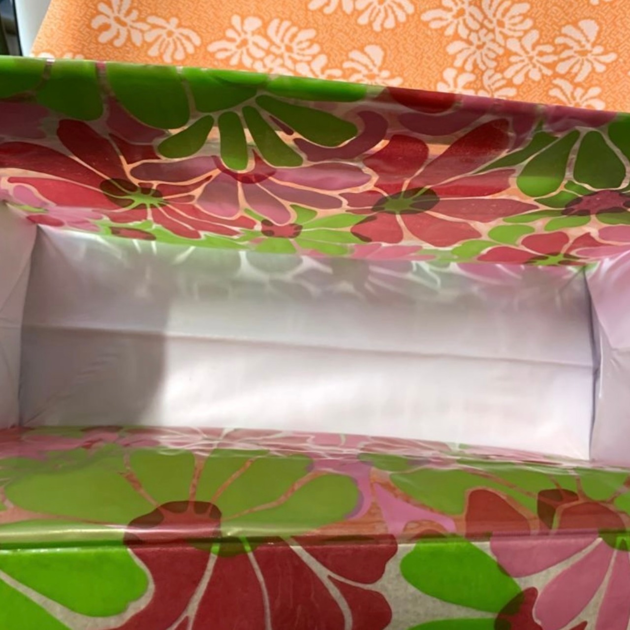 クリアベースにライトグリーン、ピンクのポップなフラワー柄がとっても可愛いアイテムです。