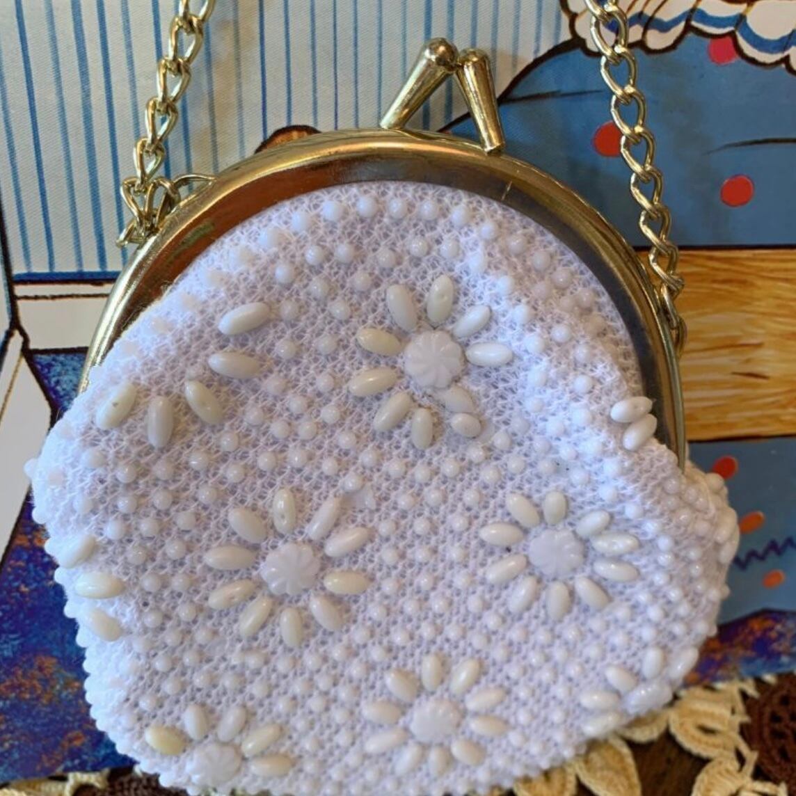 ホワイトのフラワー模様のビーズのデザインがとっても可愛いです。