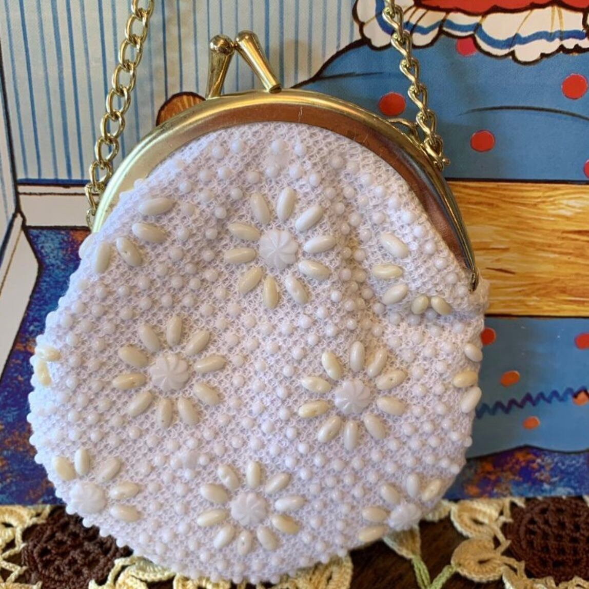 60'S〜70'S USA DEAD STOCK Vintage Flower beads mini bag&marine patch mini glove set。