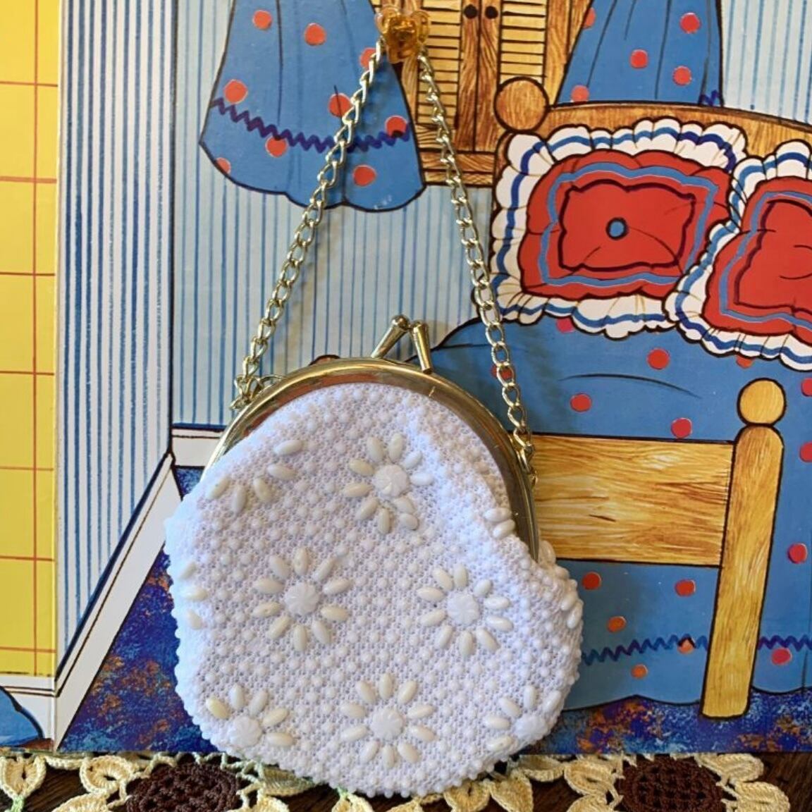 DEAD STOCK Vintage Flower beads mini bag&marine patch mini glove set