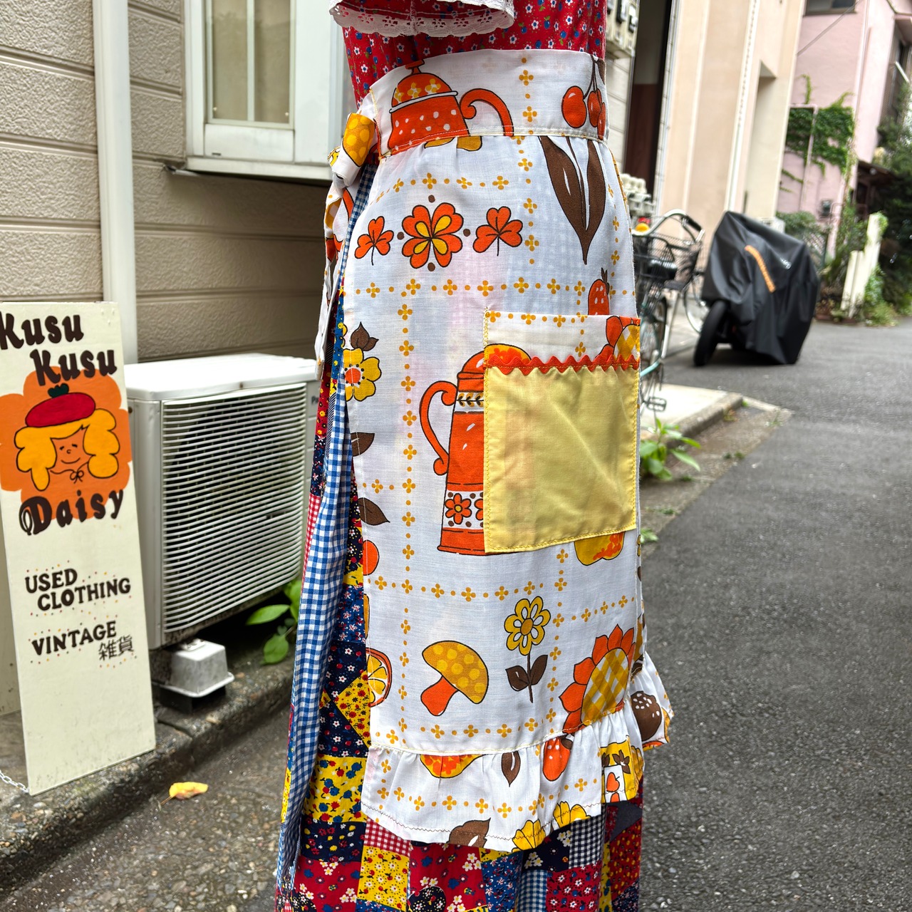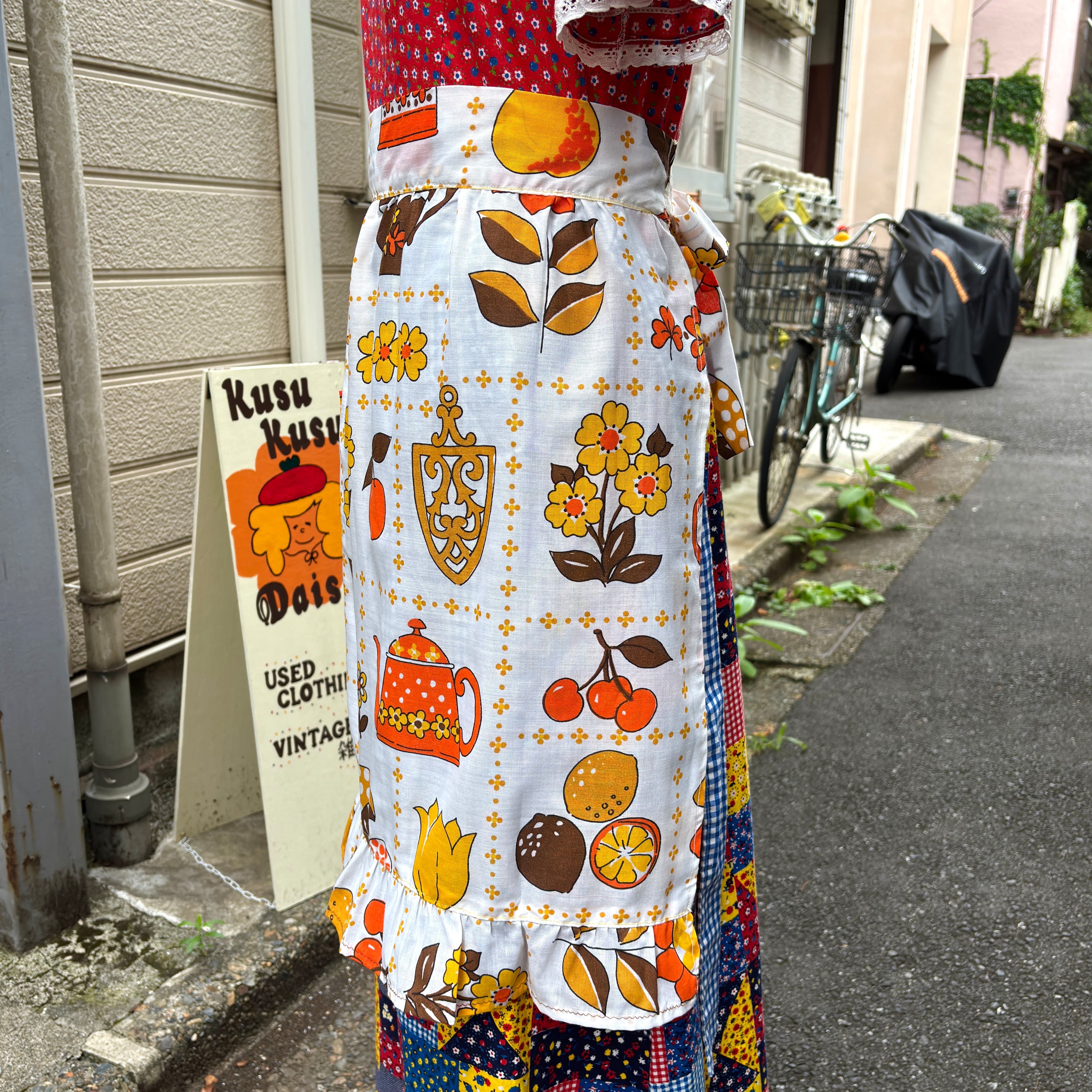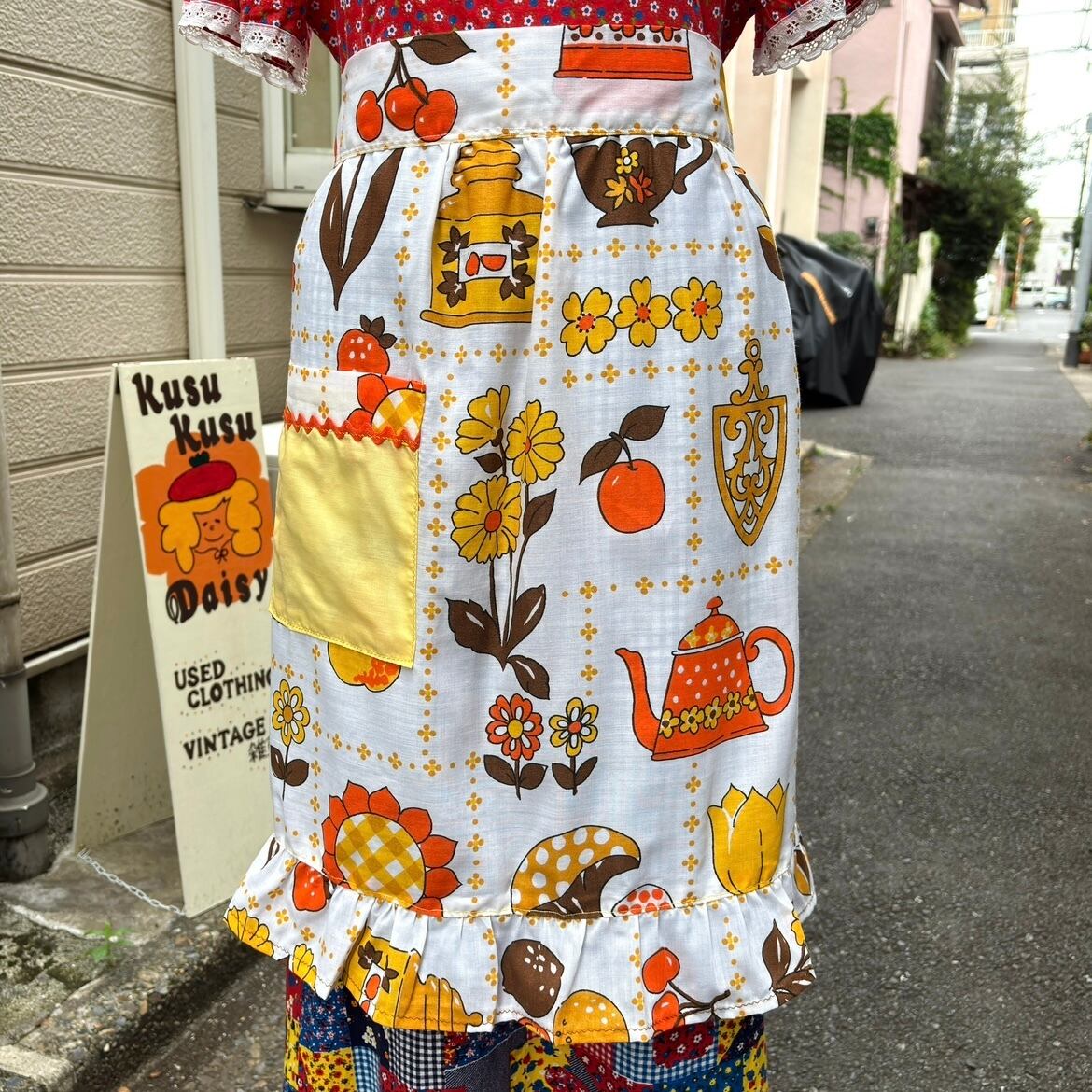 エプロンとしてはもちろん、スカートやワンピース、デニムなど古着コーデにレイヤードして頂いても可愛いかと思います。