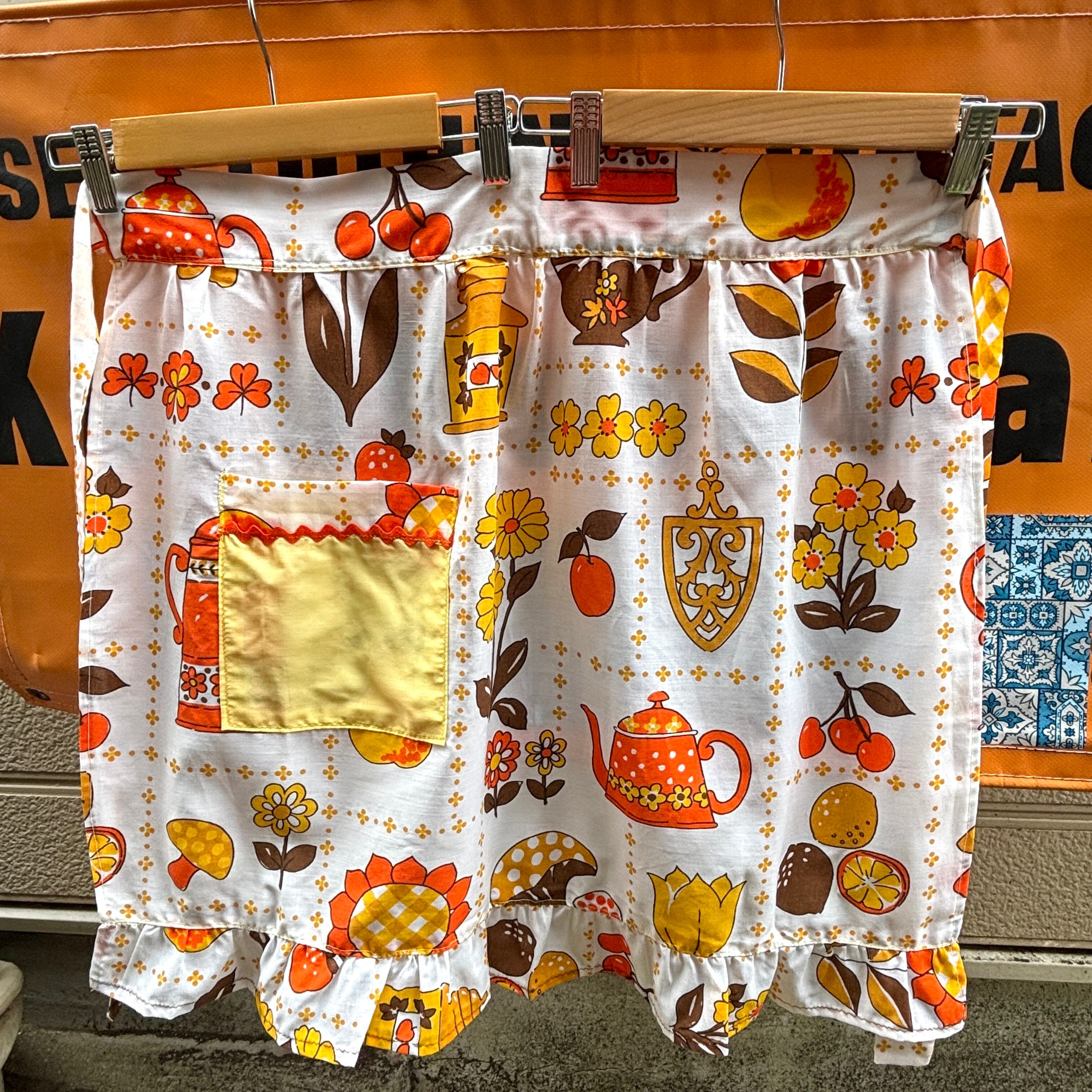 70'S USA Vintage flower&fruits pattern apron。