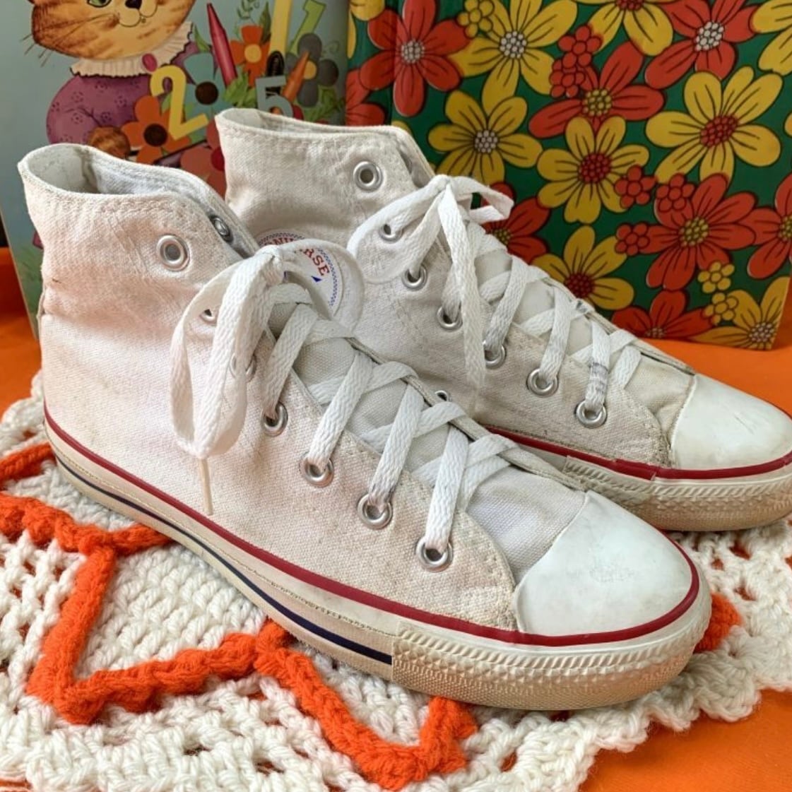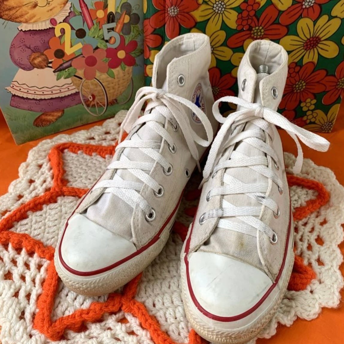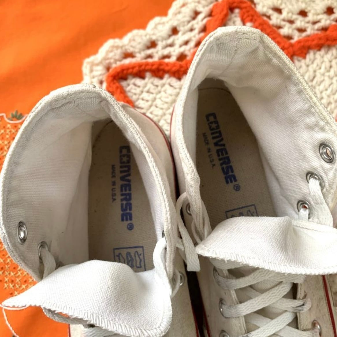 90年代 USA製 ホワイト 生成りカラー ハイカットコンバースです。