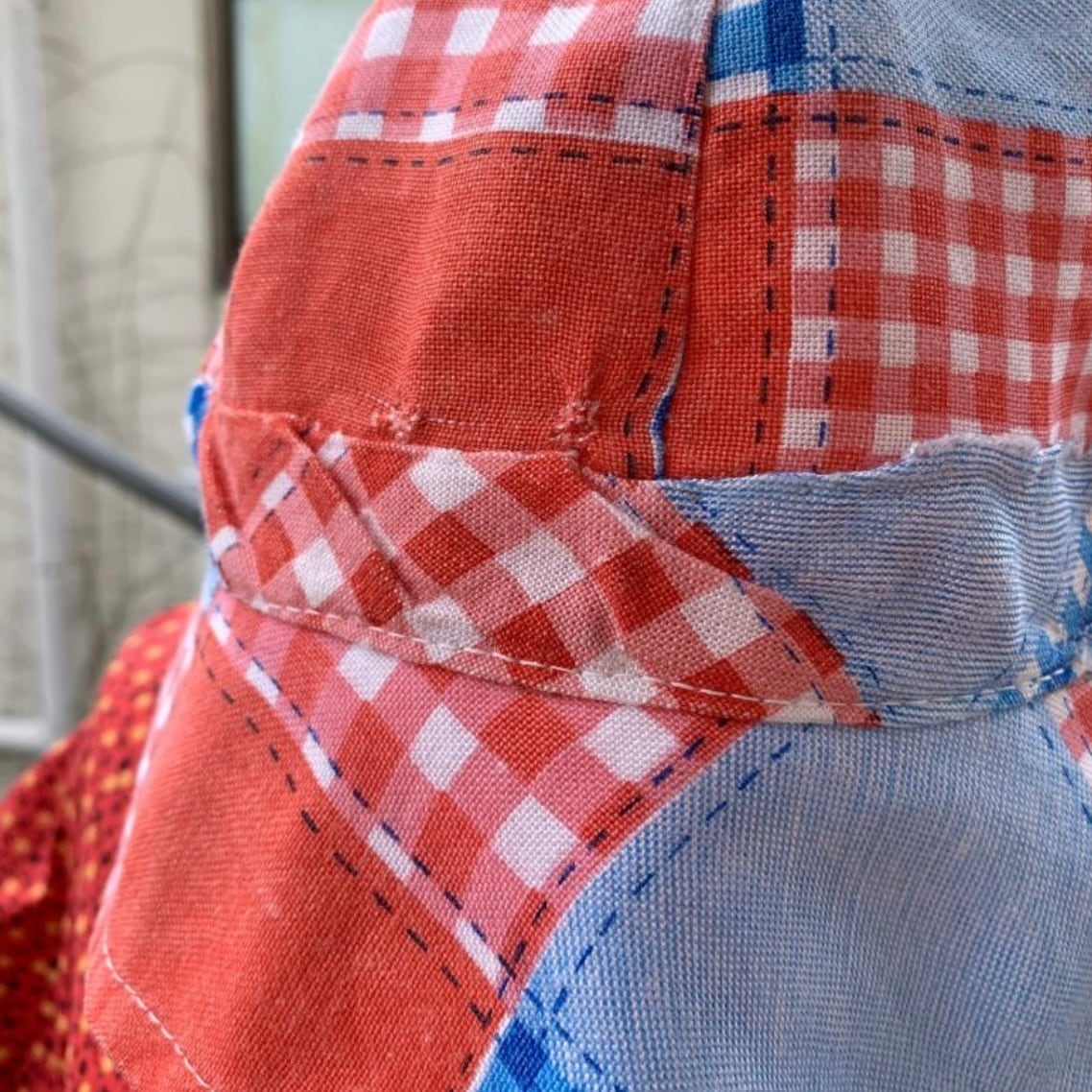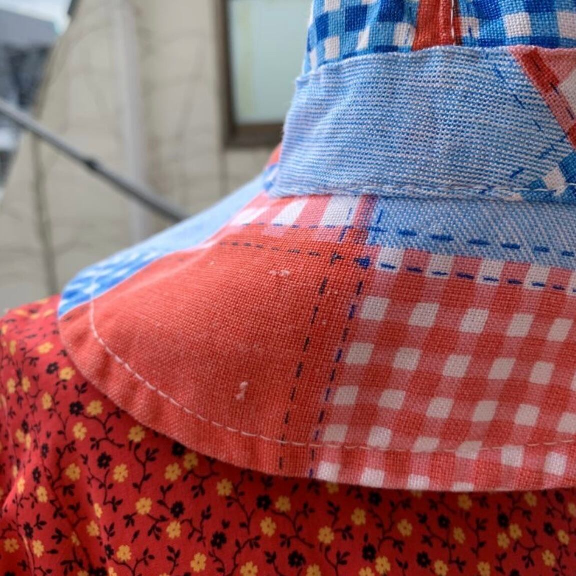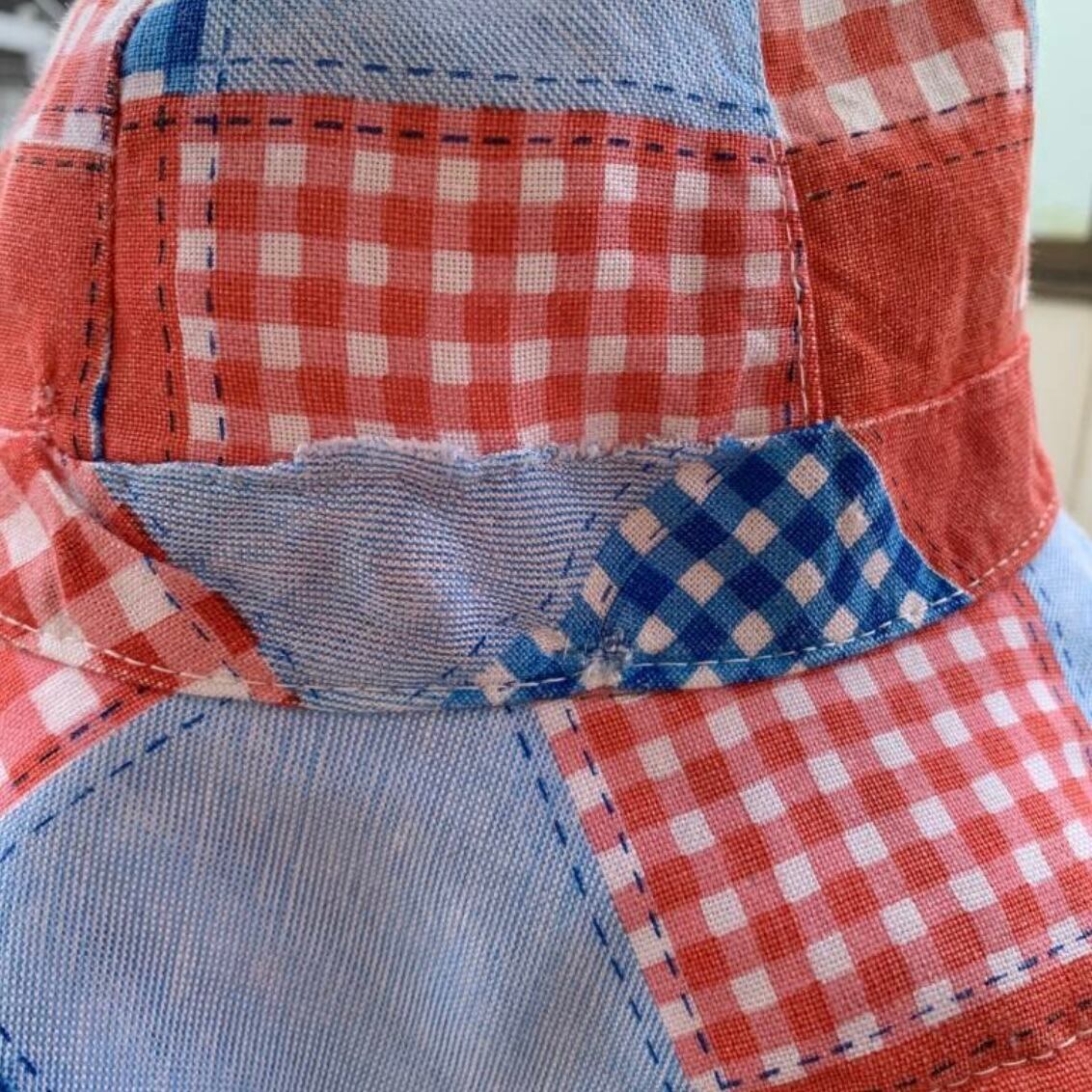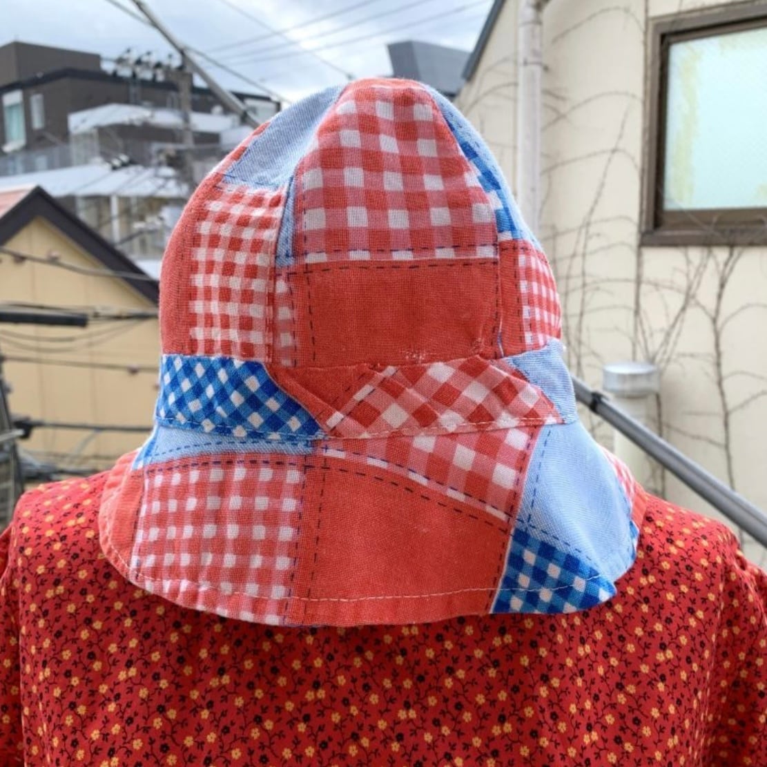 70年代 ヴィンテージ 当時のハンドメイド1点もの パッチワーク柄 コットンハットです。