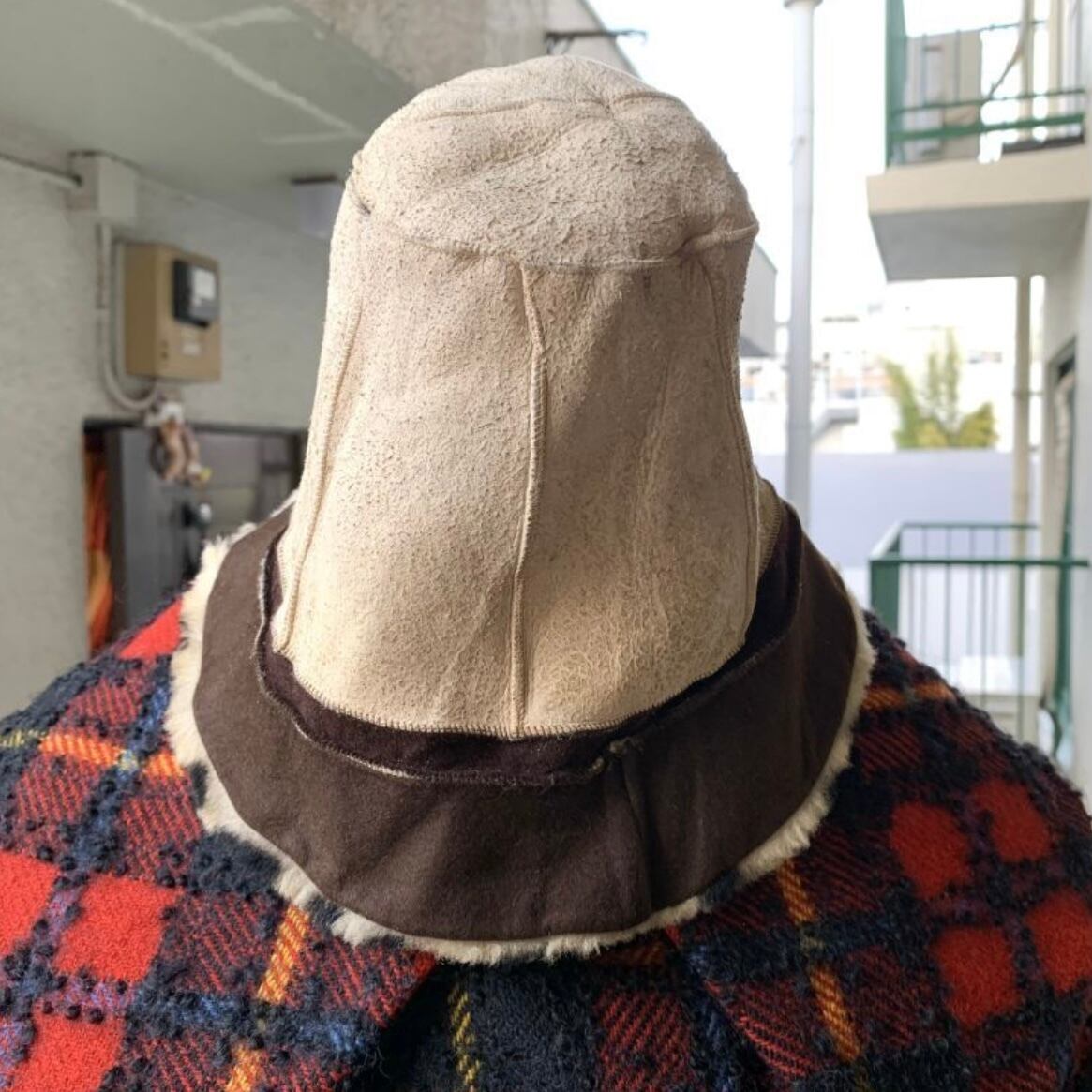 内側のラムレザー(ツバの部分も込みで)にヴィンテージレザー特有の毛羽立ち、シワのクセが見られます。