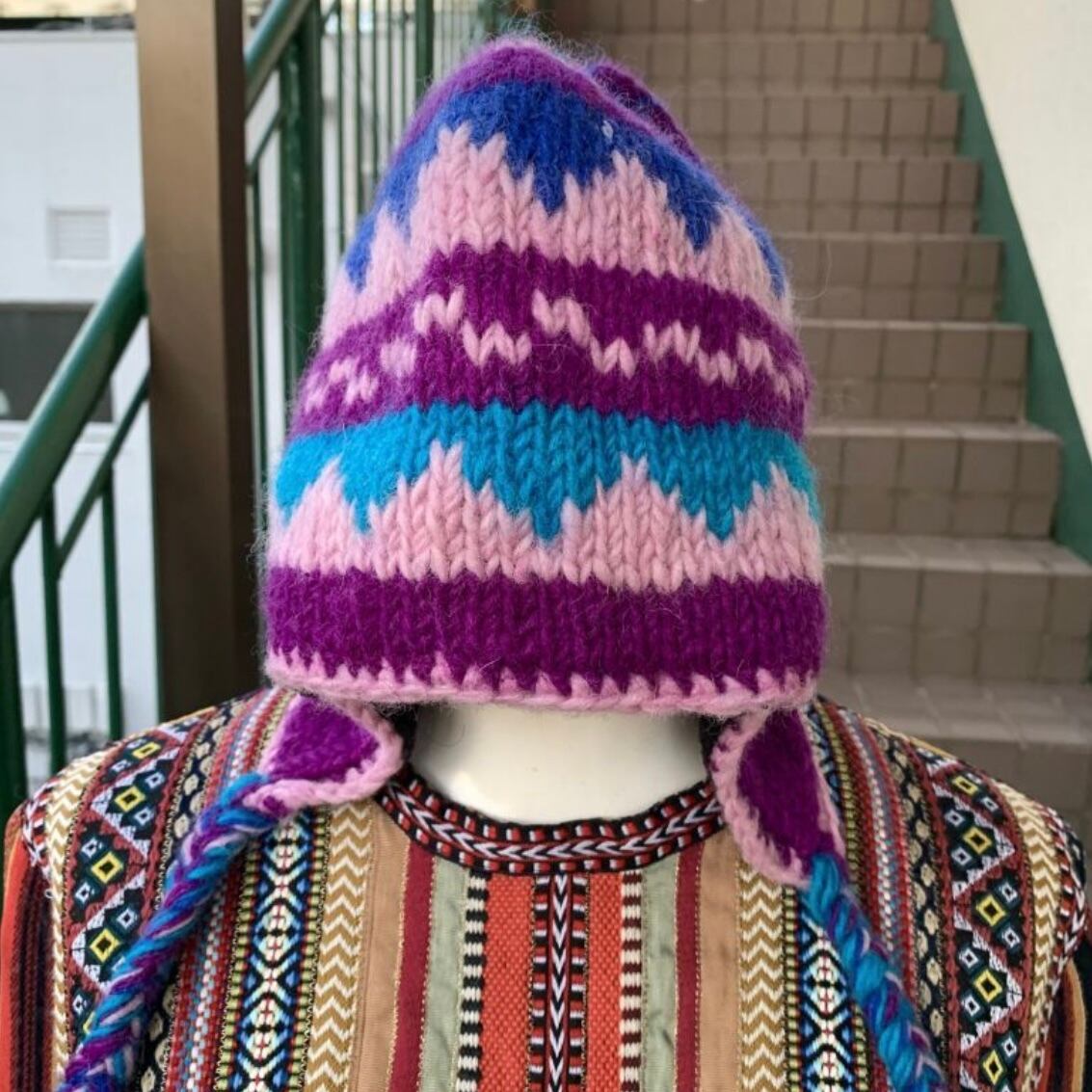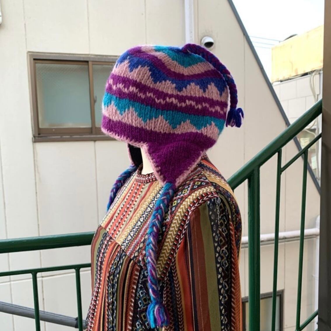 80'S Made in NEPAL Vintage Braid Knit Cap。