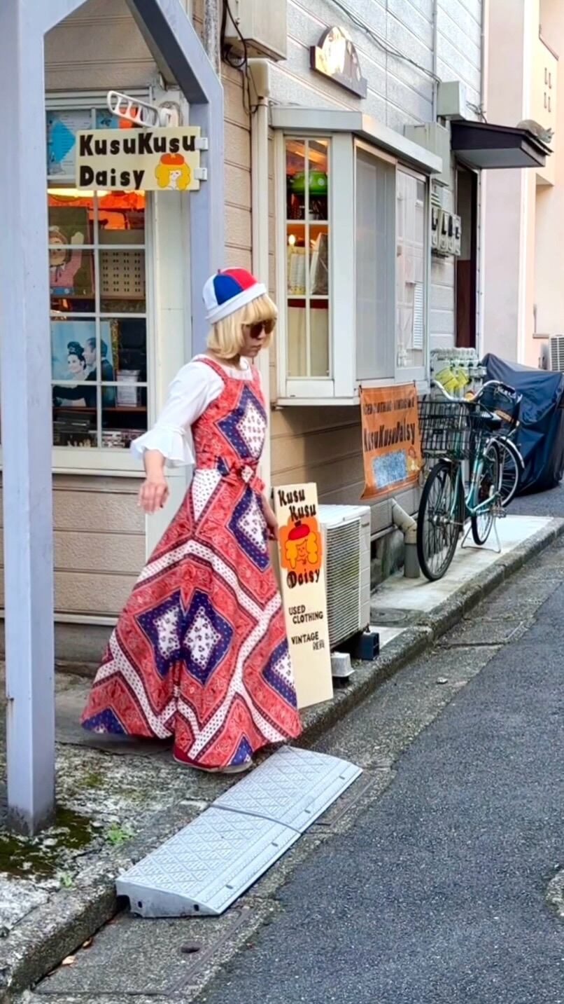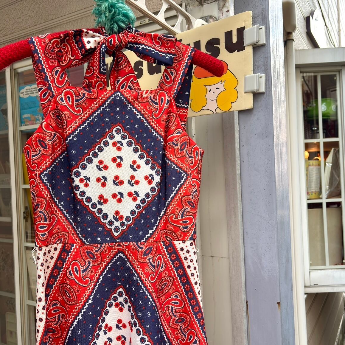 しっかりとしたポリ生地にトリコロールカラーのバンダナ柄がとっても可愛い1着です。