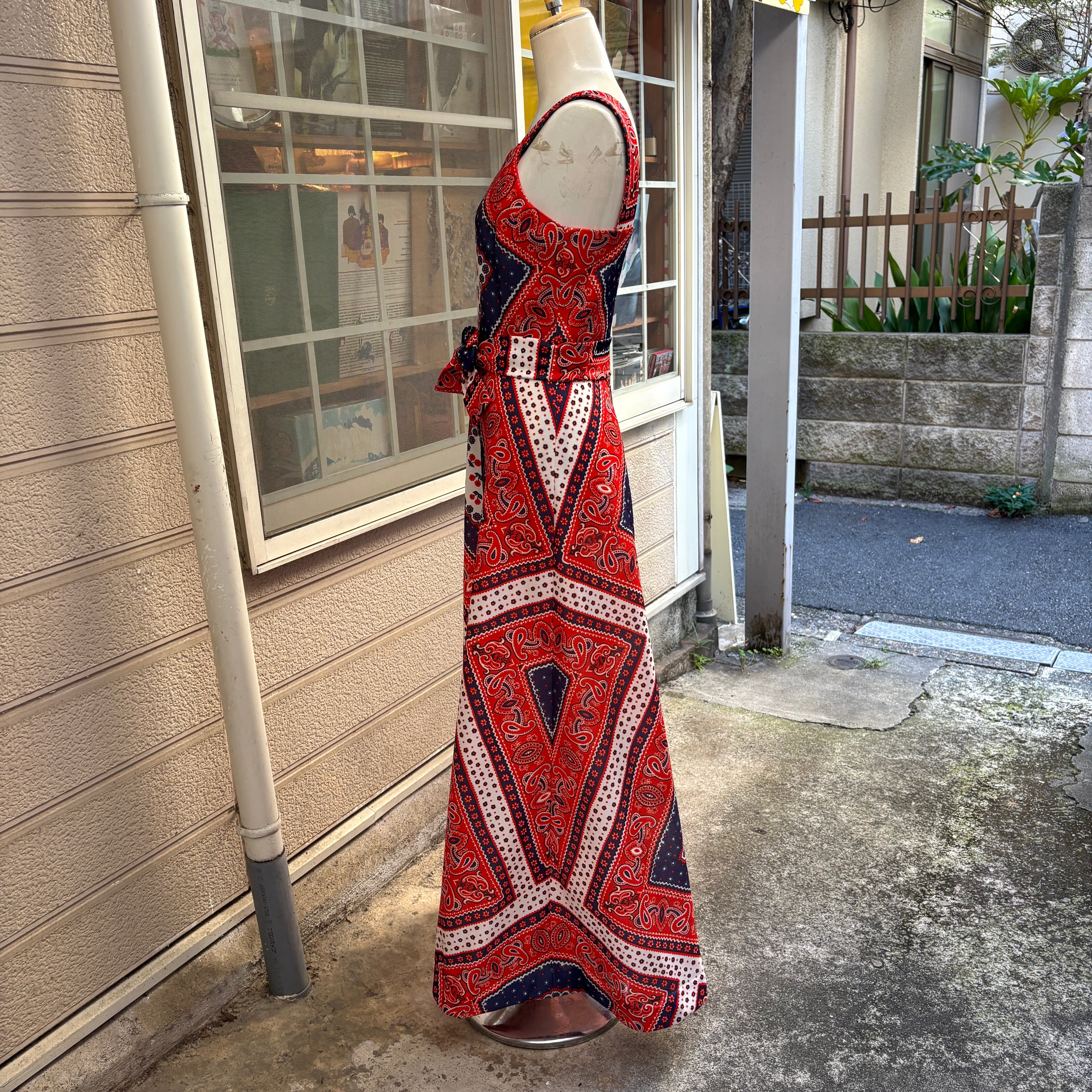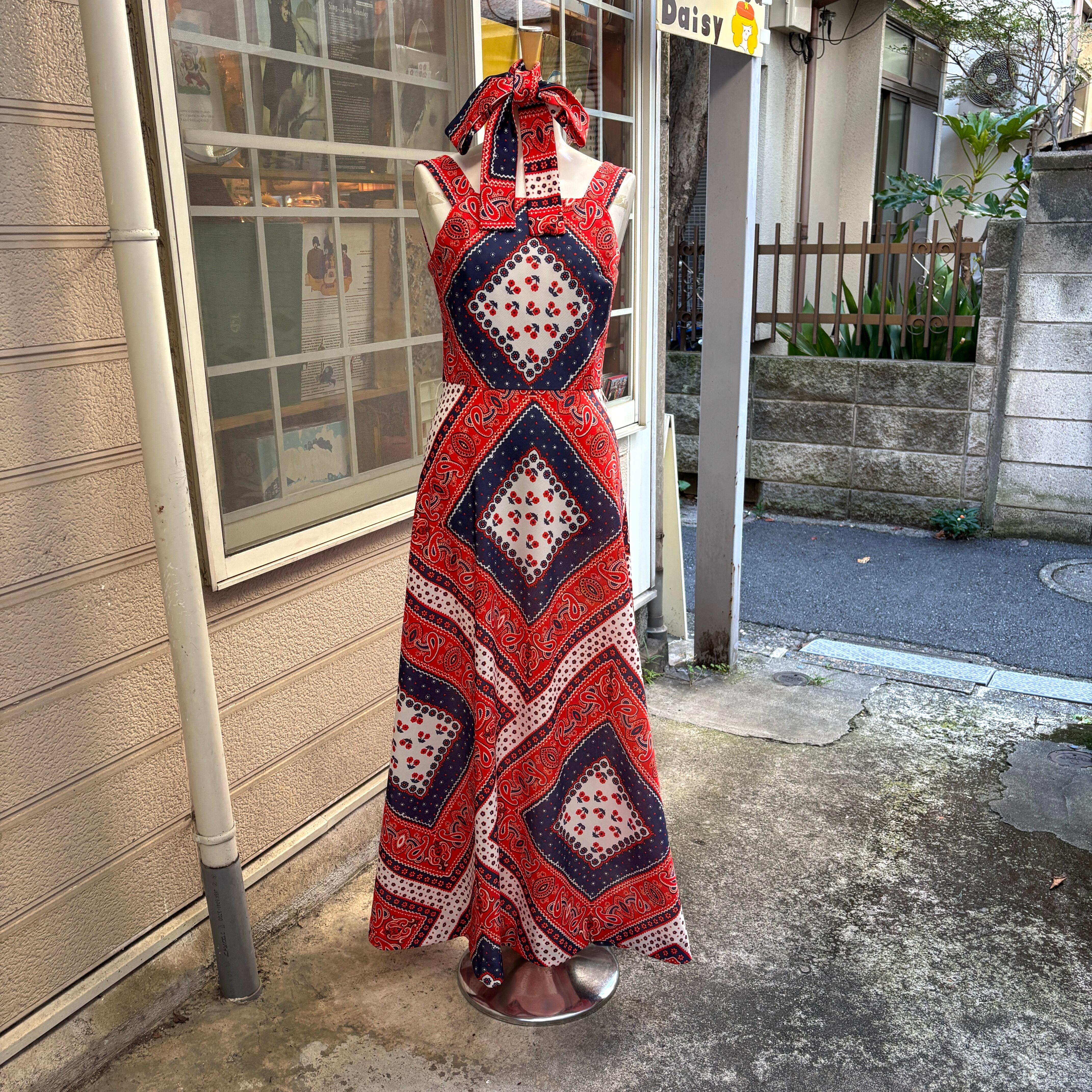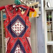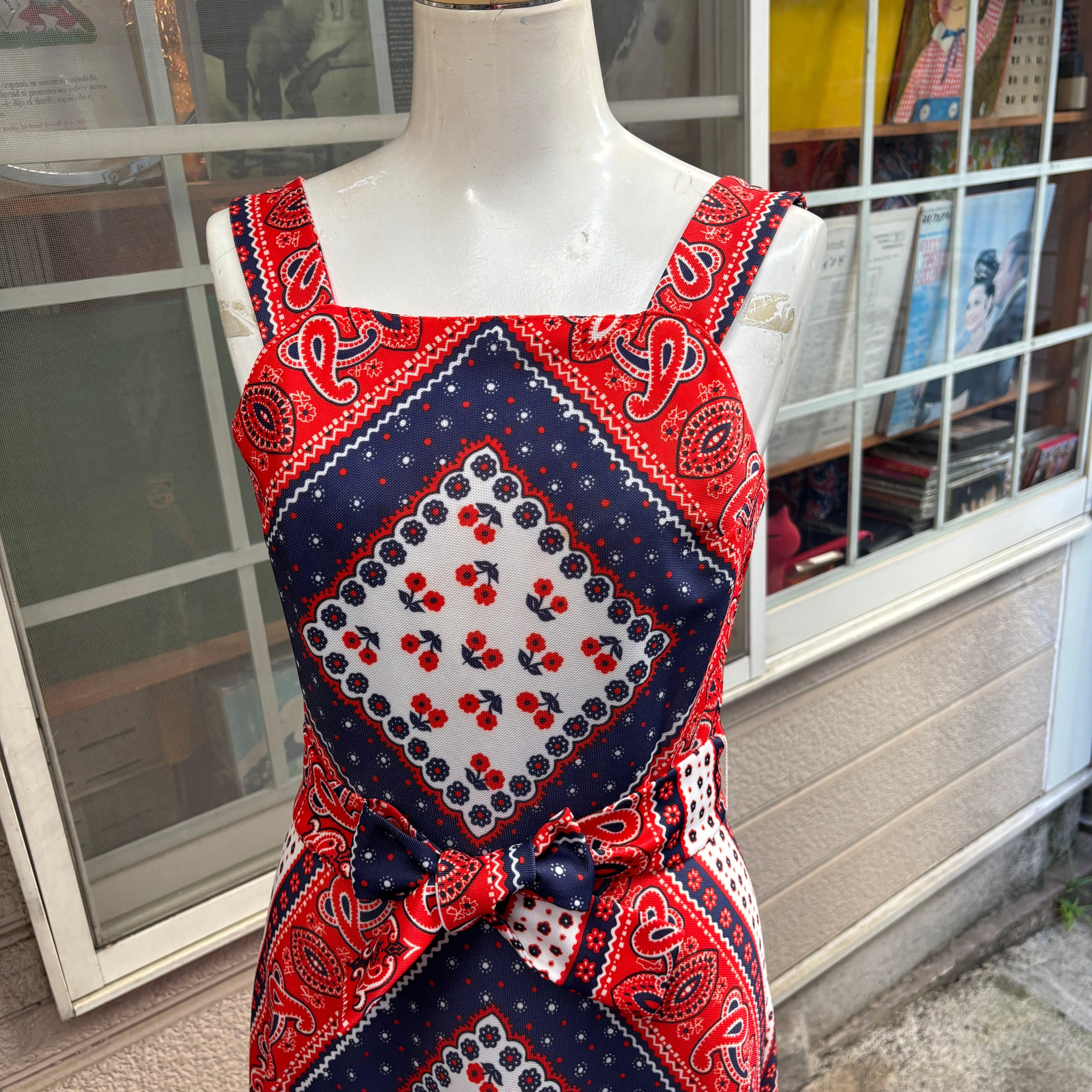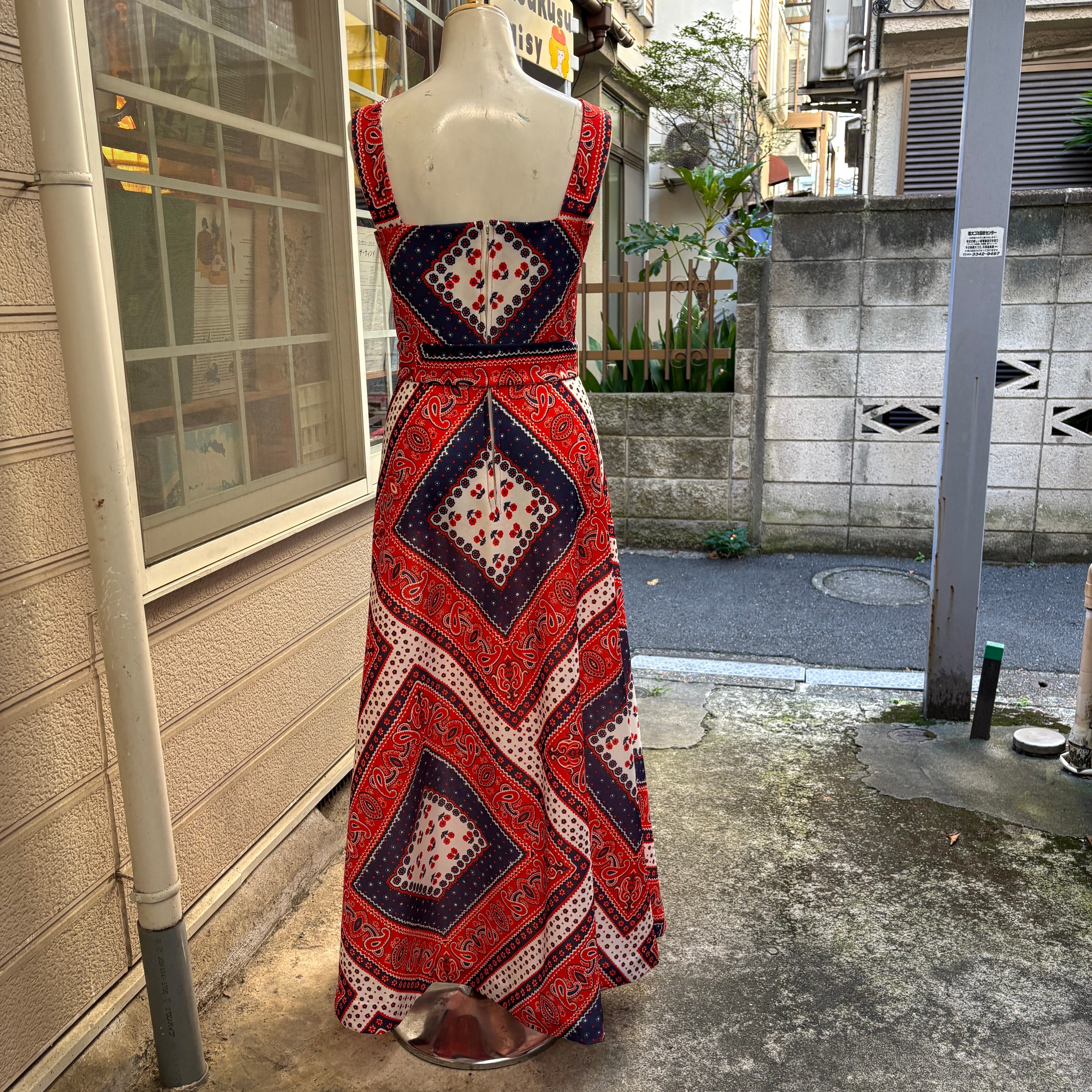 70'S USA Vintage Tricolor bandana pattern camisole dress。