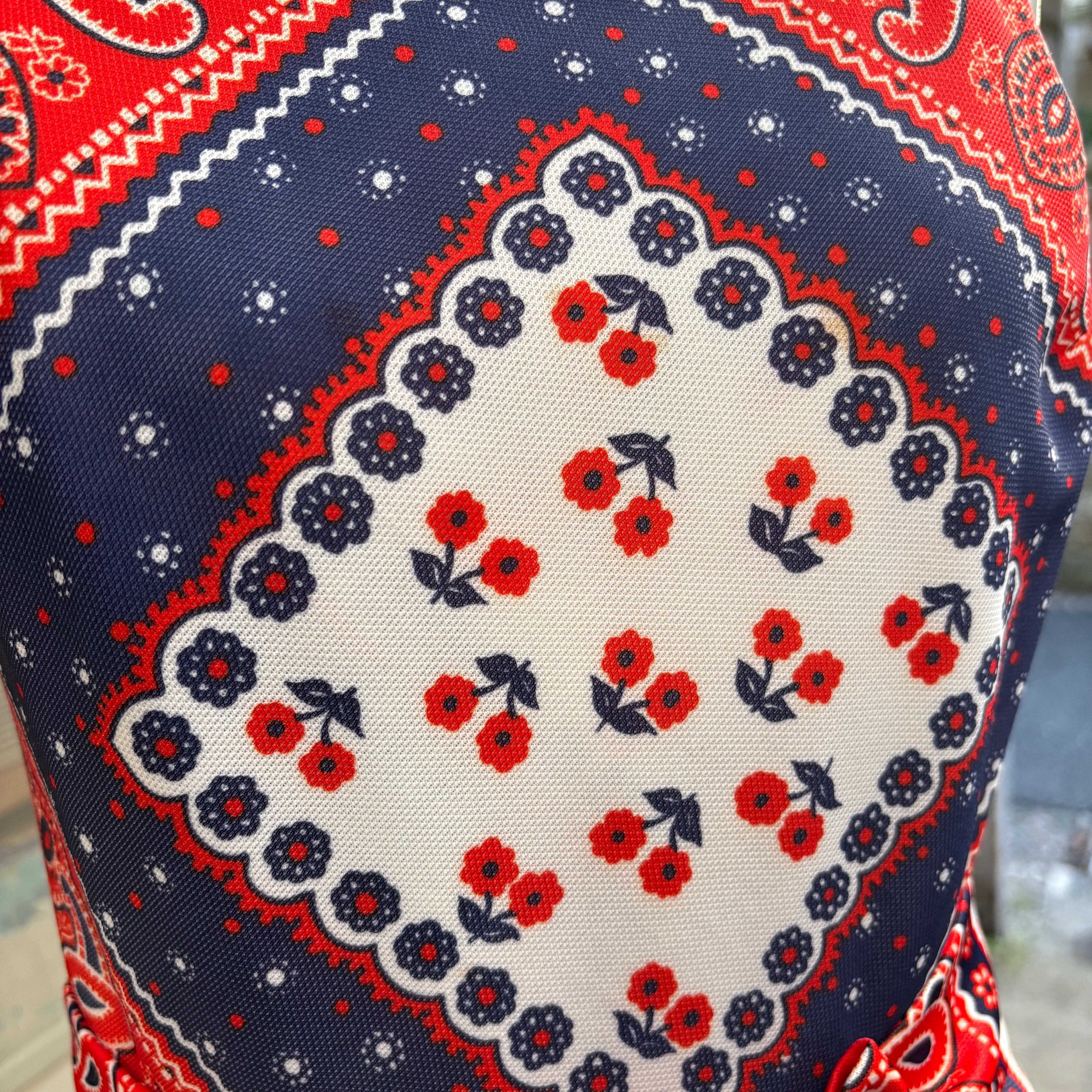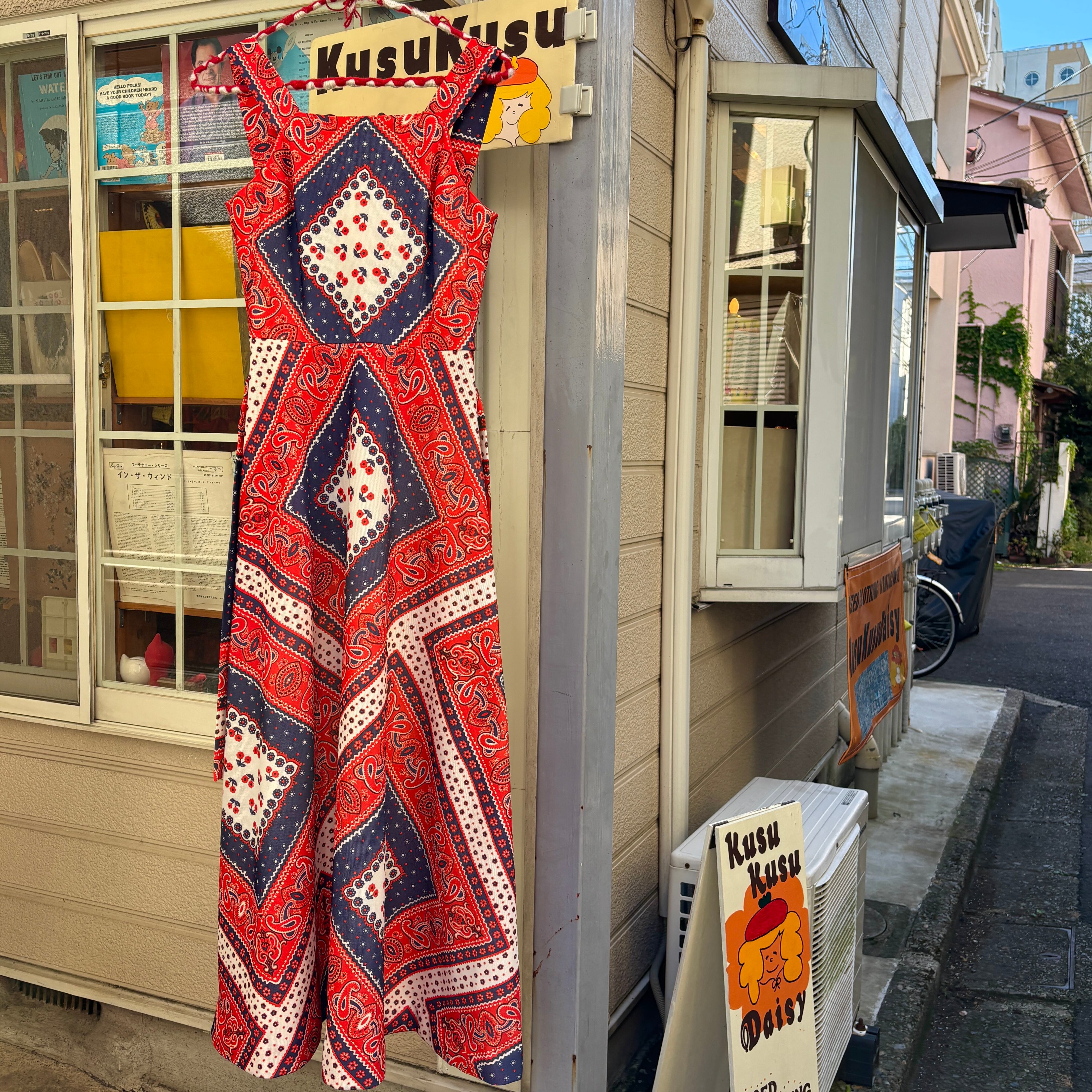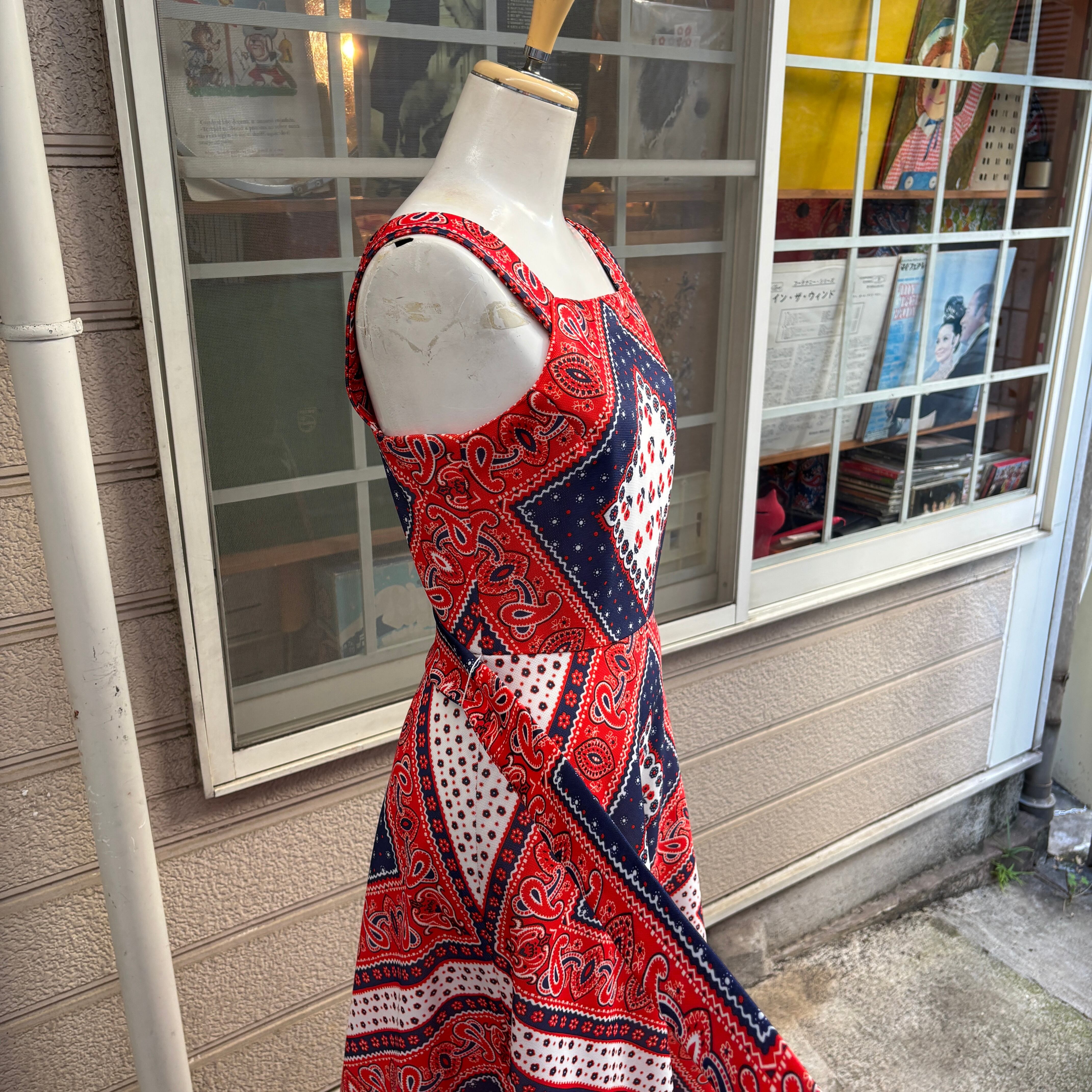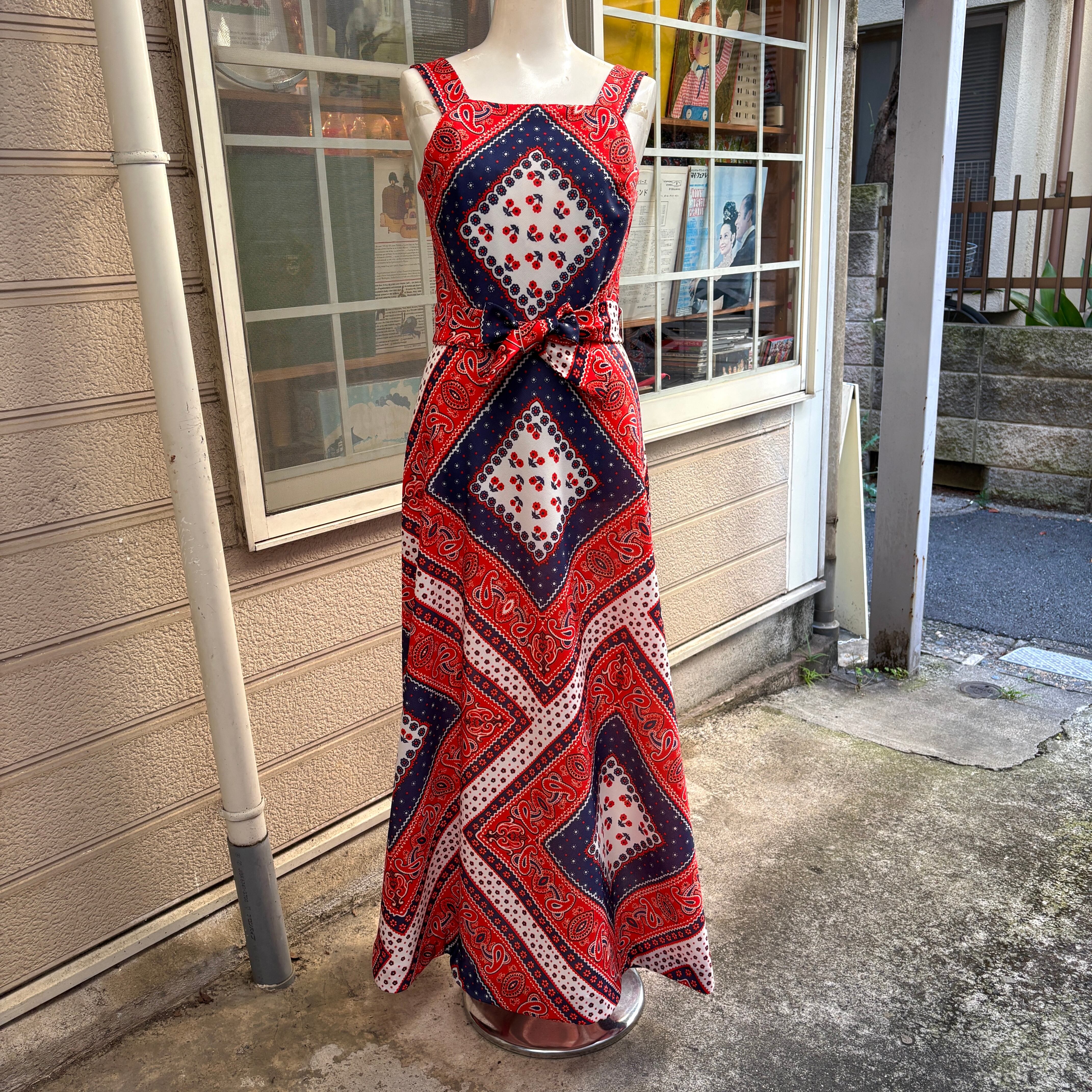 70'S USA Vintage Tricolor bandana pattern camisole dress。