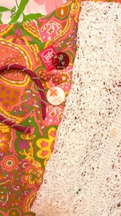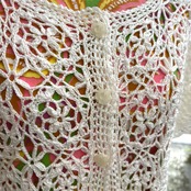 Vintage flower motif&button Crochet short sleeve cardigan