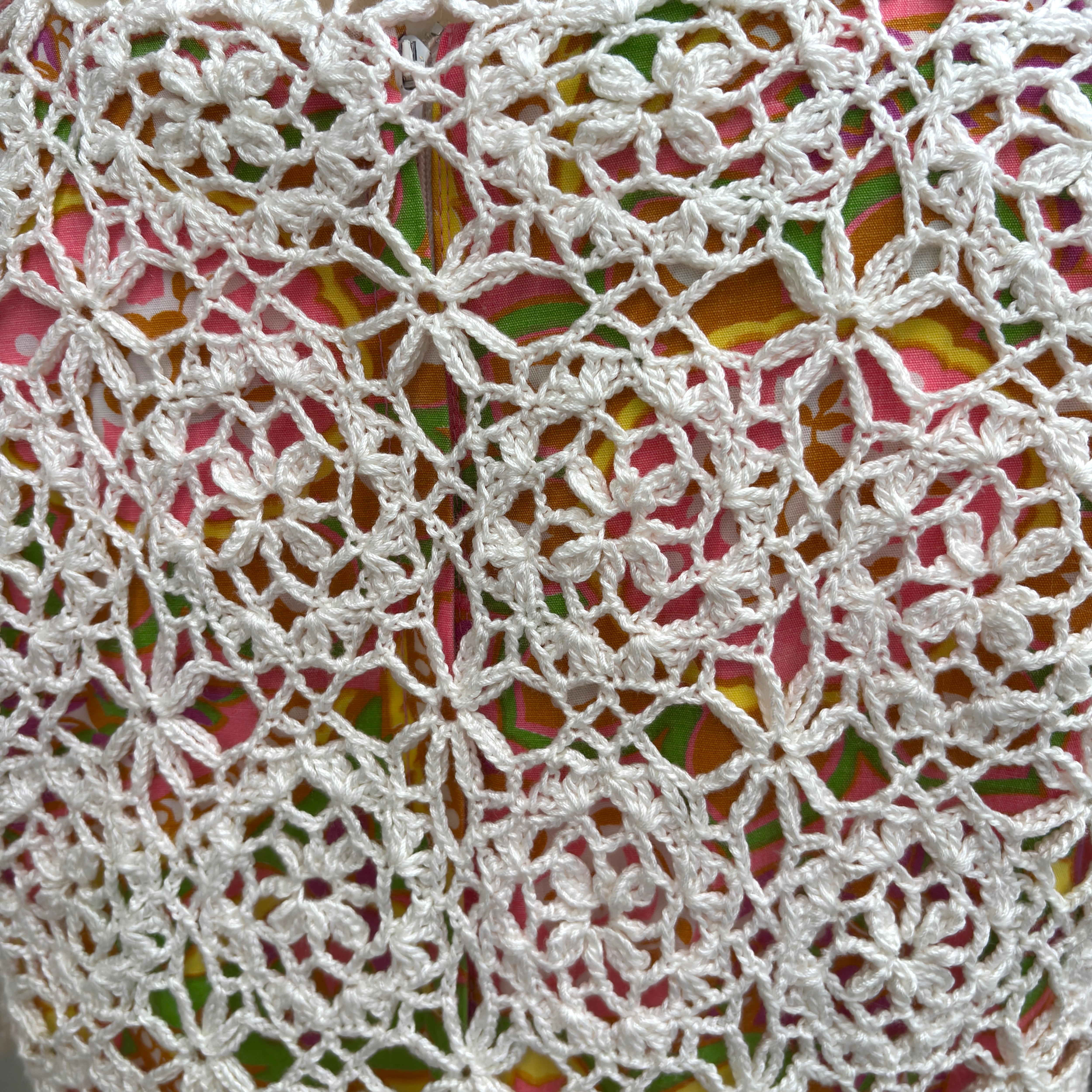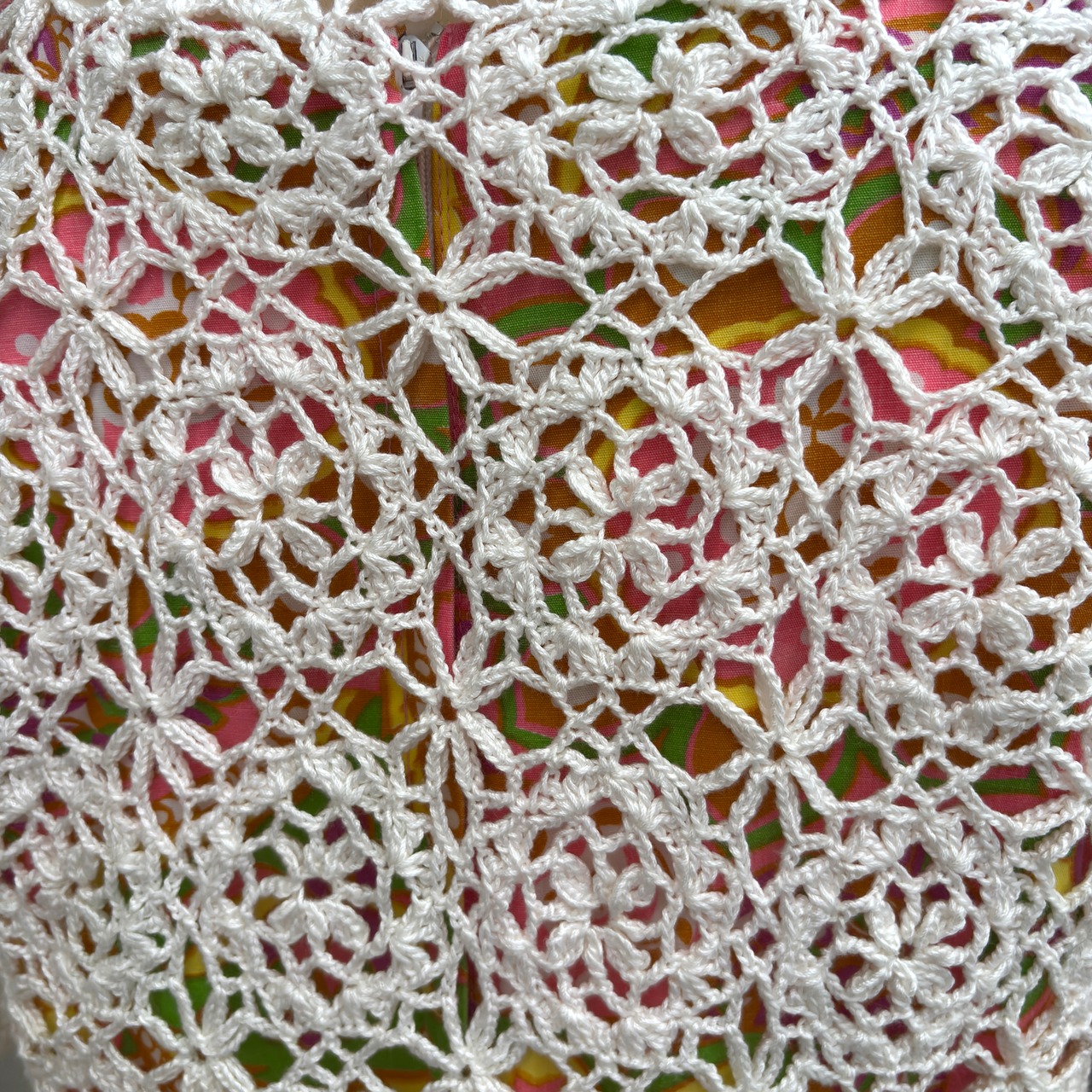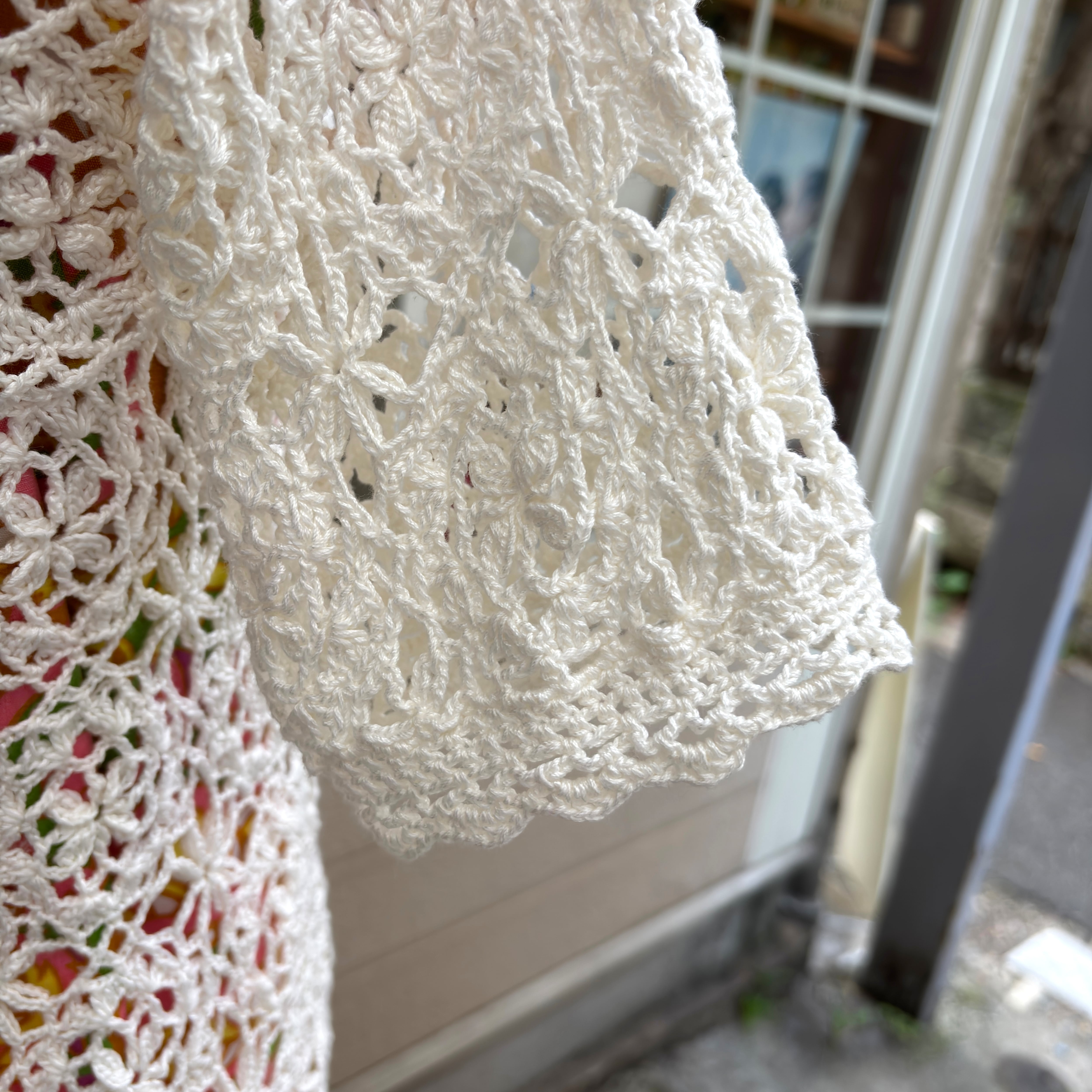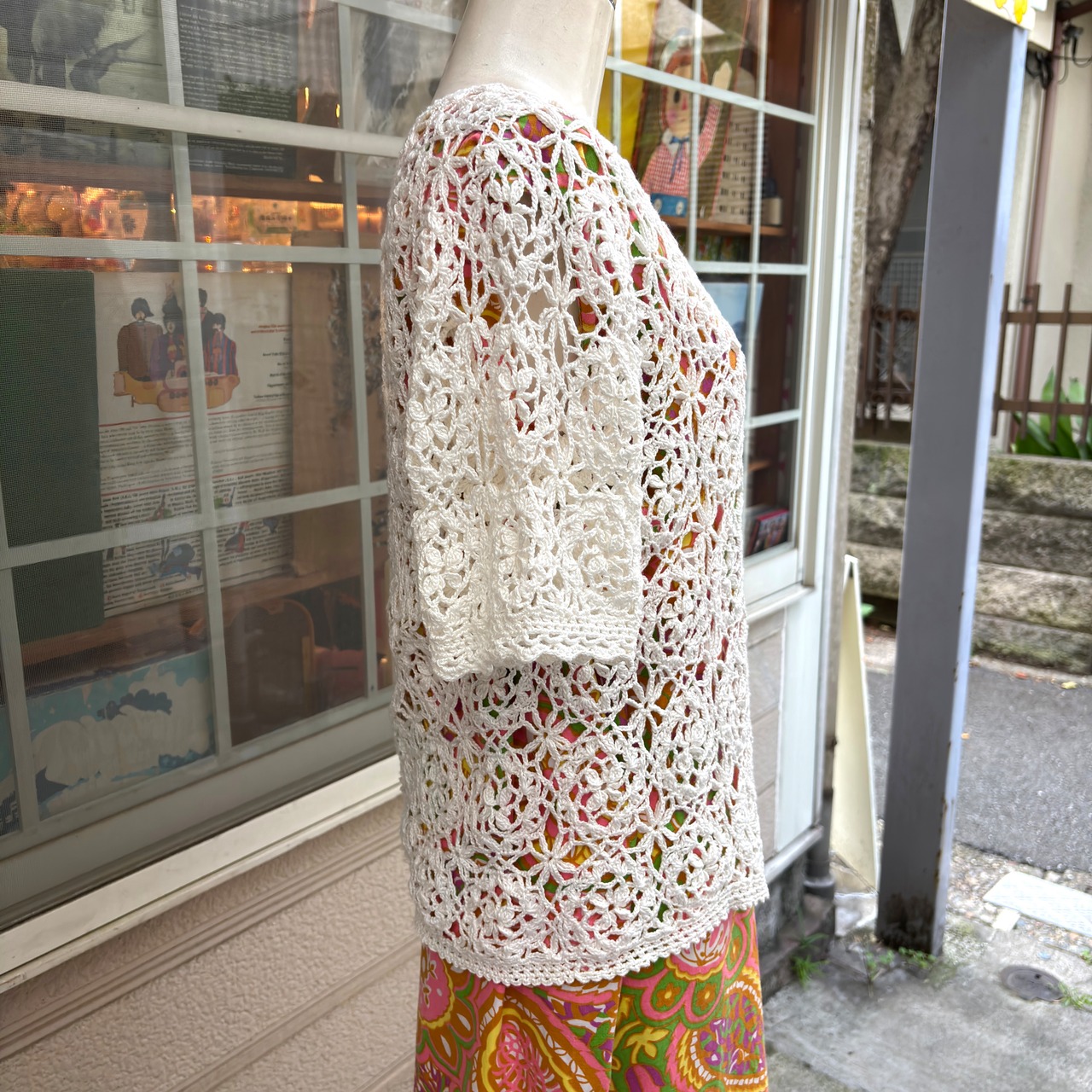 80'S〜90'S USA Vintage flower motif&button Crochet short sleeve cardigan。