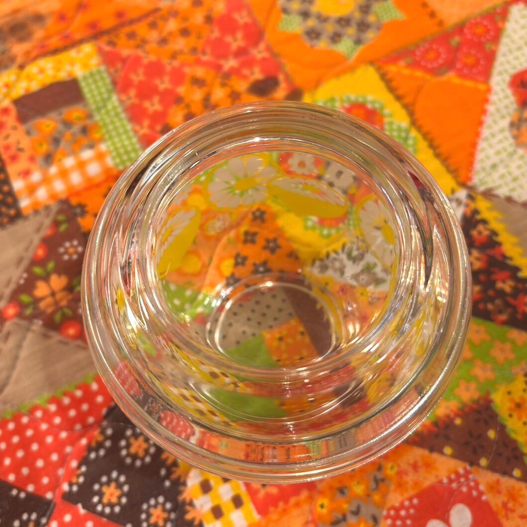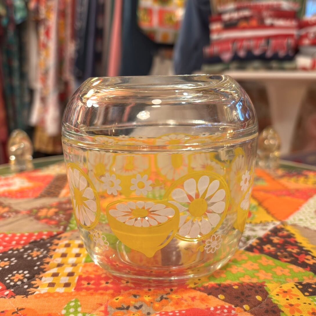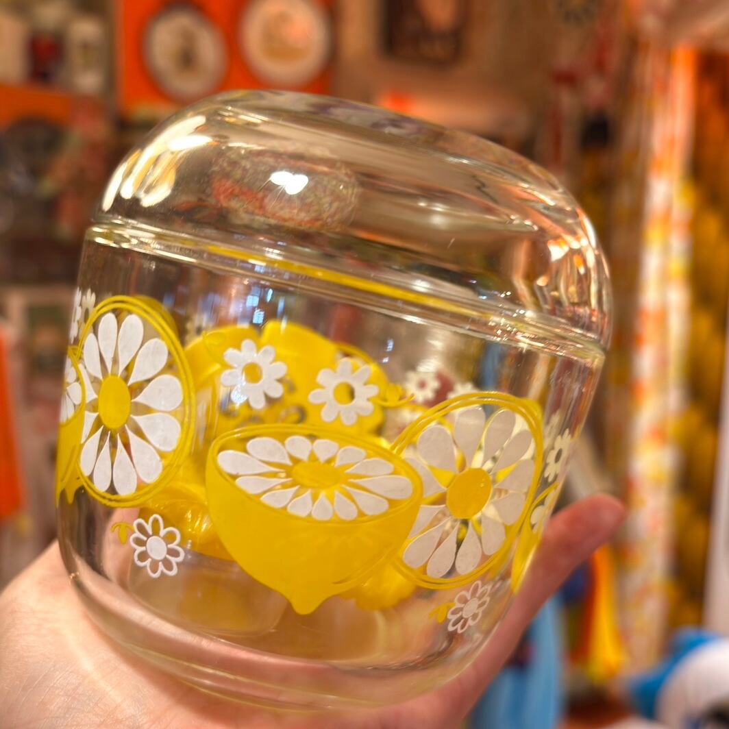 昭和レトロ ヴィンテージ レモン フラワー柄 ガラスキャニスターです。