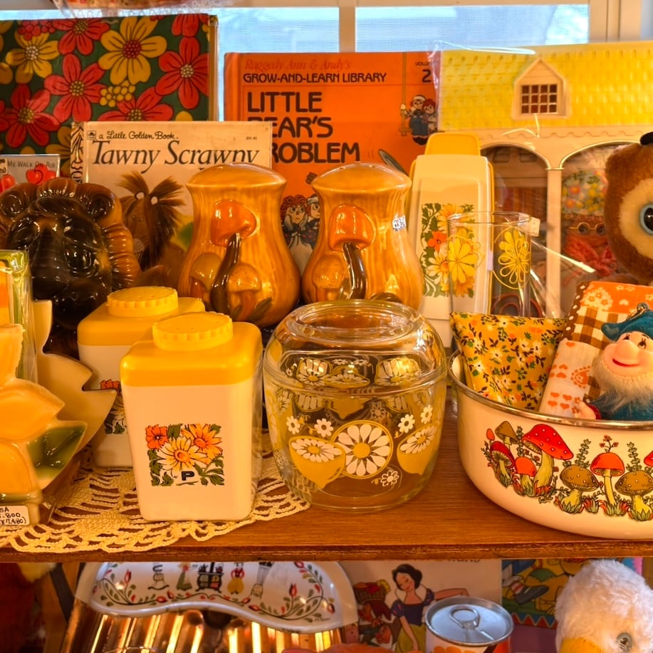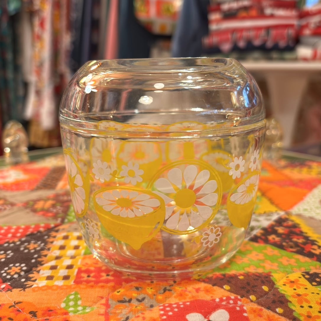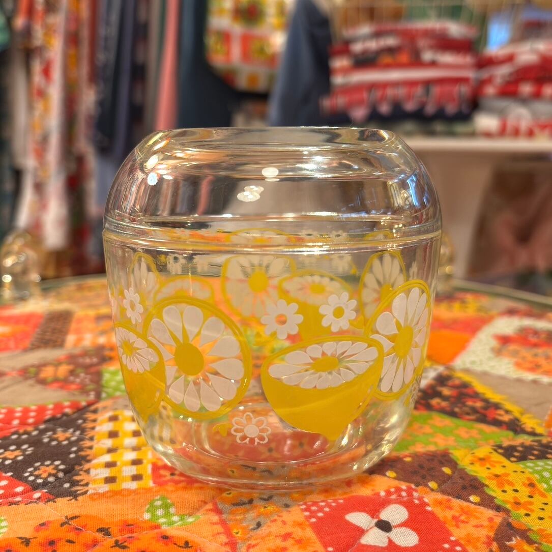 昭和レトロ Vintage lemon and flowers glass Canister。