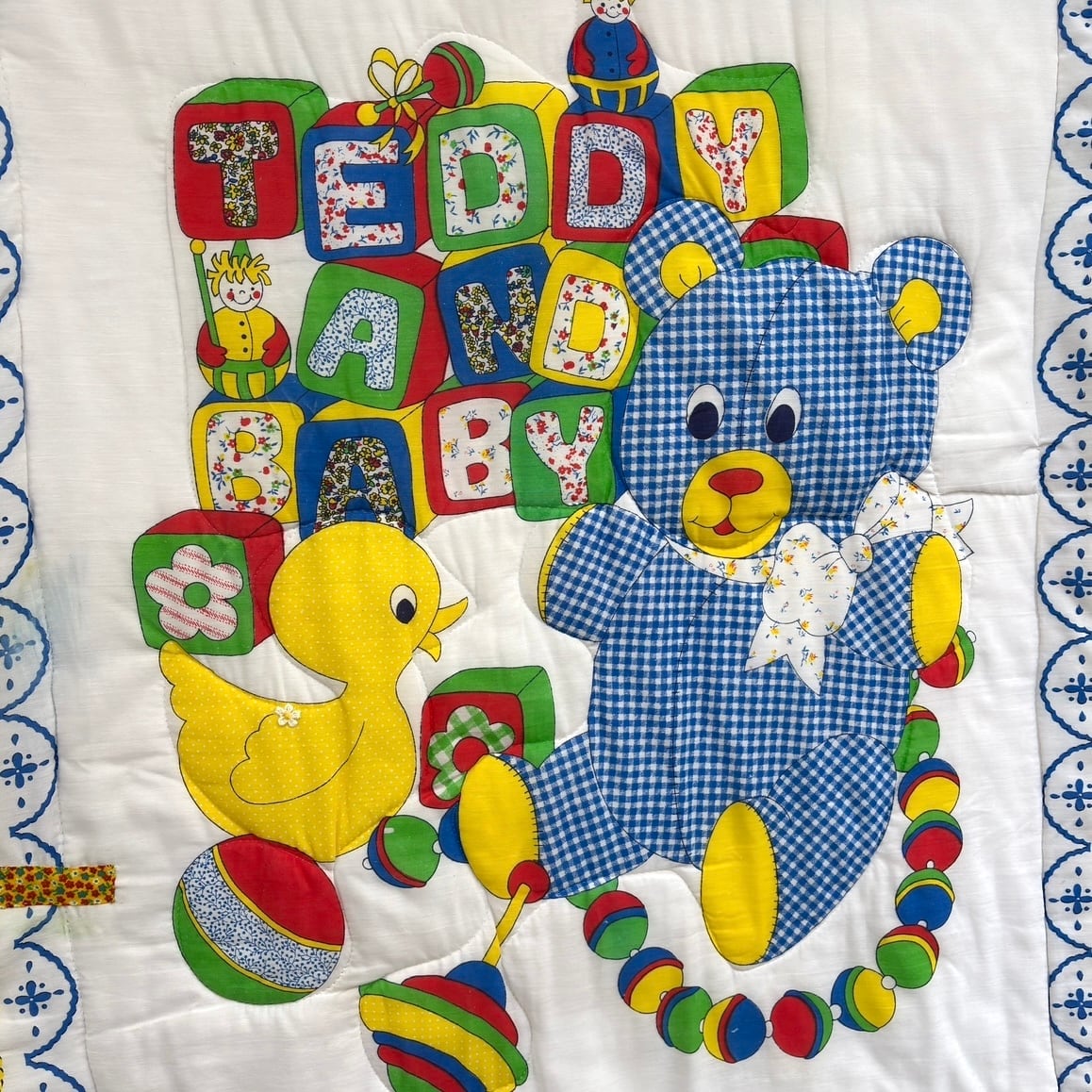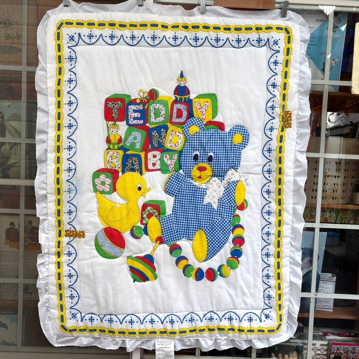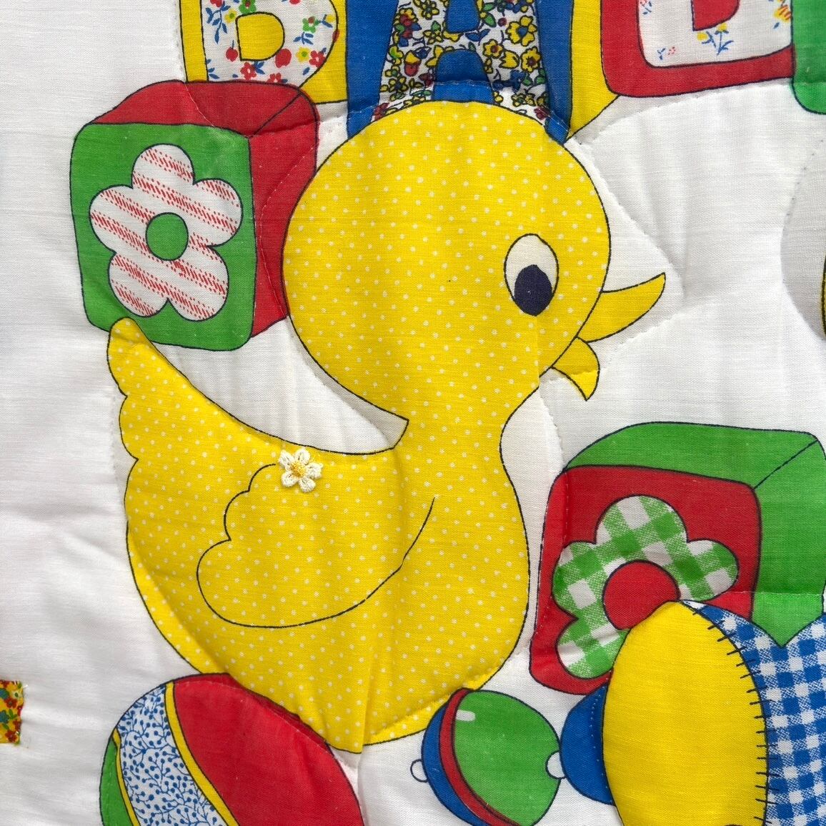 70'S USA Vintage Teddy and duck quilted cover。