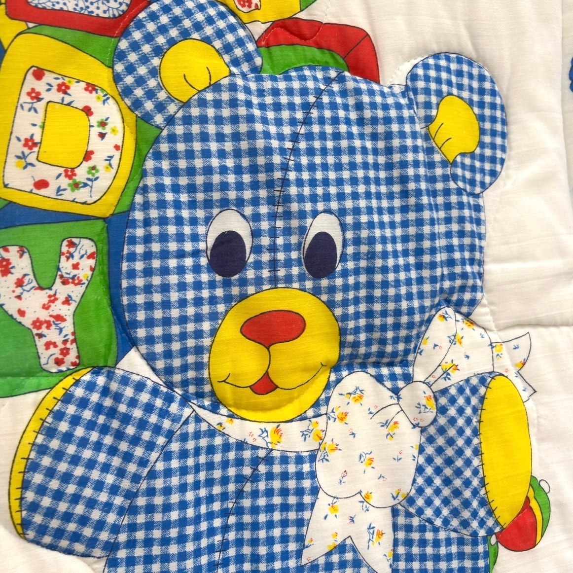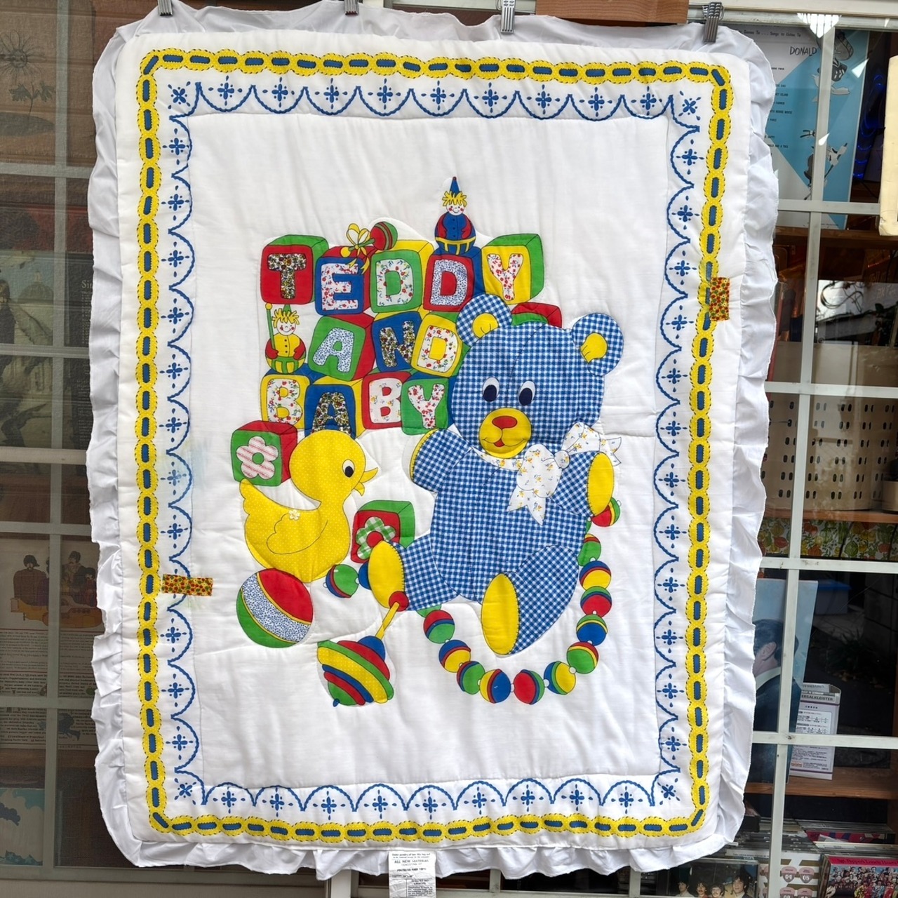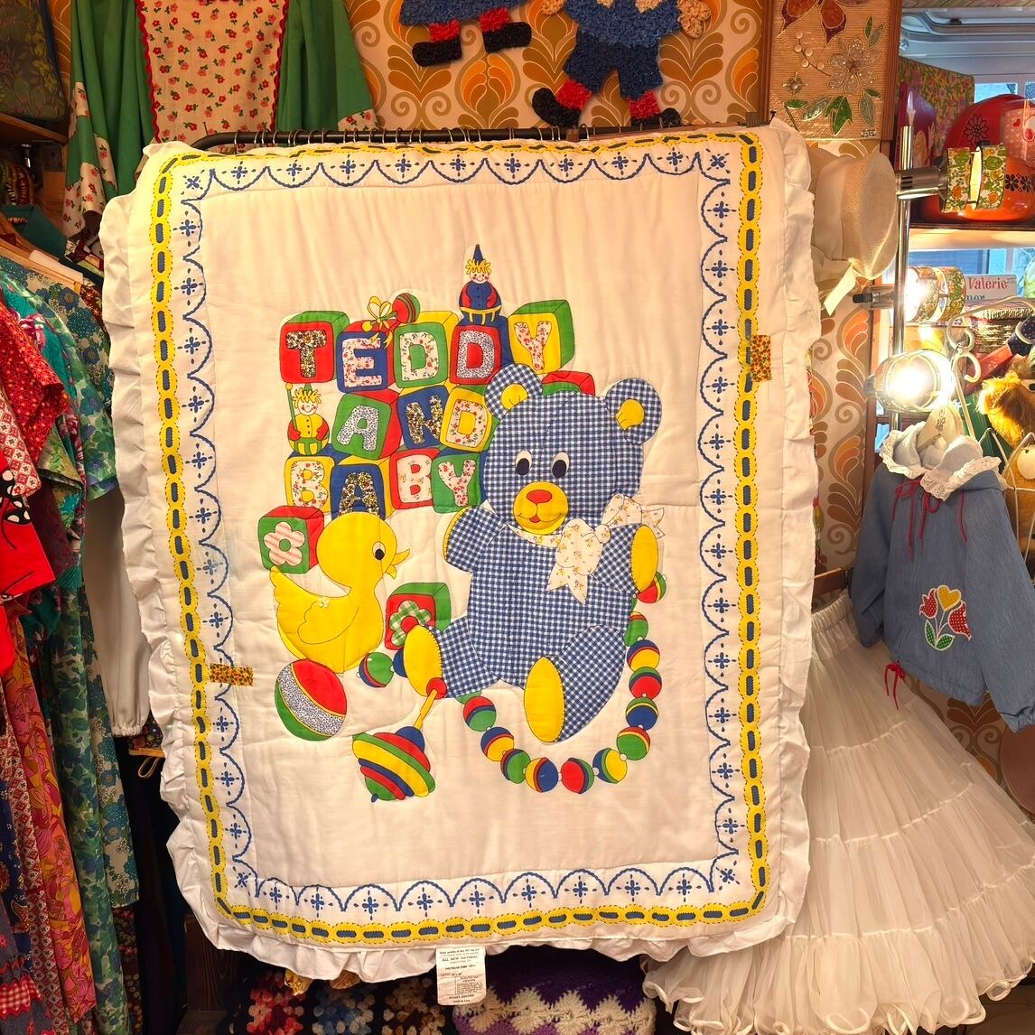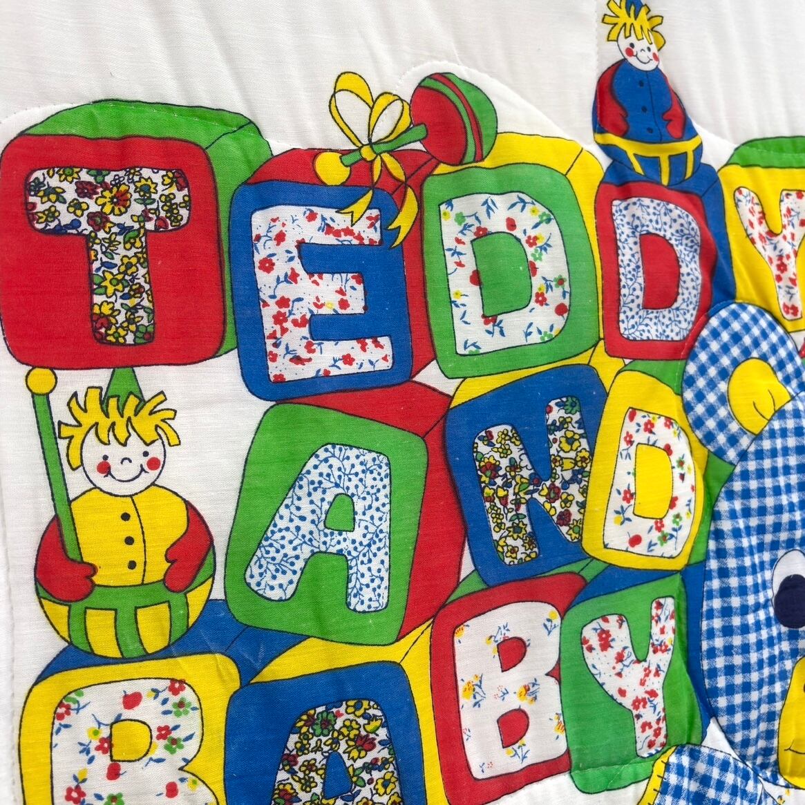 70'S USA Vintage Teddy and duck quilted cover。