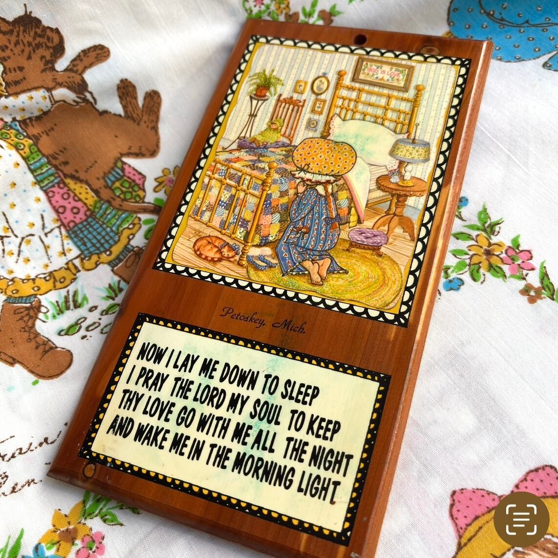 70'S USA Vintage Holly Hobby wooden wall hanging。