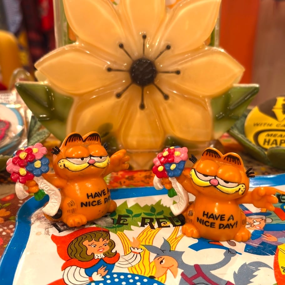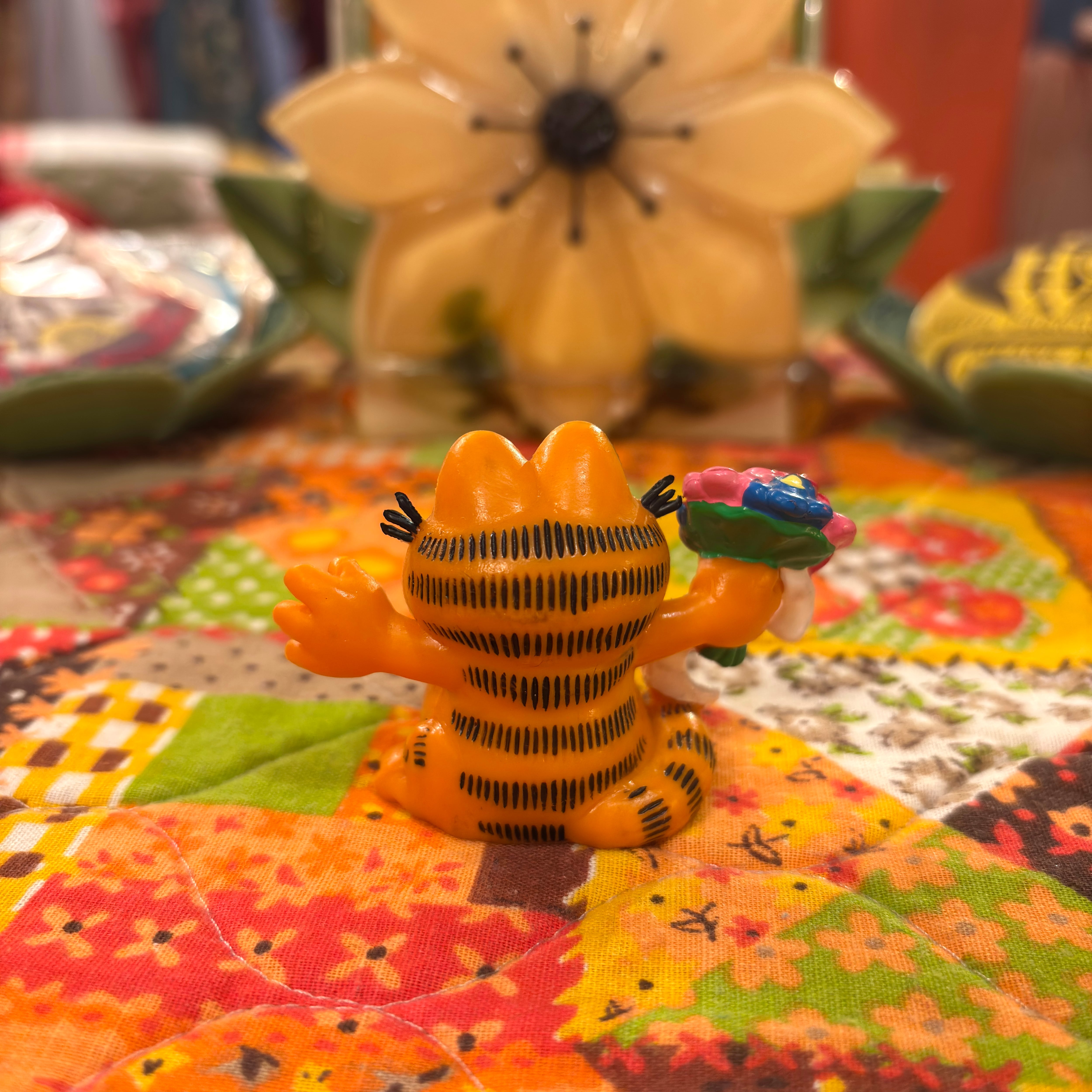 70年代から80年代 happyなメッセージやカラフルな花束を持ったガーフイールドのPVCです。