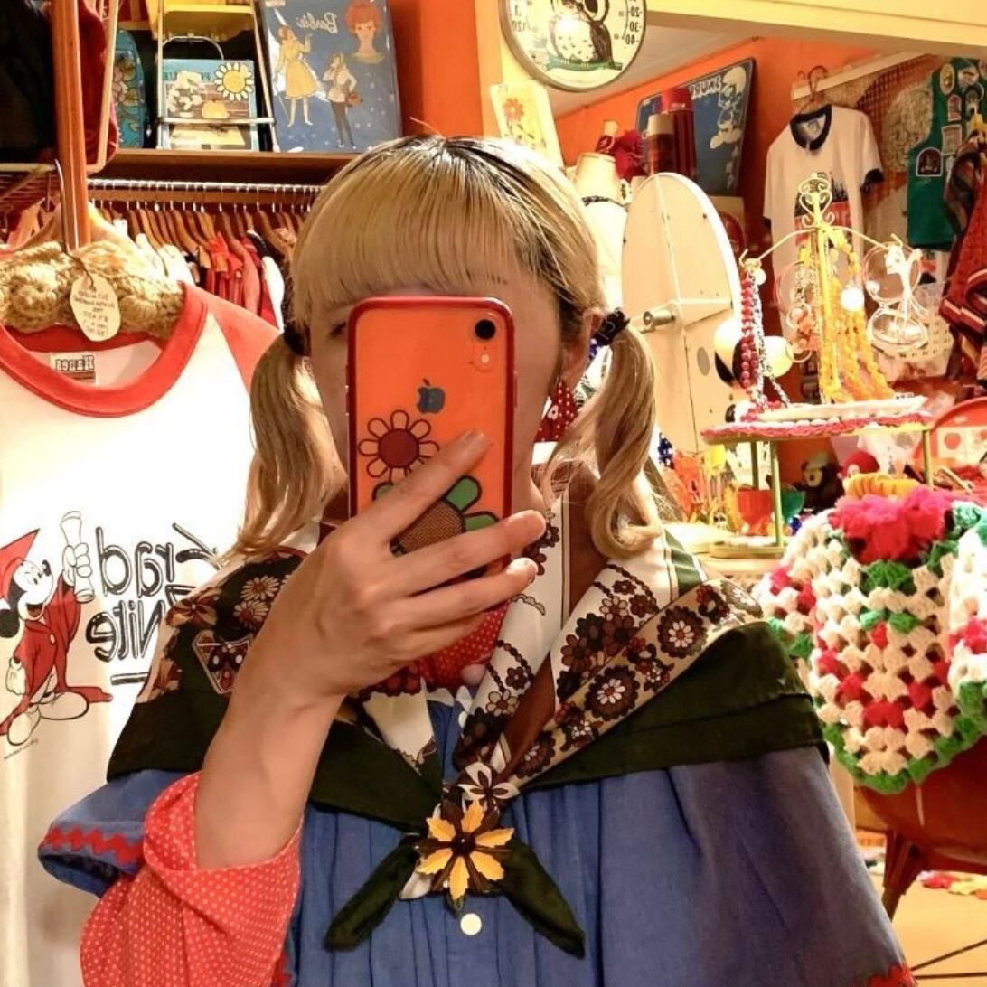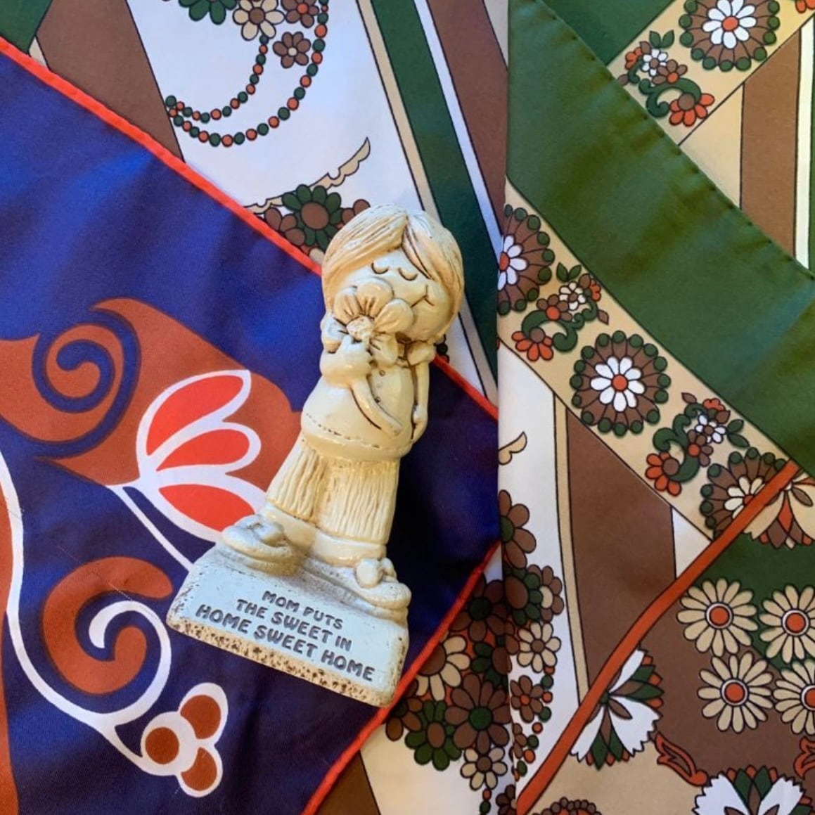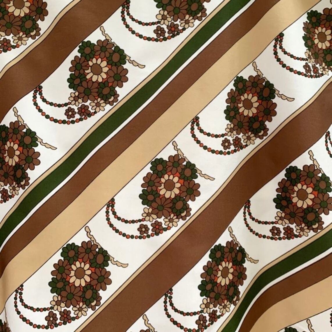 グリーン、ブラウン、ベージュ、オレンジのカラーリングやレトロなフラワー柄がとっても可愛いデザインです。