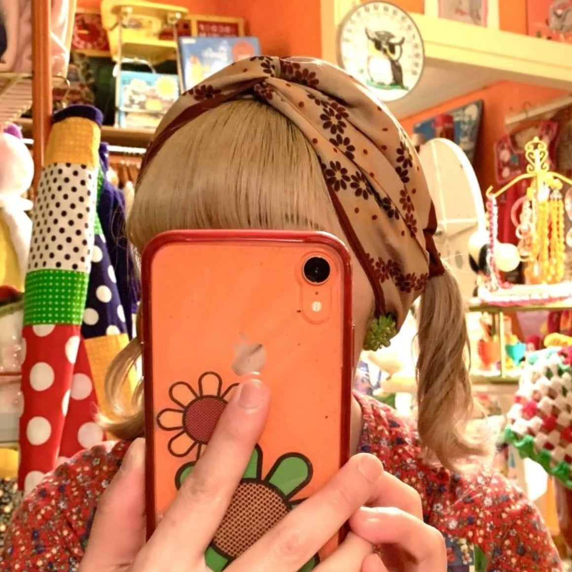 70'S Vintage Flower line long scarf