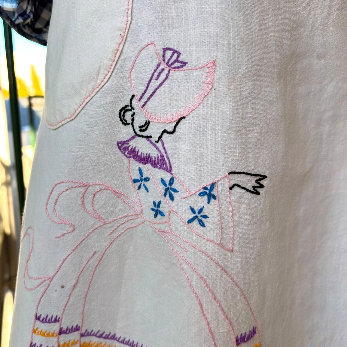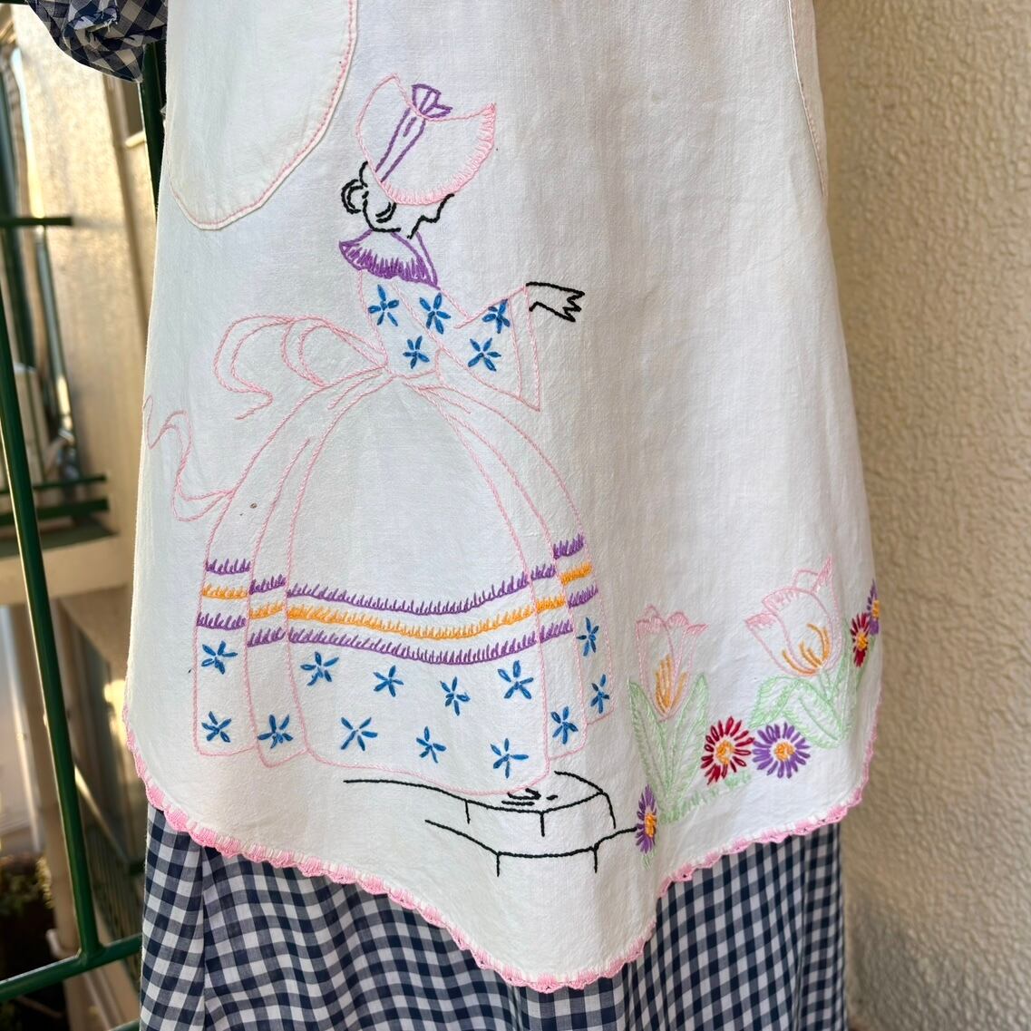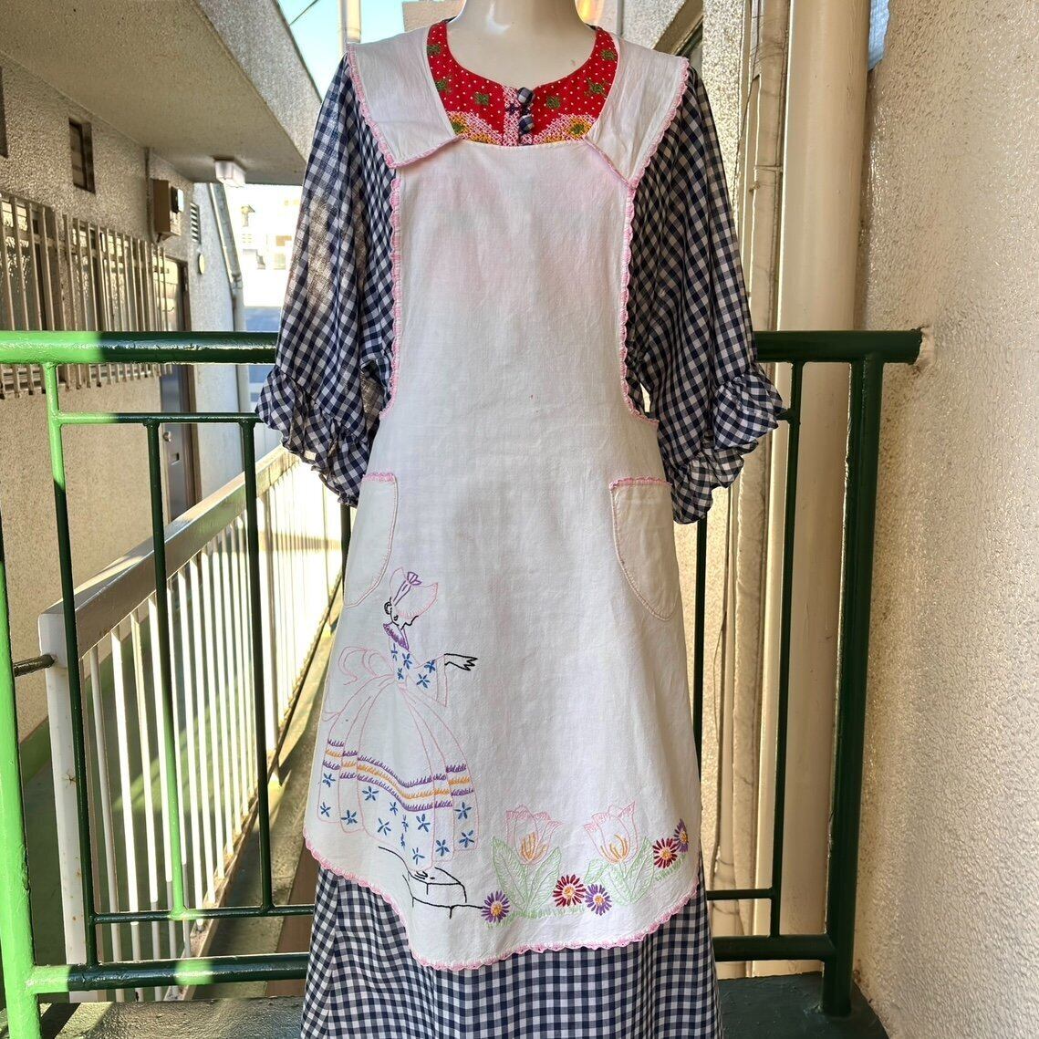 60年代 ヴィンテージ レディ&フラワー刺繍 エプロンです。