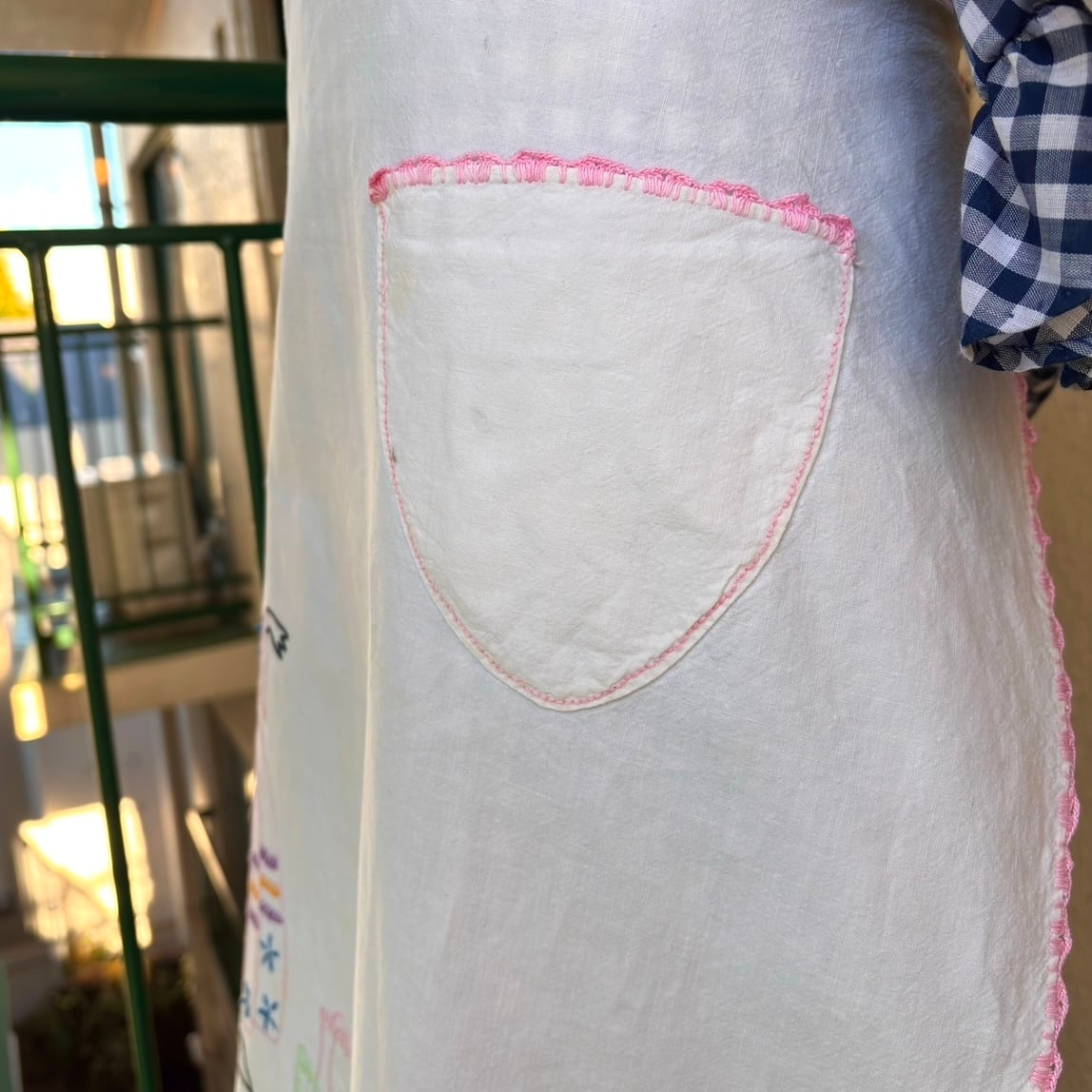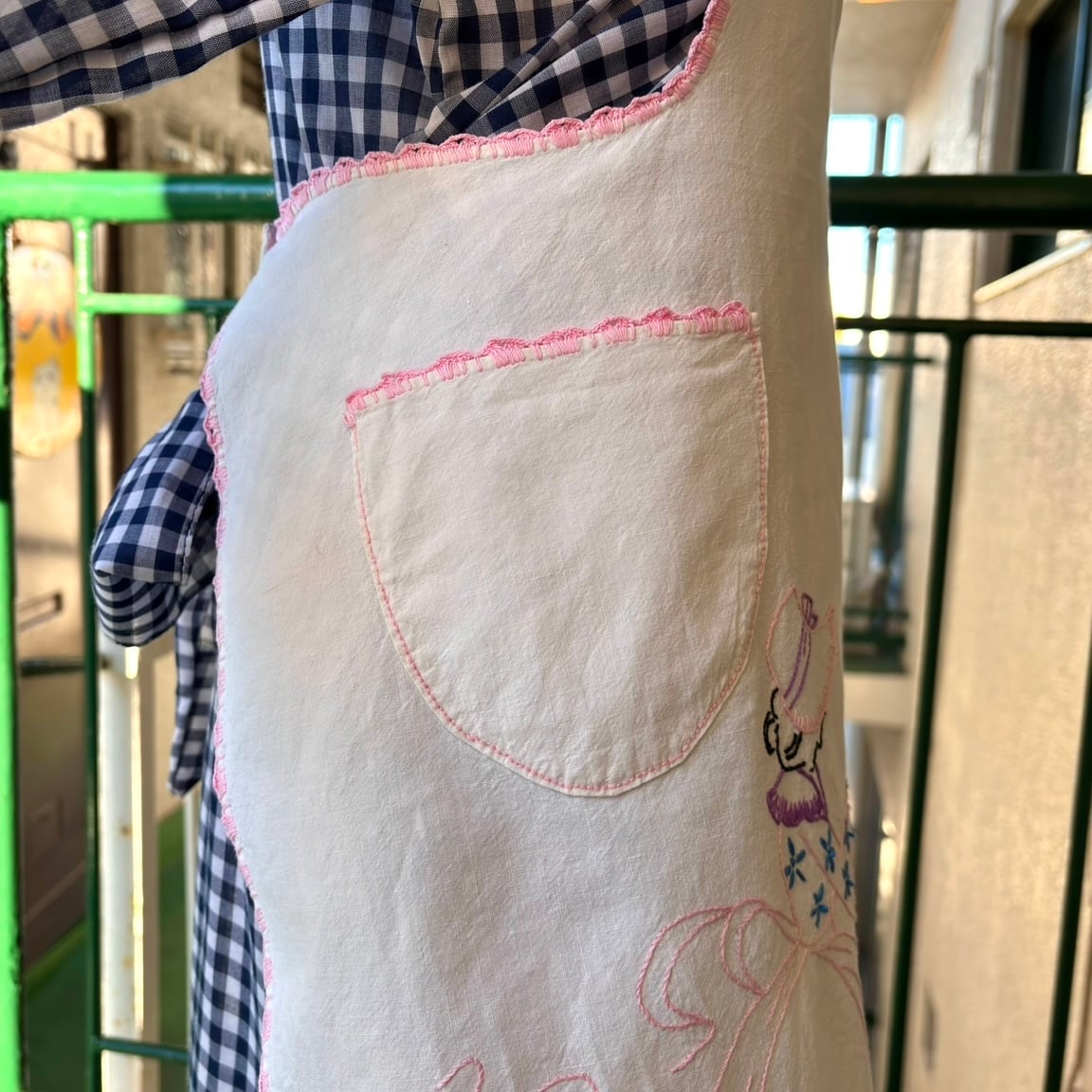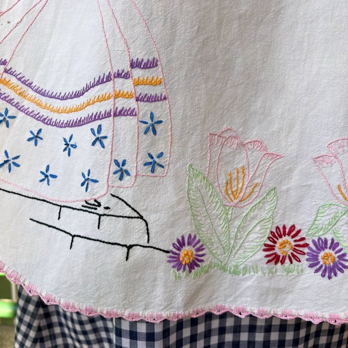 60年代 ヴィンテージ レディ&フラワー刺繍 エプロンです。