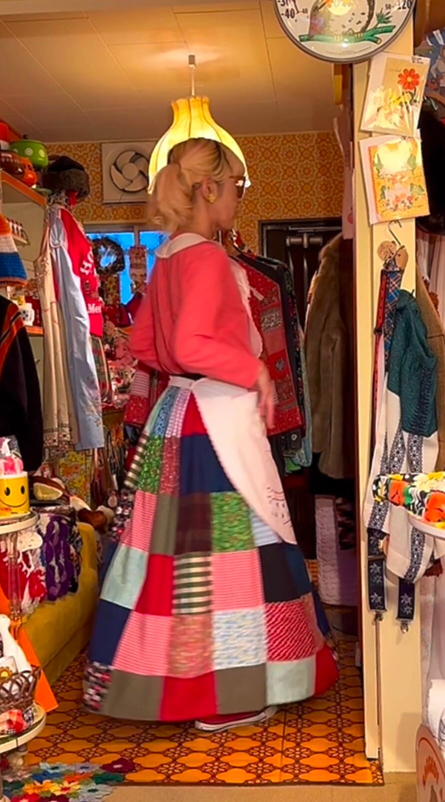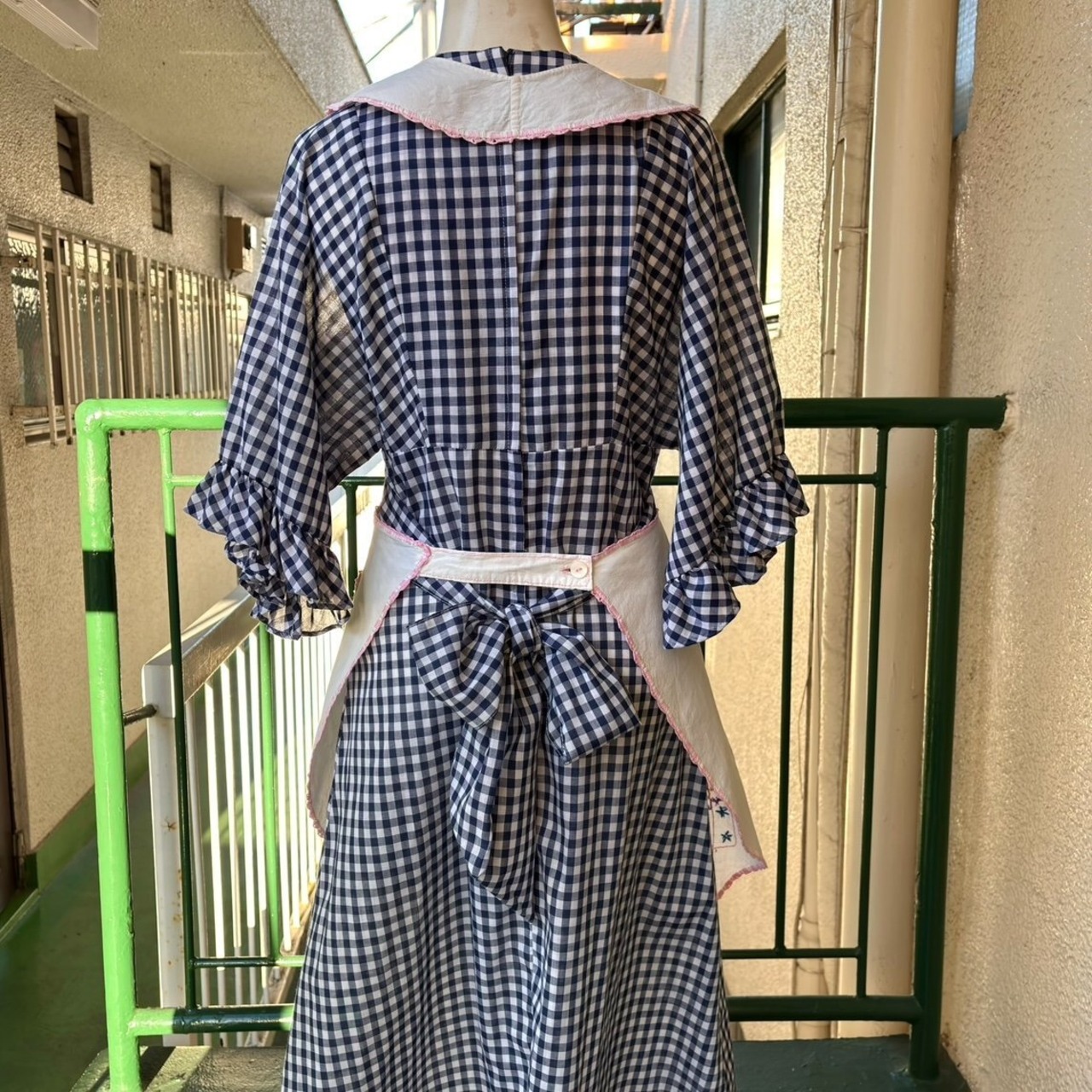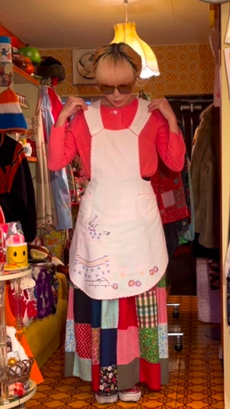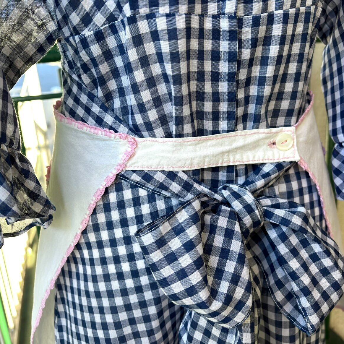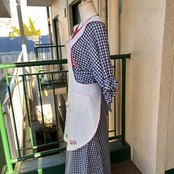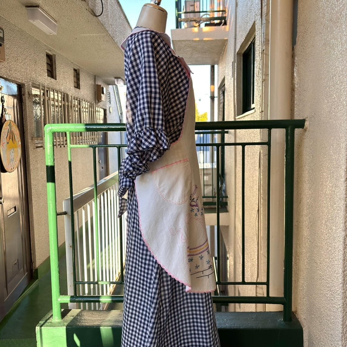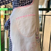 エプロンとしてはもちろん、ワンピースやスカートにレイヤードして頂いたり、使わないときはサッと掛けてディスプレイして頂いても可愛いかと思います。