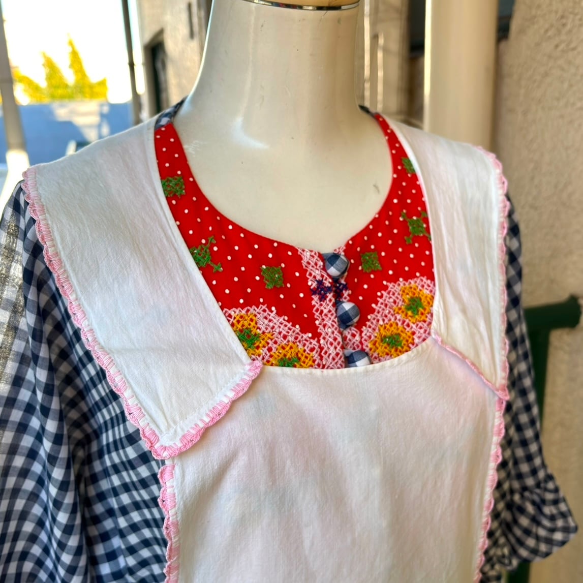 風合いのあるコットン生地に当時の手刺繍がとっても可愛いアイテムです。
