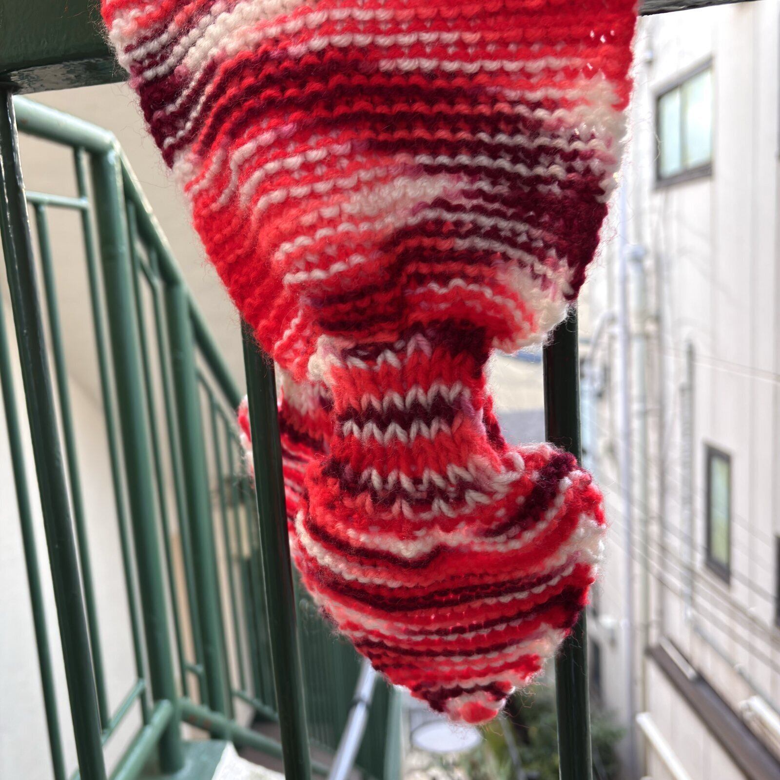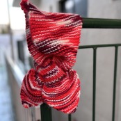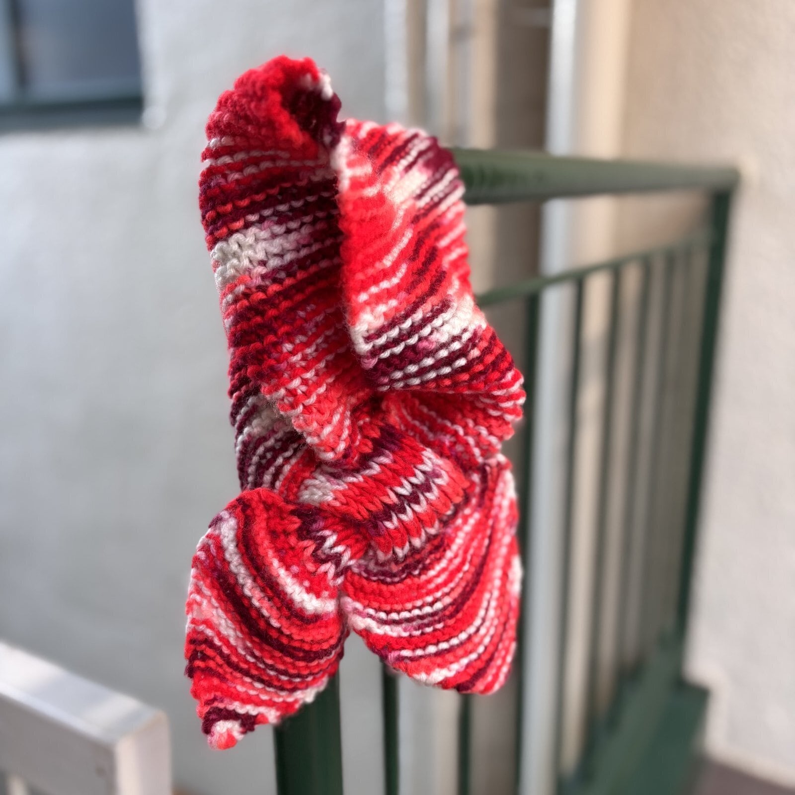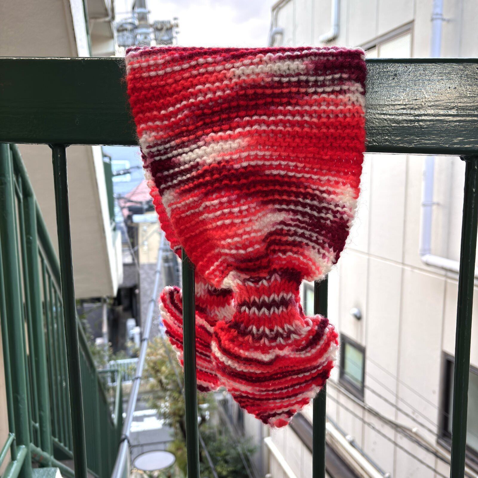 ボルドー、レッド、ピンク、ホワイトのグラデーションカラーの編み目やループに通すおリボンのようなデザインがとっても可愛いアイテムです。