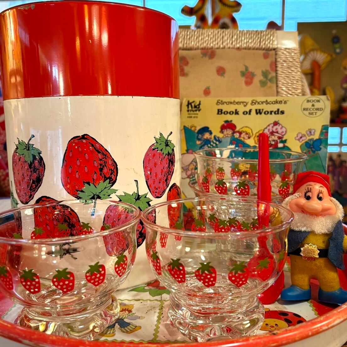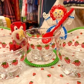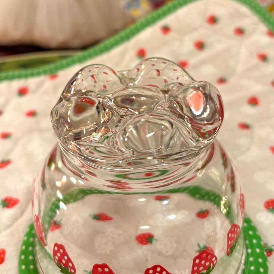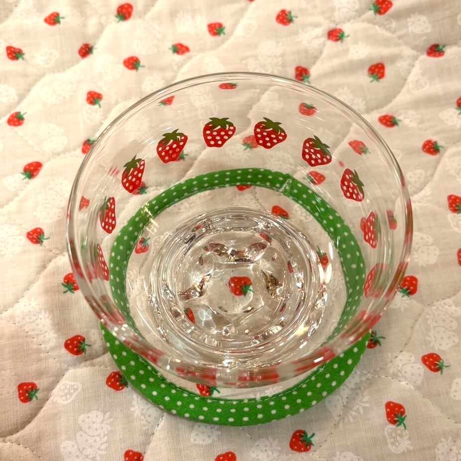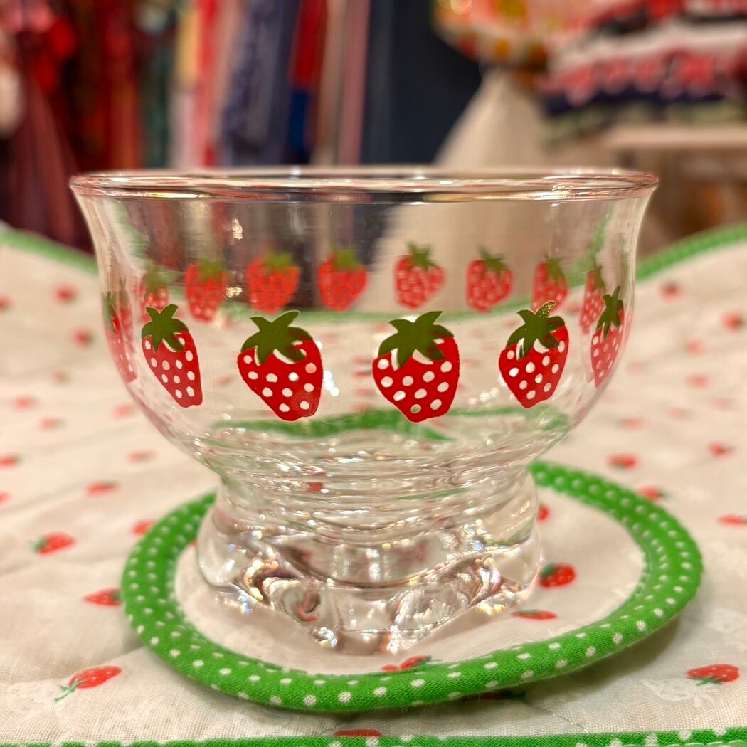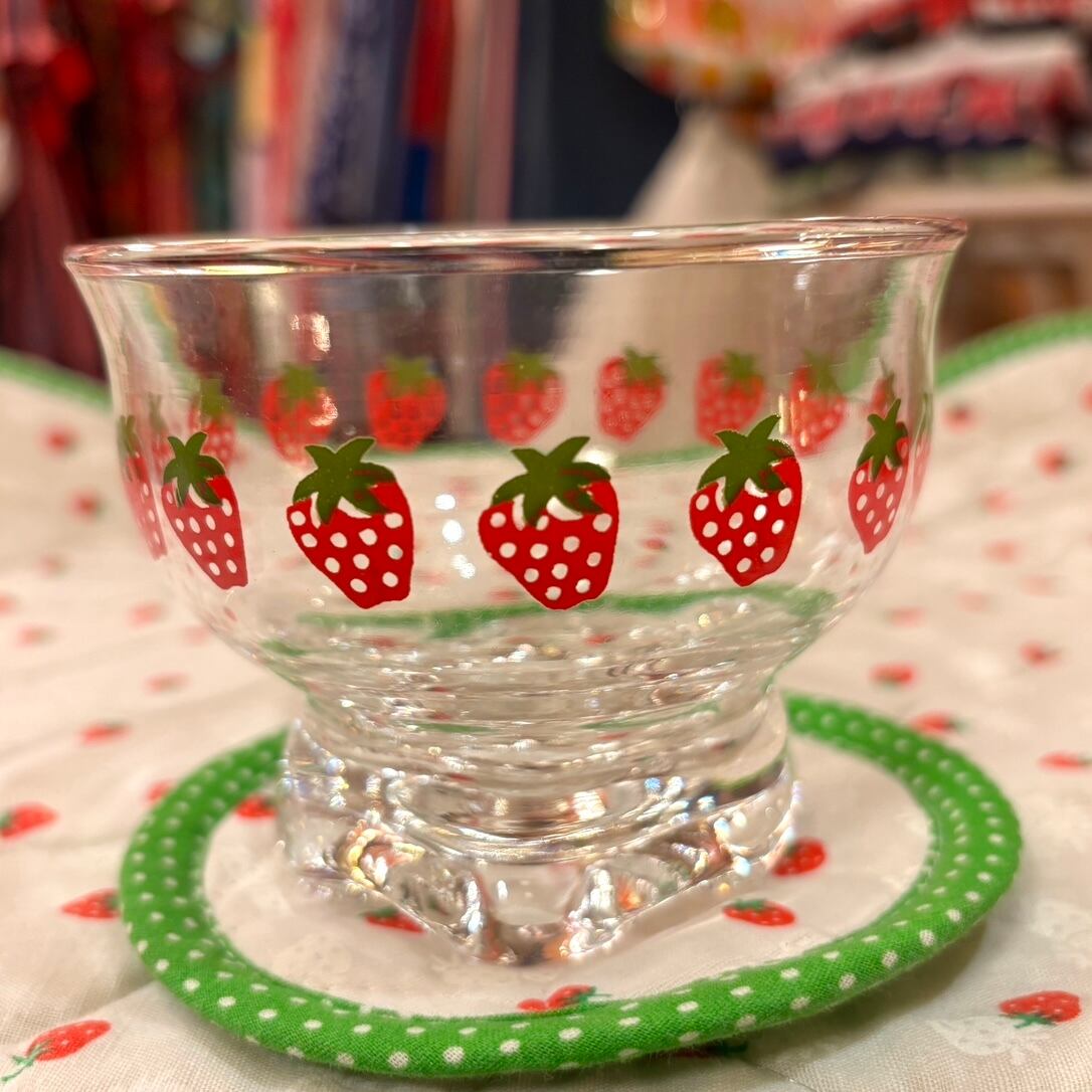 厚みのあるガラスで、ぽってりと丸みのあるフォルムやストロベリープリントがとっても可愛いアイテムです。