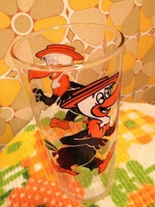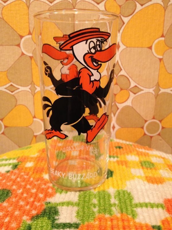 70's USA DEAD STOCK未使用のお大きめグラスです。ファニーなトリさんの表情が可愛いですね。オレンジとブラックのカラーリングも素敵です。若干のプリントロスがありますが目立つダメージはありません。