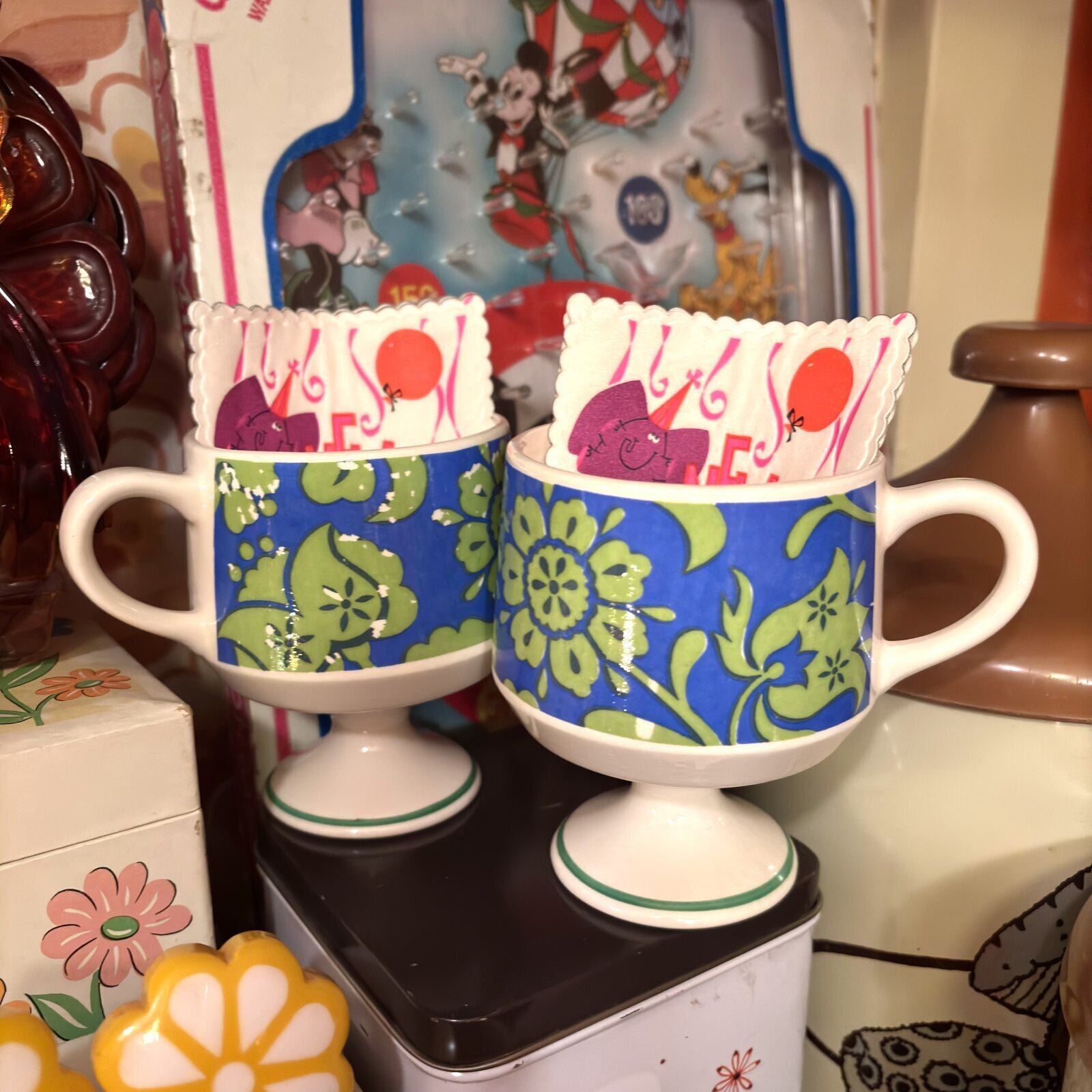70'S USA Vintage flower pattern footed mug。