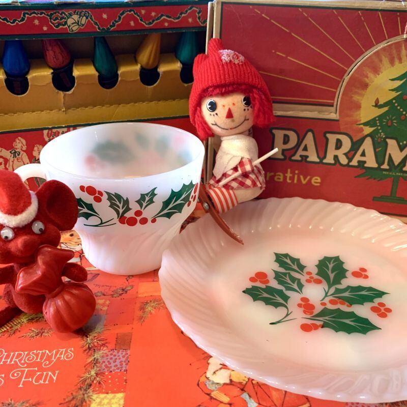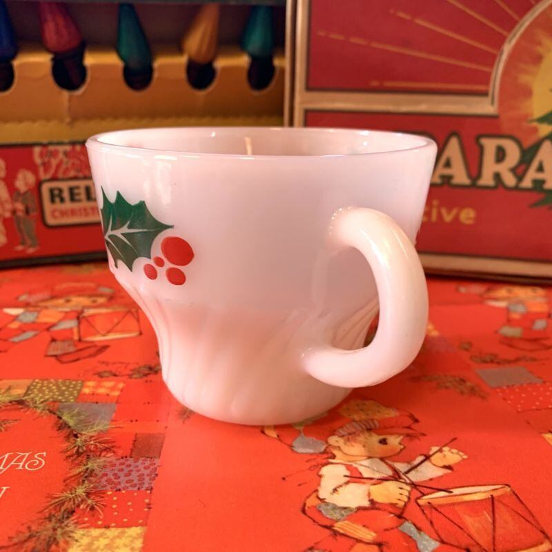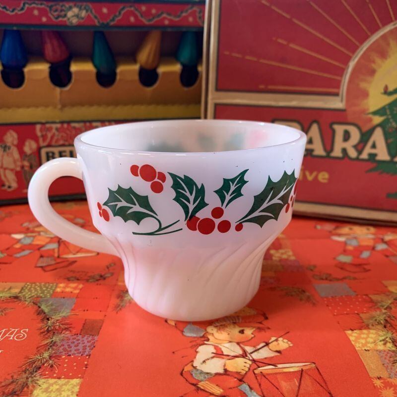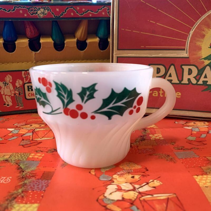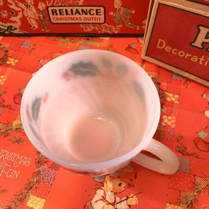 ターモクリサ社のミルクガラスは透明感があり、赤い実の柊模様がパッと目を引く可愛いさです。