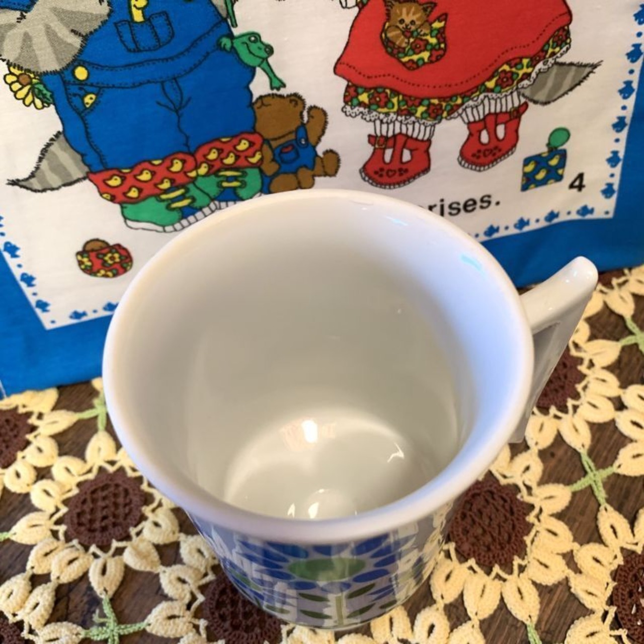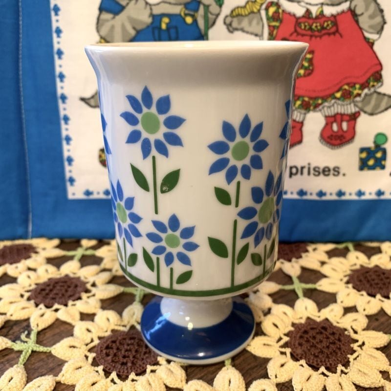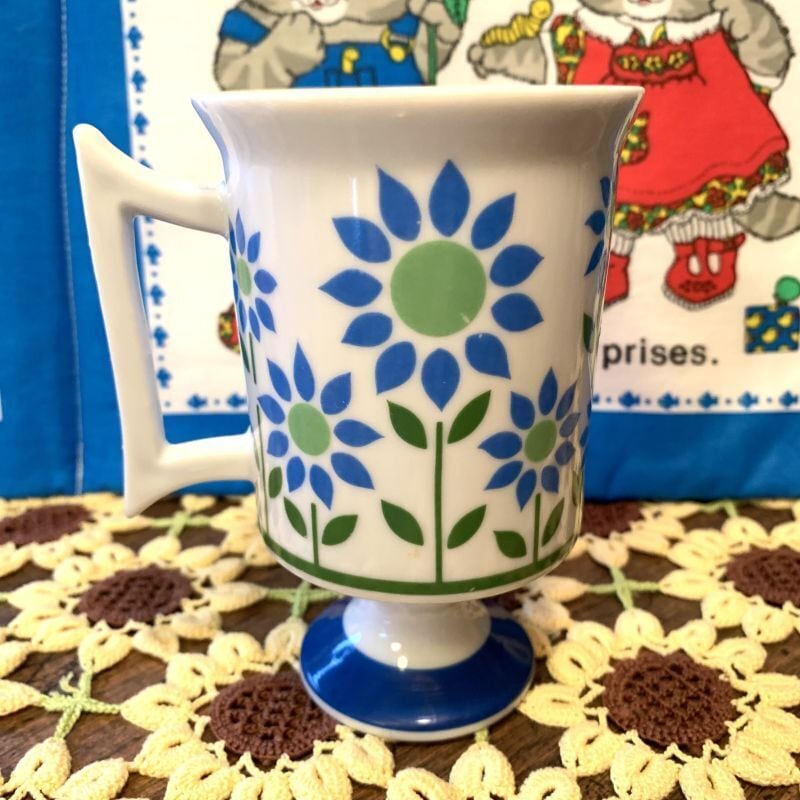 芝生の様なグリーンのラインにライトブルー、ライトグリーンのレトロなフラワー模様がとっても可愛いです。
