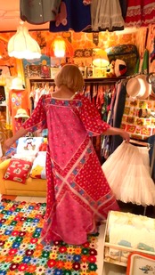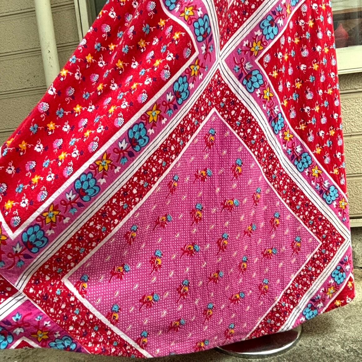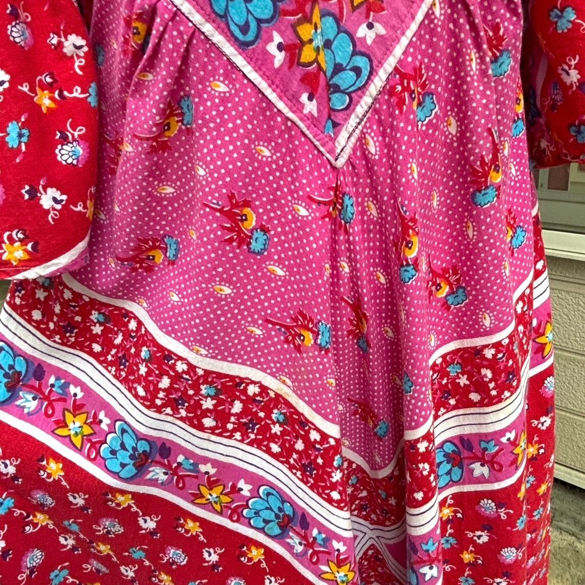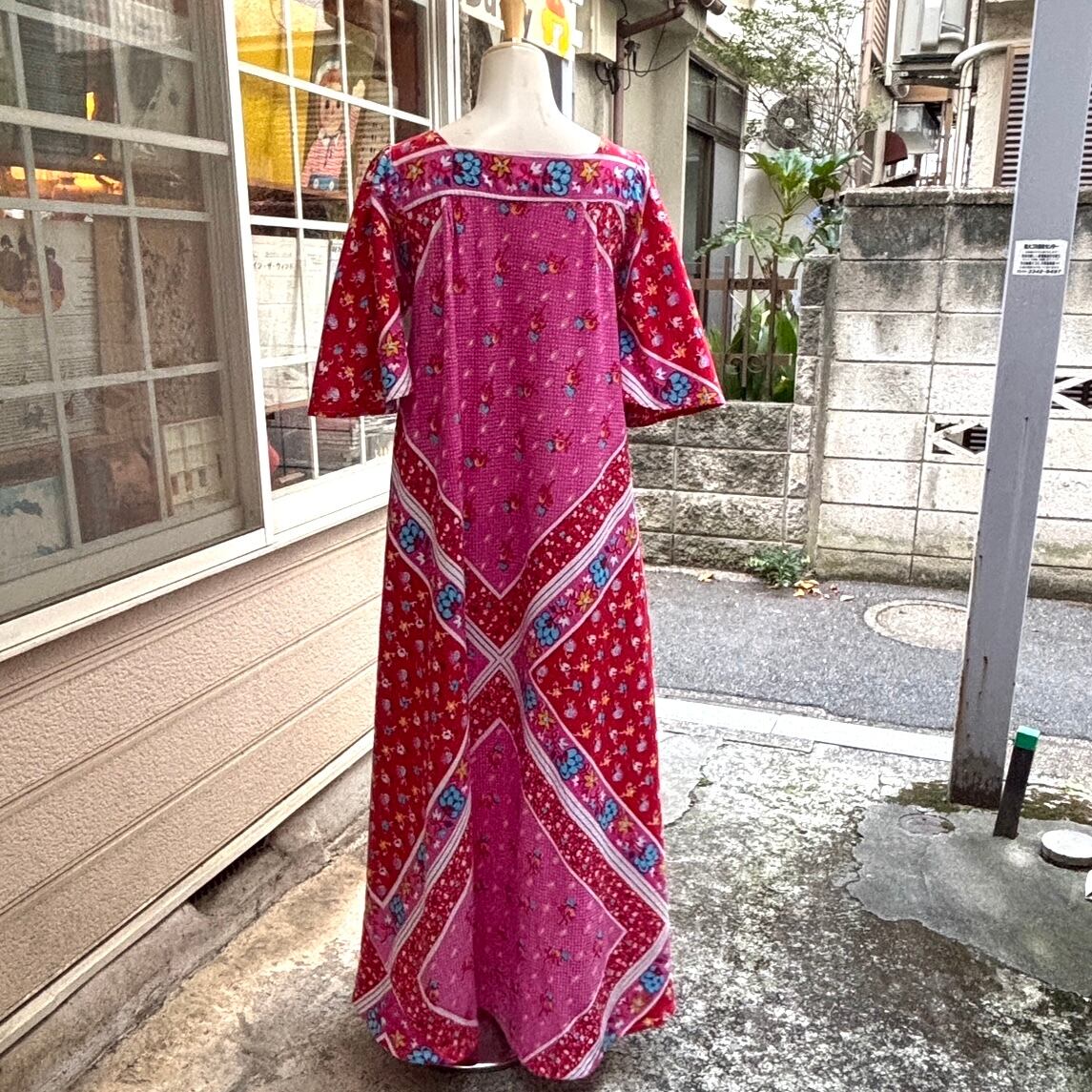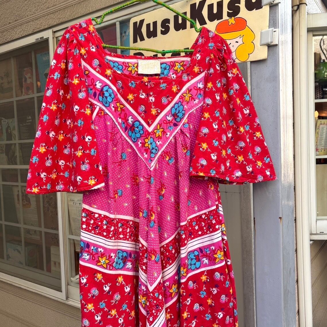 70年代 ヴィンテージ インド綿 ベルスリーブ ハンカチーフパターン ドレスです。