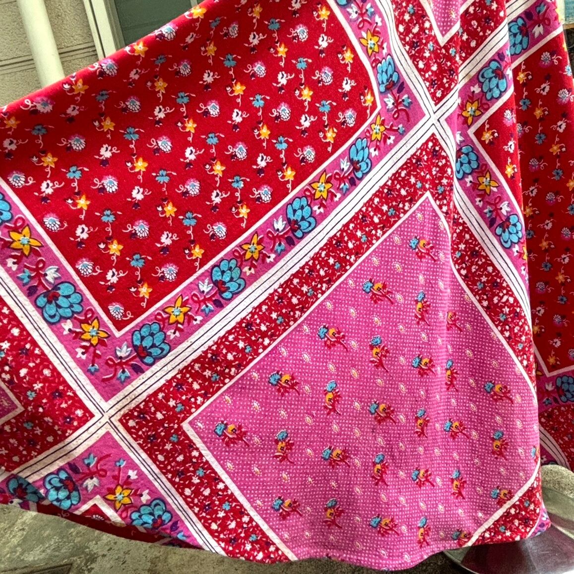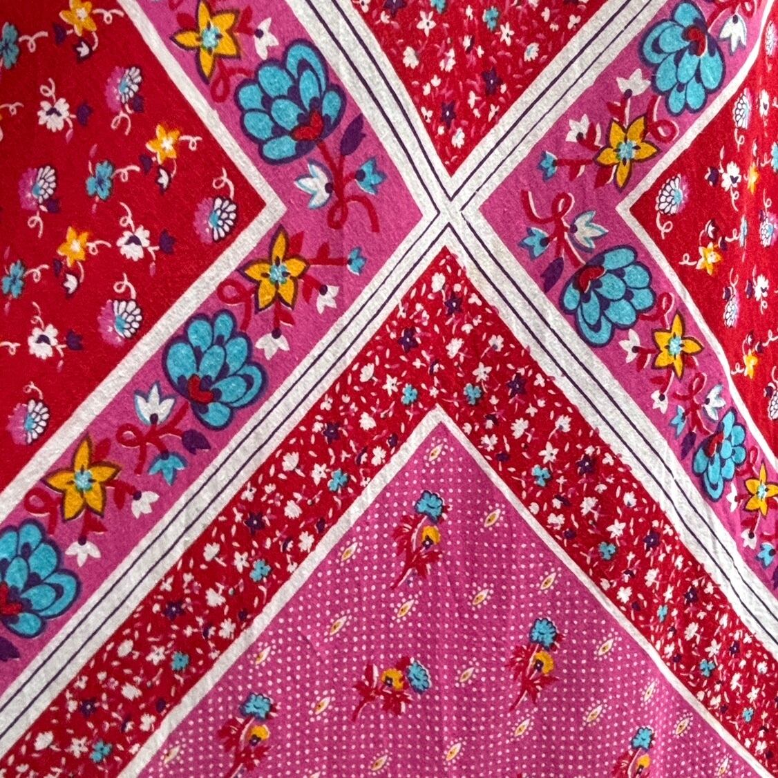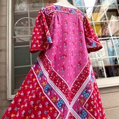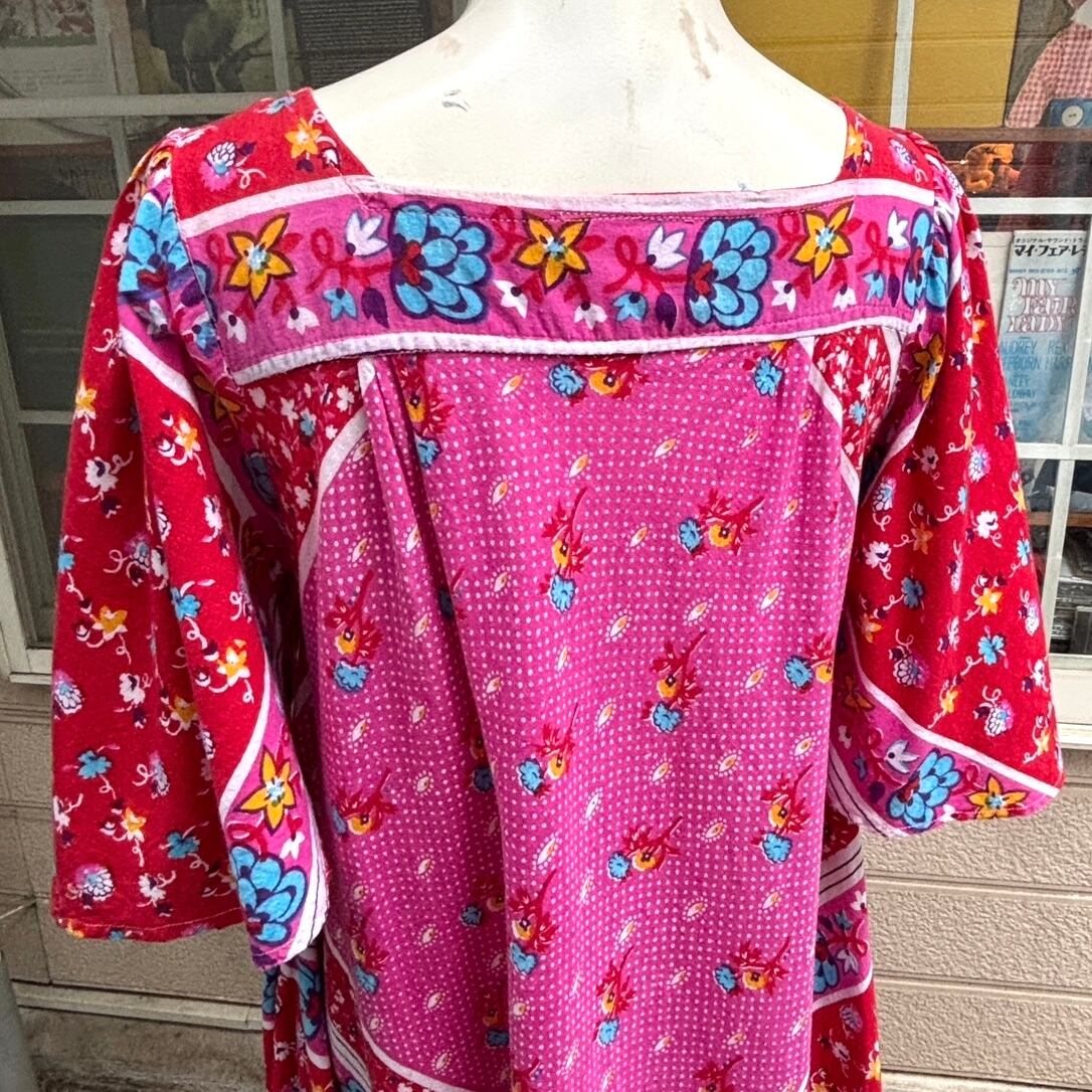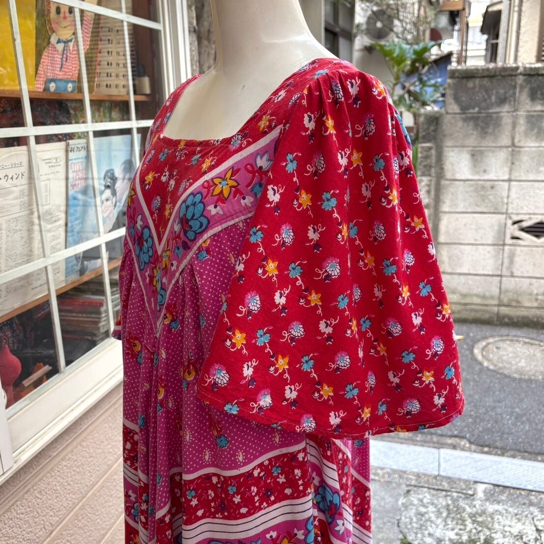 70'S USA Vintage Indian cotton bell sleeve handkerchief pattern dress。