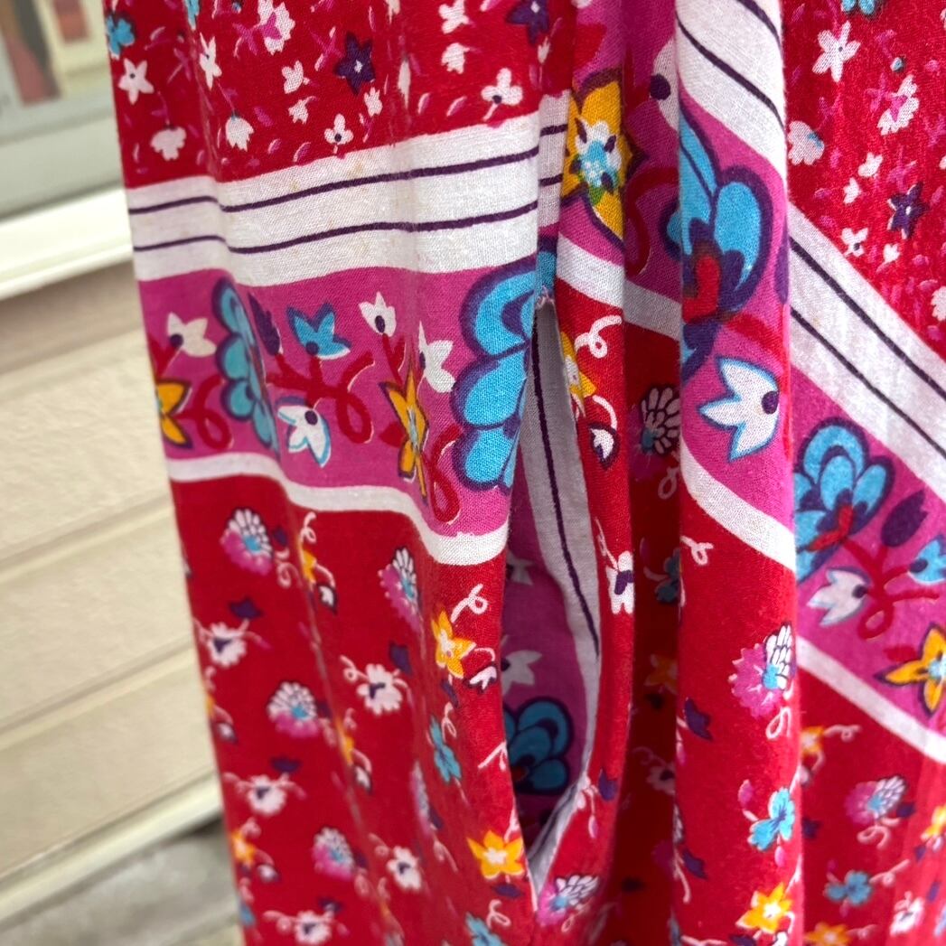 スカート部分の両サイドにポケットがあり、ポケットの内側の生地も同じ生地でカラフルな作りになっています。