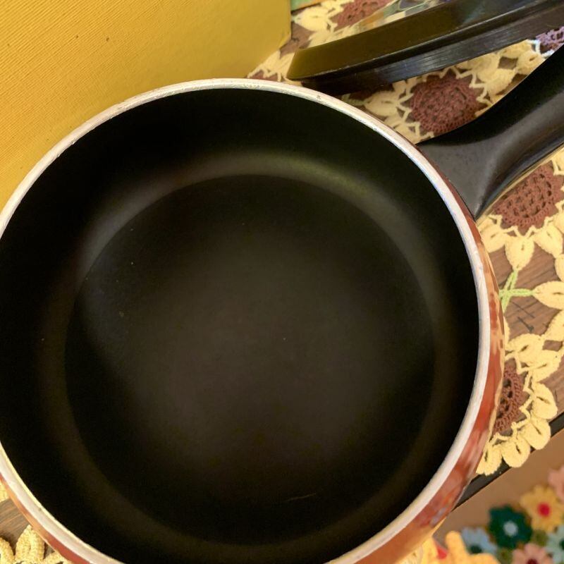 ブラウンのグラデーションカラーやぽってりとした丸みのあるフォルムが可愛い片手鍋です。