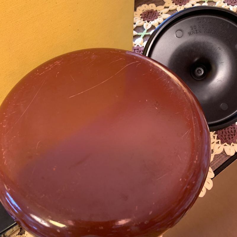 蓋の内側のフチに熱を逃すくぼみがあるのですが加工にざらつき感があり、一瞬欠けのように見えるのですが製造時からのものと思われます。