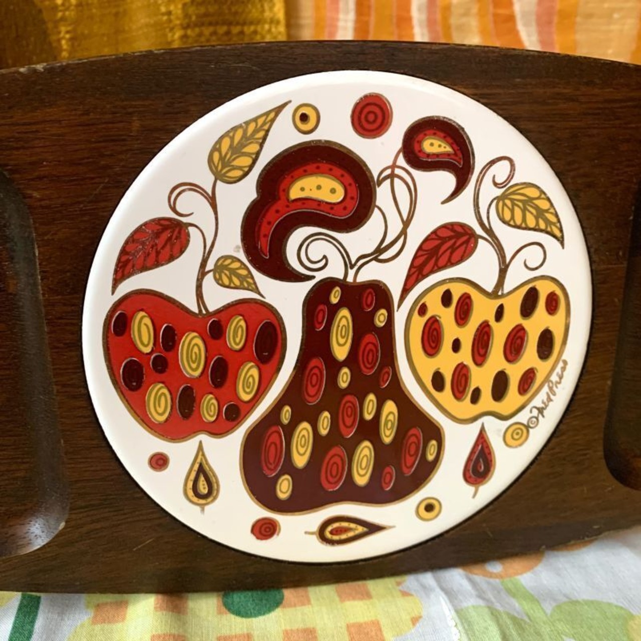 70'S USA STYSON社製 Apple&PearタイルWoodトレーです。